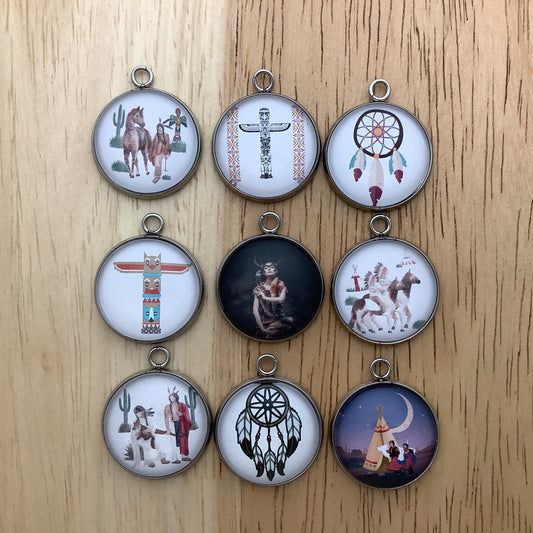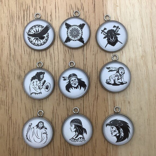 Indian Warriors Charms, Vibrant Watercolor Designs for Jewelry Making