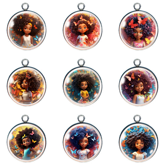 Beautiful 'Afro Girl' Glass Cabochon Charms, Juneteenth, Black Girl Magic Charms
