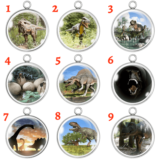 Jurassic Dinosaur Glass Cabochon Charms – DIY Jewelry Supplies, Dino Gifts