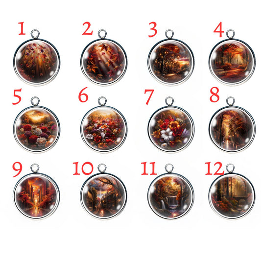 Autumn Evening, Fall Beauty Glass Cabochon Charms