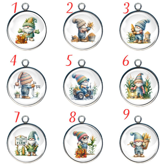 Farmer Gnomes: Corn Harvest Helpers Glass Cabochon Charms