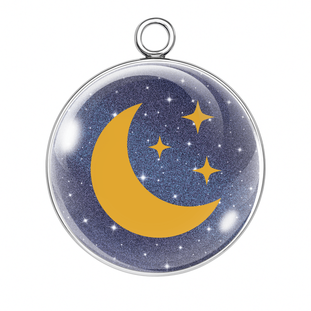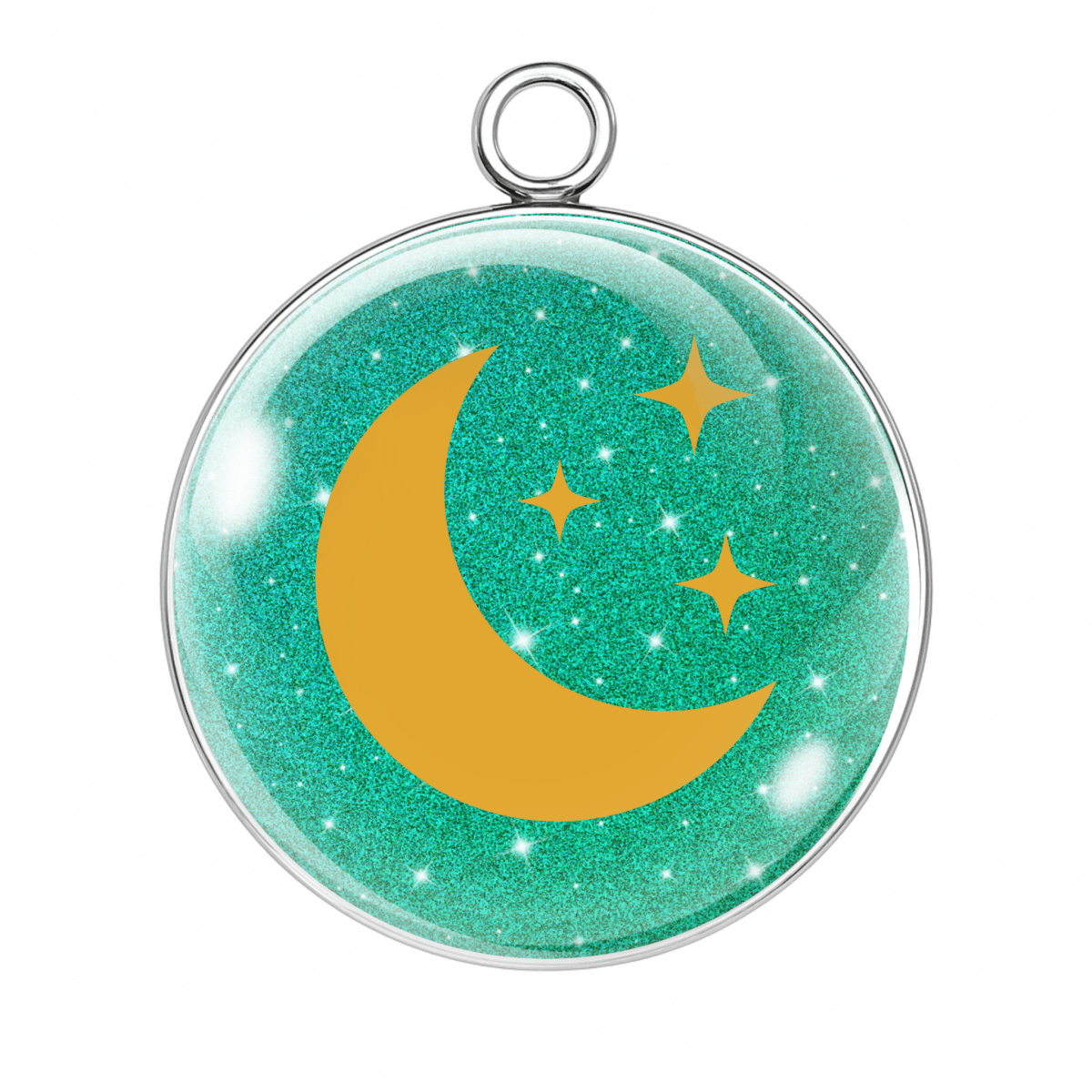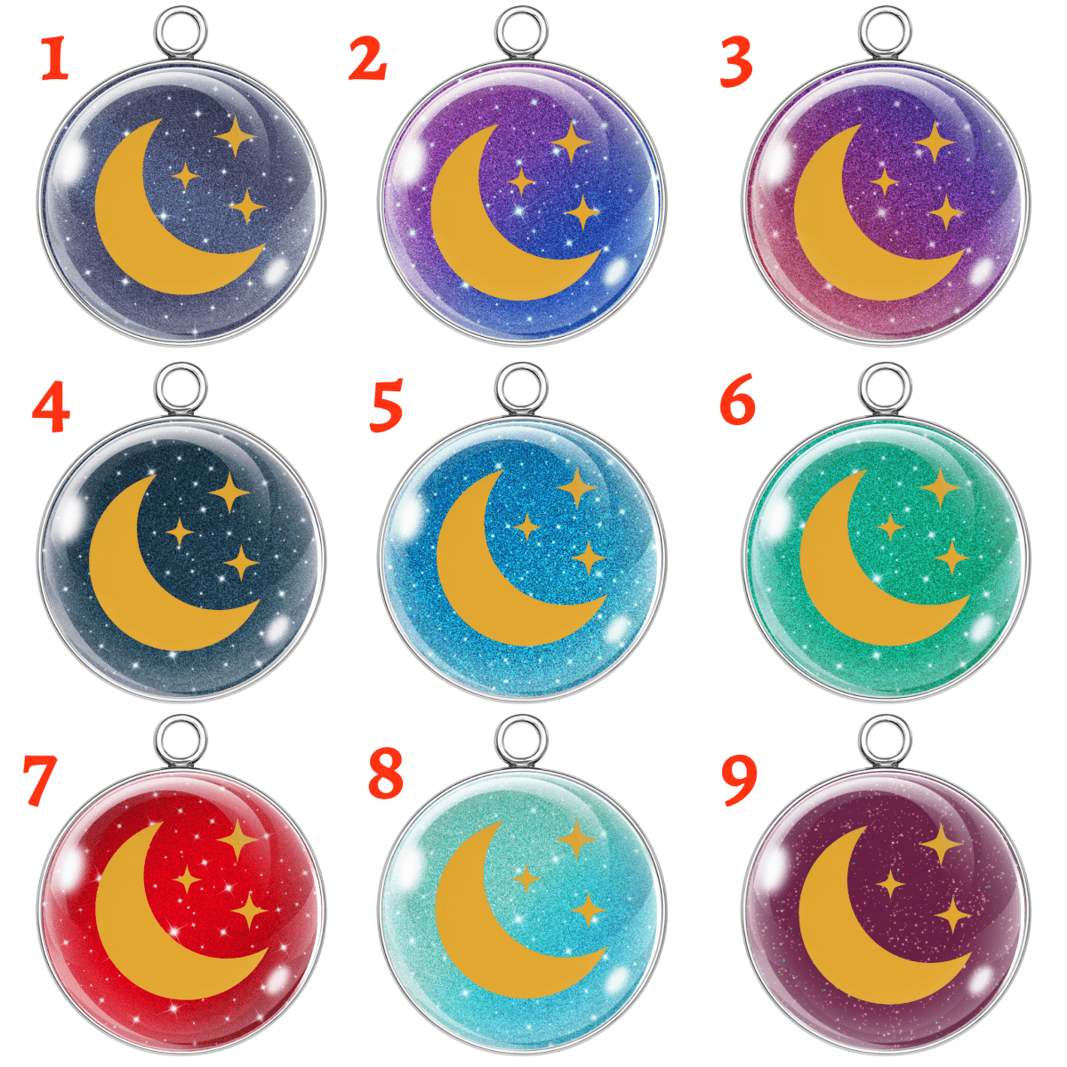 Unlock the magic of the moon with our stunning Moon & Stars galaxy glass cabochon charms! Each charm is handmade using a crystal-clear glass dome and a never-fade stainless steel base, creating a vibrant, sparkling finish that brings the cosmos right to your jewelry box.