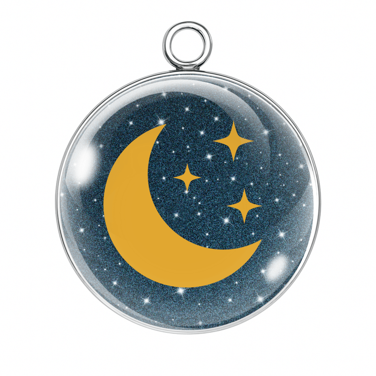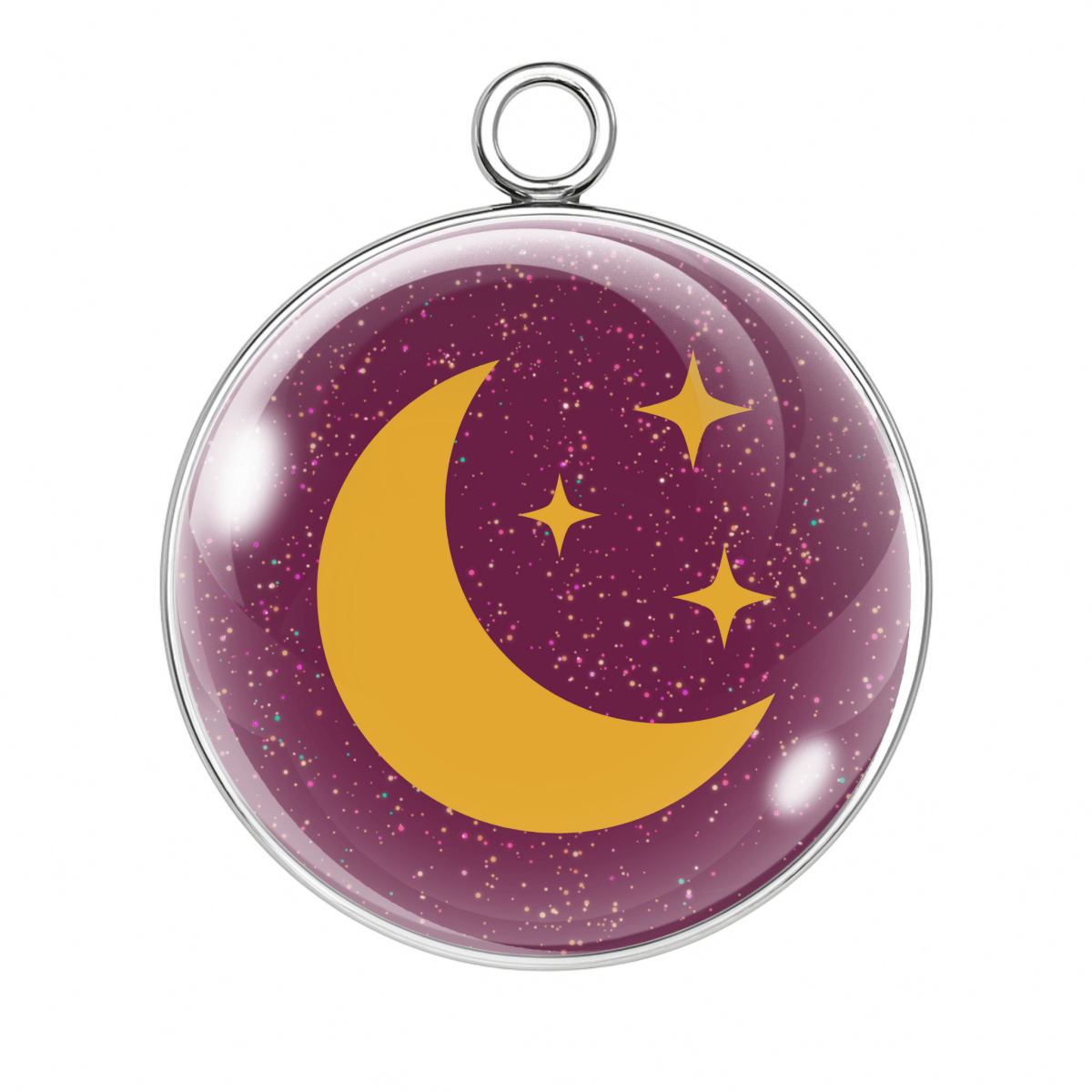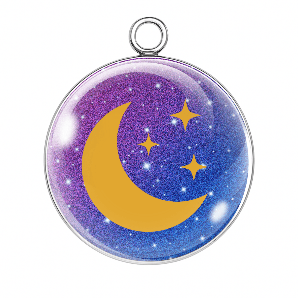 Unlock the magic of the moon with our stunning Moon & Stars galaxy glass cabochon charms! Each charm is handmade using a crystal-clear glass dome and a never-fade stainless steel base, creating a vibrant, sparkling finish that brings the cosmos right to your jewelry box.