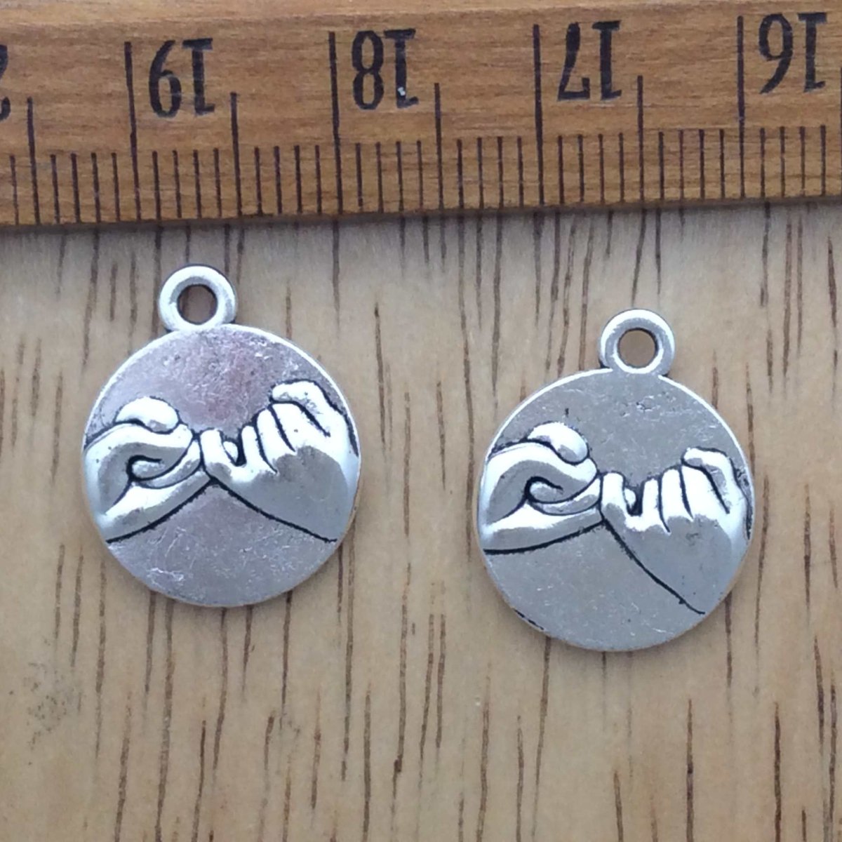 Take a peek at this pack of 10 Pinky Swear charms...perfect for pendants, earrings, charm bracelets, zipper pulls, bookmarks and wine charms!