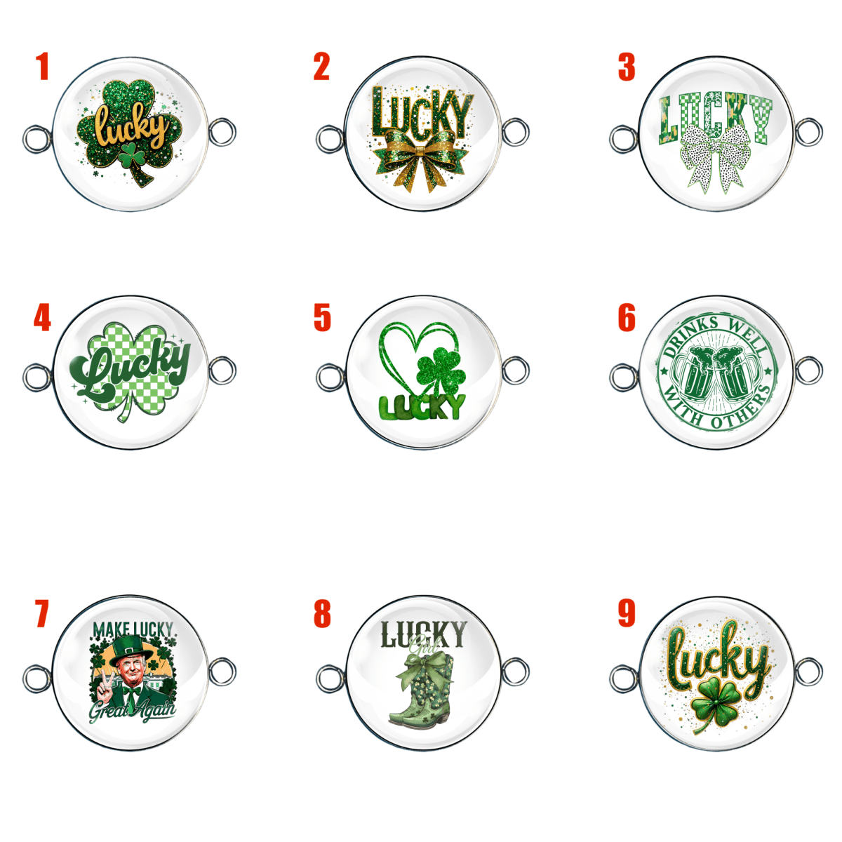 Create your own lucky charm bracelets with our 2 hole Lucky Bracelet Charms. Handmade in the USA with crystal clear glass cabochons, these charms are made to withstand time with their never-fading stainless steel base. With two eyelets, you can easily incorporate them into your jewelry designs for a unique touch.