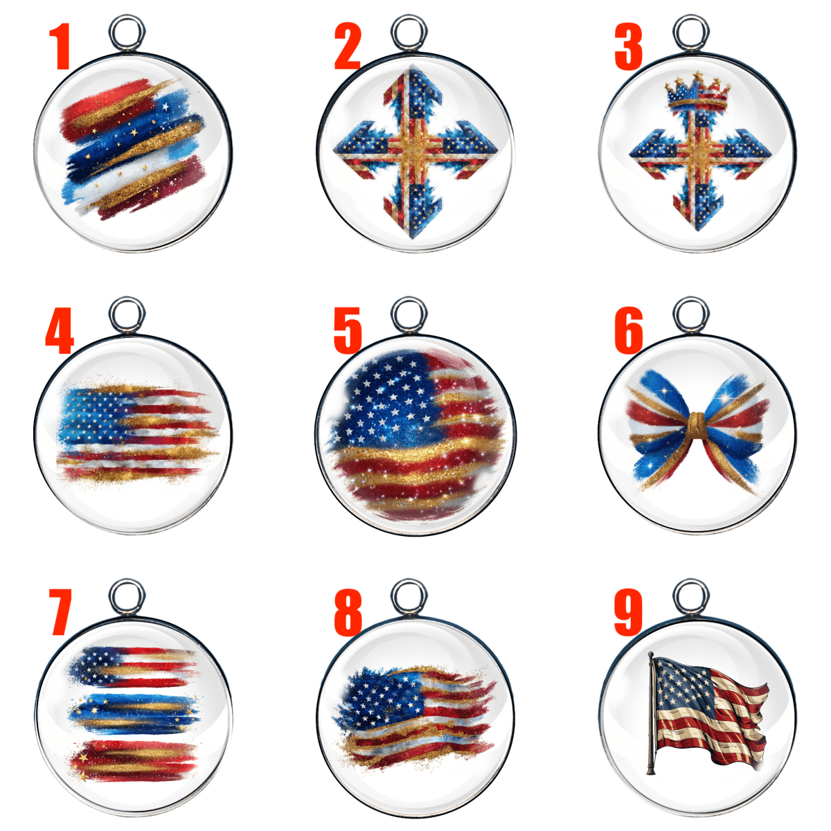 πΊπΈ Patriotic USA Flag Glass Cabochon Charms β Handmade Keychain & Jewelry Craft Supplies β Small, Medium & Large Sizes