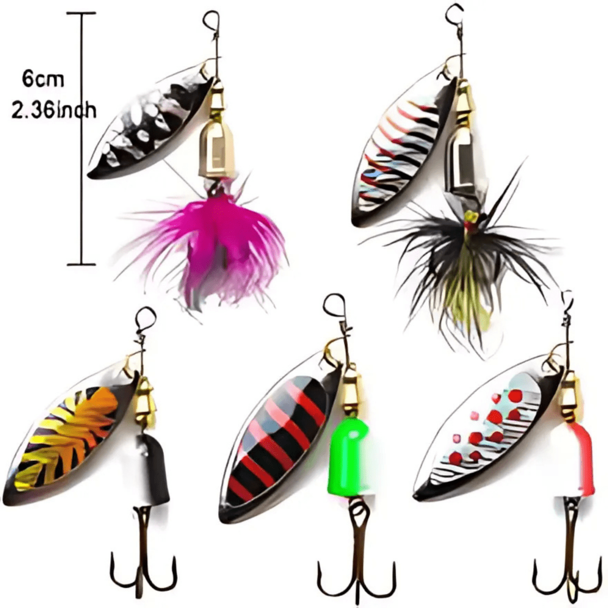 5pcs Fishing Lure, Spinner bait, Bass Trout Salmon Hard Metal Spinner Baits Kit