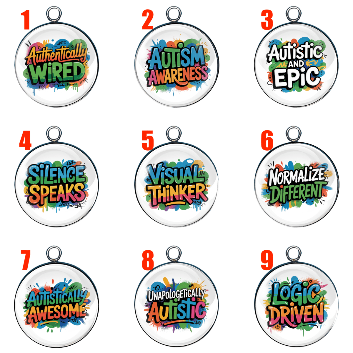 Autistic Advocacy Glass Charms – Loud, Proud & Epically Wired!