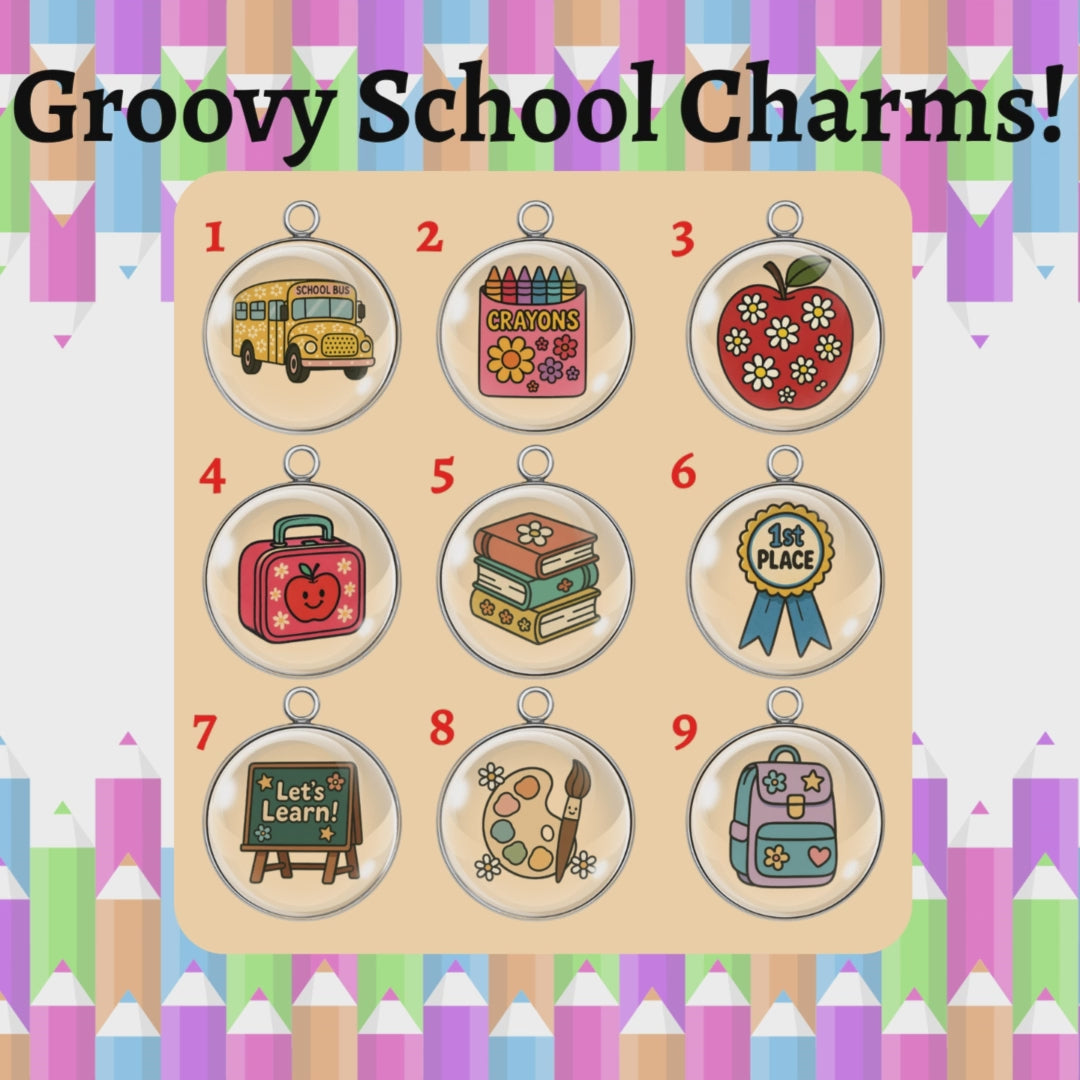 Retro Groovy School Glass Cabochon Charms – Teacher Gifts, DIY Jewelry