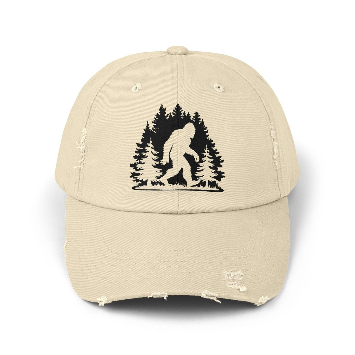 Step up your hat game with our Bigfoot Unisex Distressed Cap—a must-have for adventurers, cryptid hunters, and lovers of all things mysterious. Featuring a laid-back, vintage look and feel, this cap is made from 100% cotton twill and topped off with a distressed finish that’s as legendary as the creature itself.