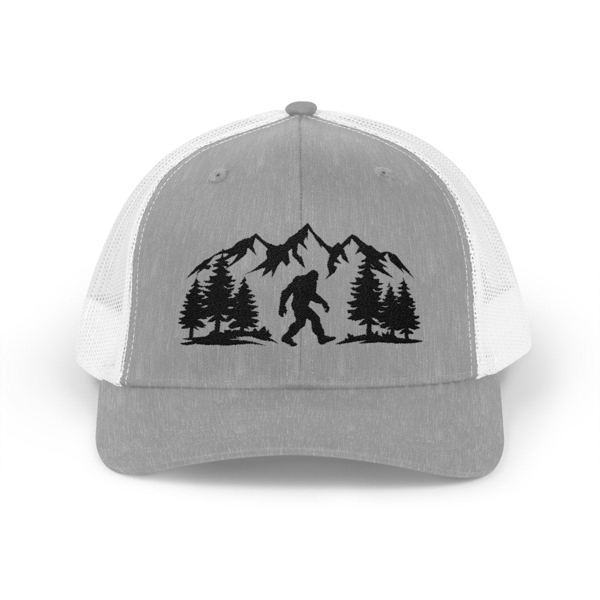 “Believe in the Unknown” Bigfoot Trucker Hat – Mountain Forest Design