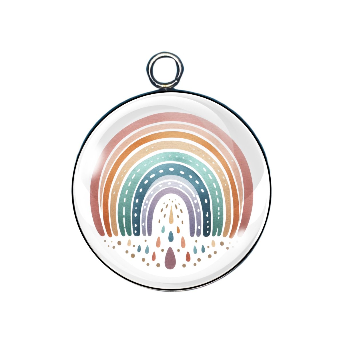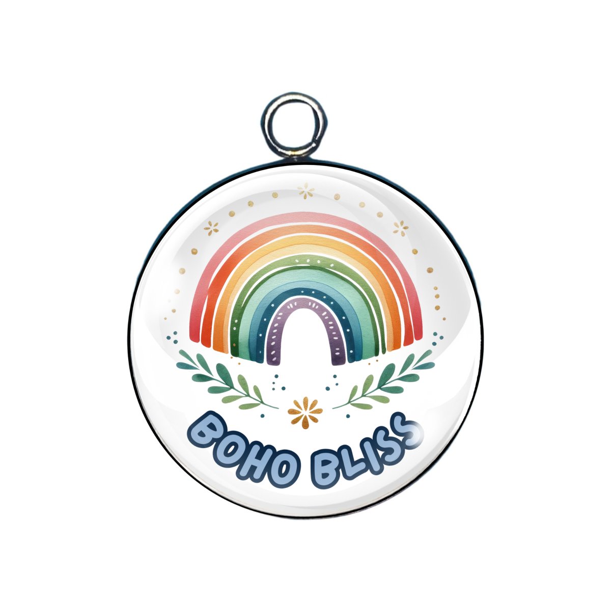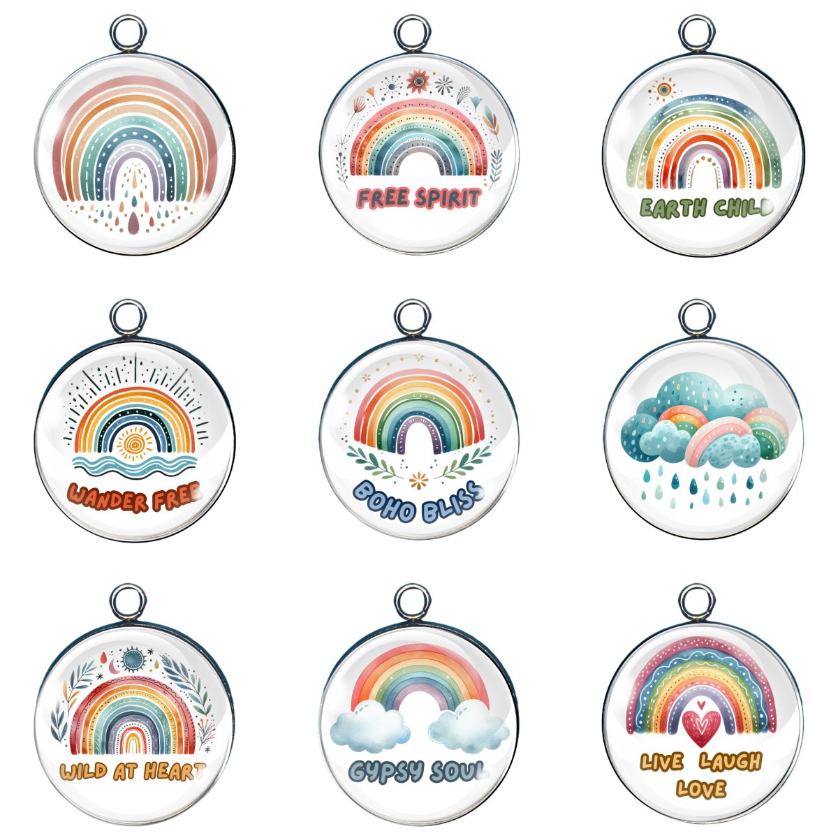Experience a burst of color and artistic expression with our Bohemian Rainbow Glass Cabochon Charms. Each charm is adorned with a unique, handcrafted glass design that will add a touch of whimsy and sophistication to any accessory or craft project. Stand out with these vibrant and eye-catching charms!