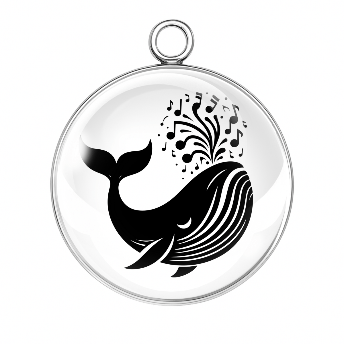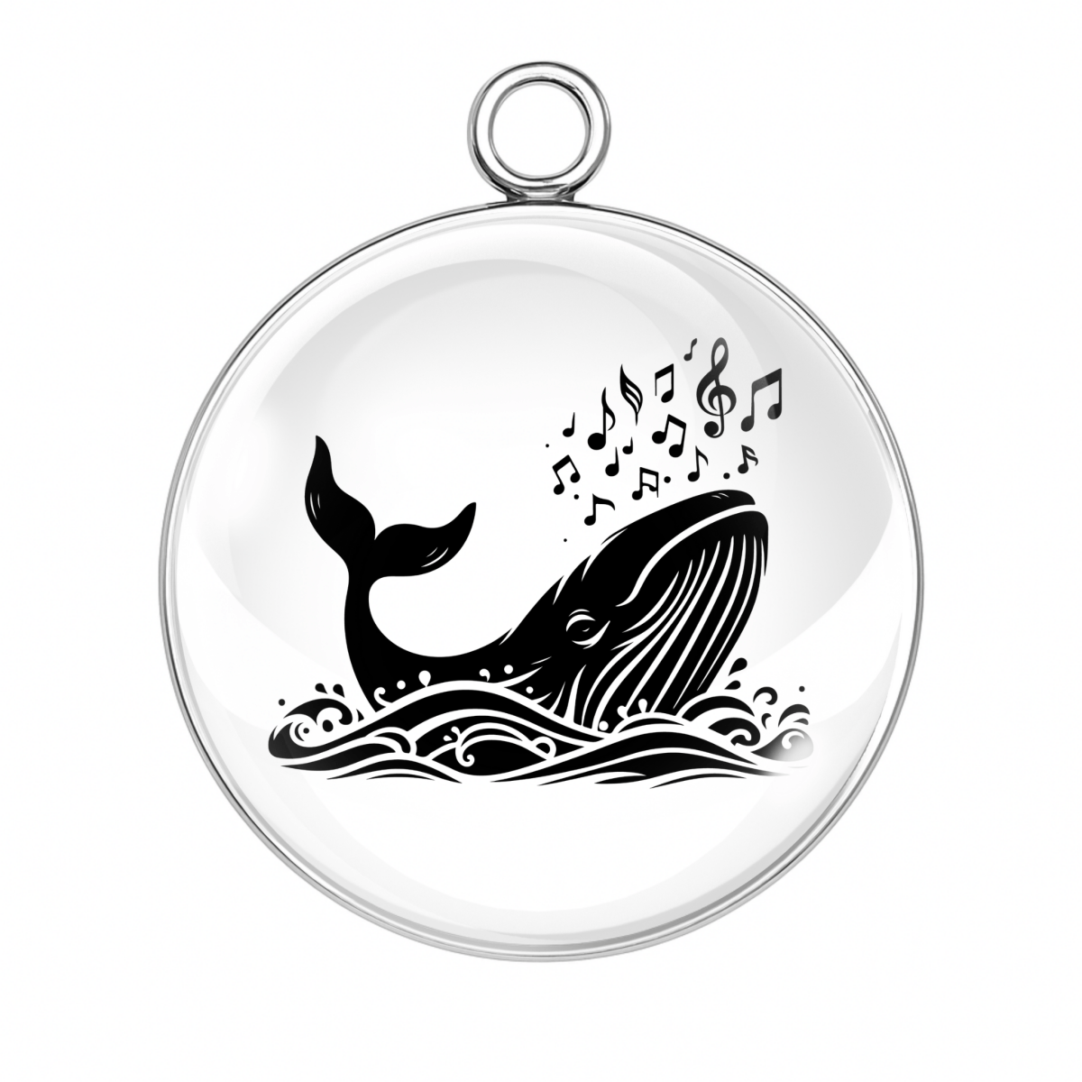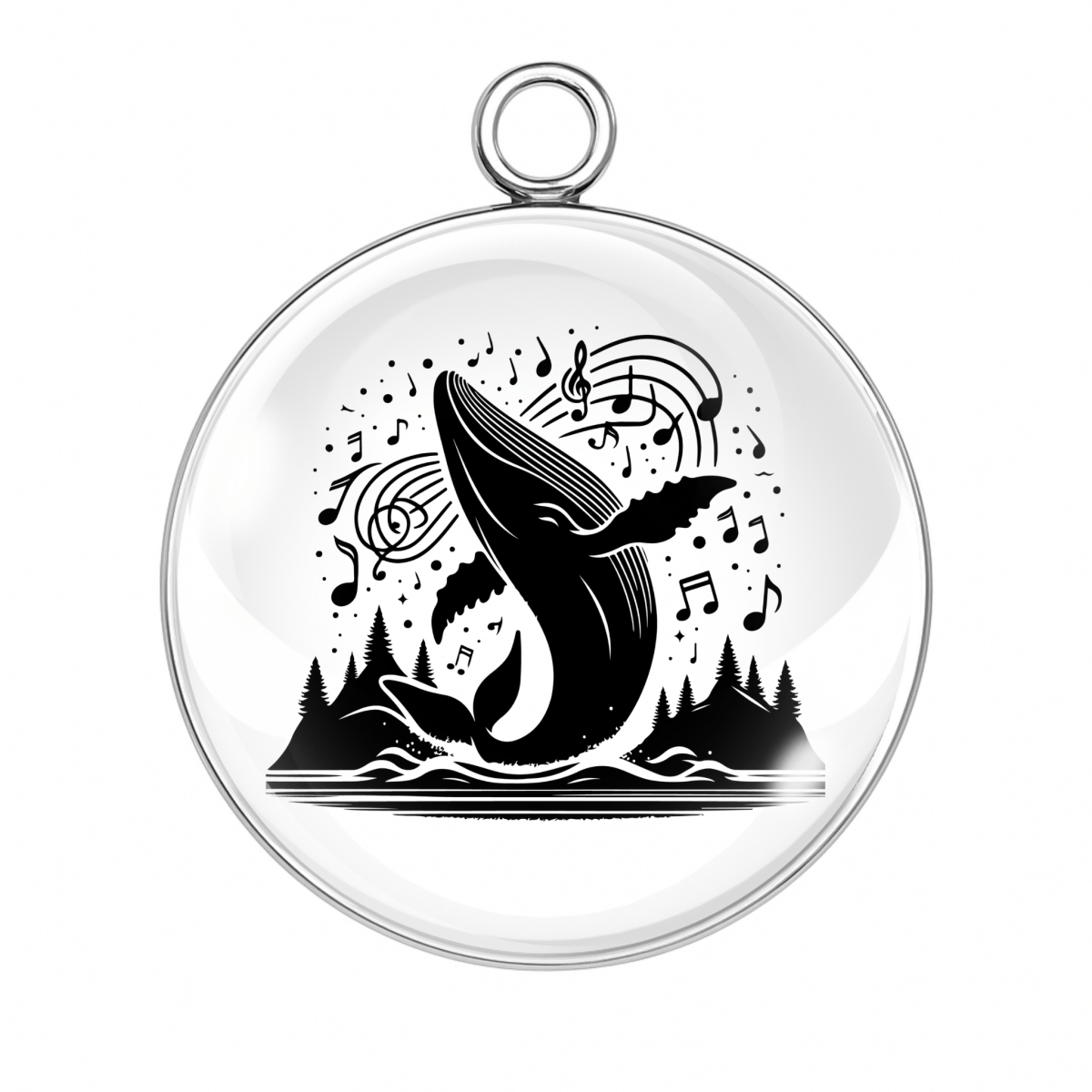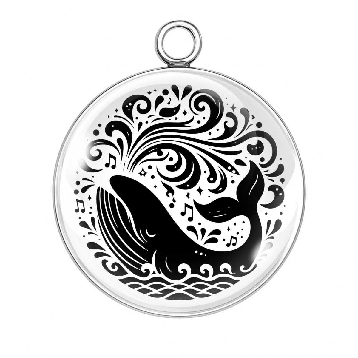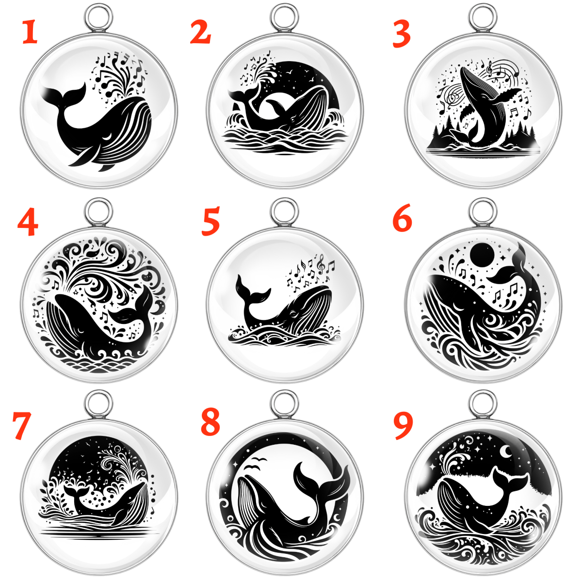 Make a splash in your jewelry and craft projects with these out-of-this-world Celestial Whale Charms! Each handmade charm features a stunning black-and-white design of whales swimming through cosmic waves, starlit skies, and musical moonlight.