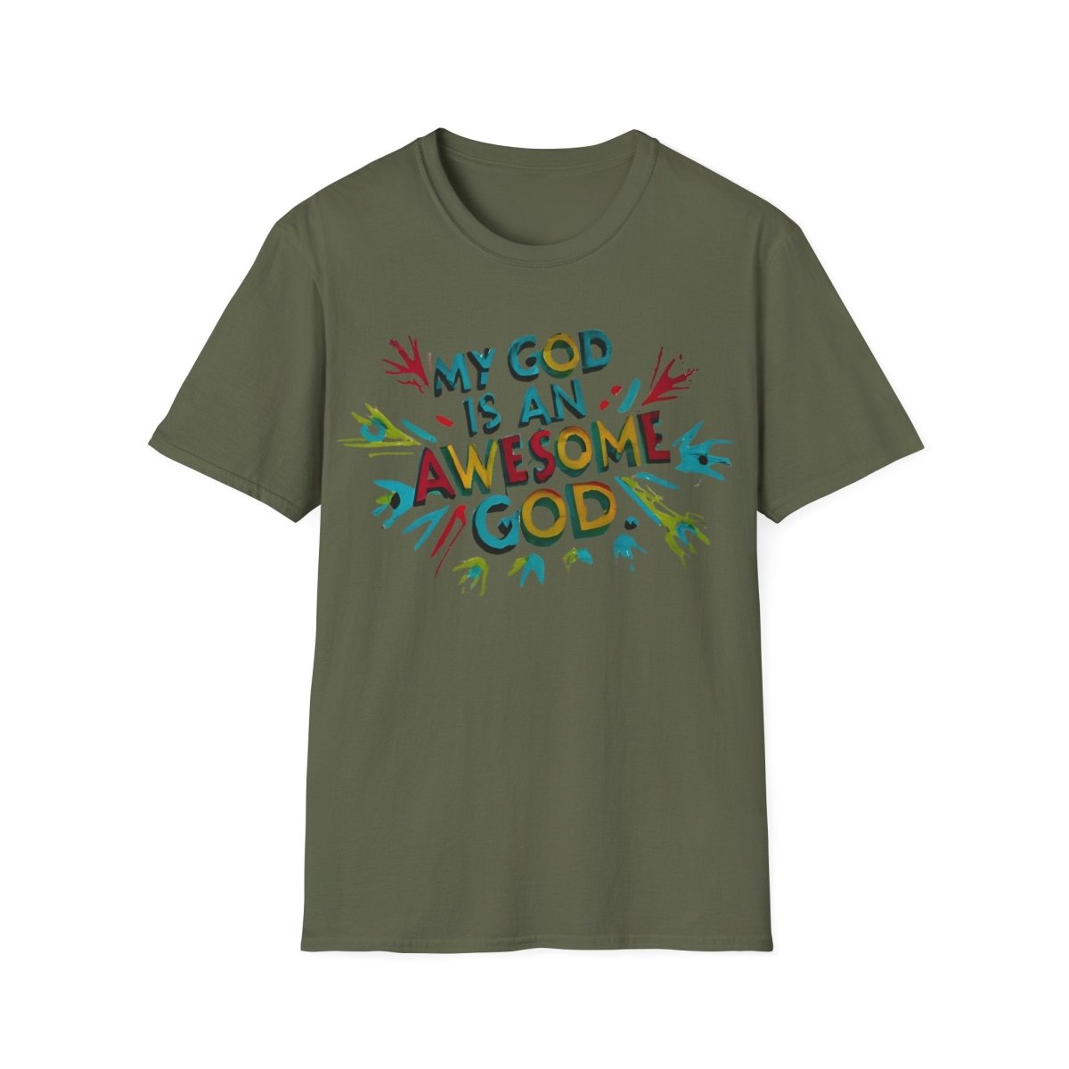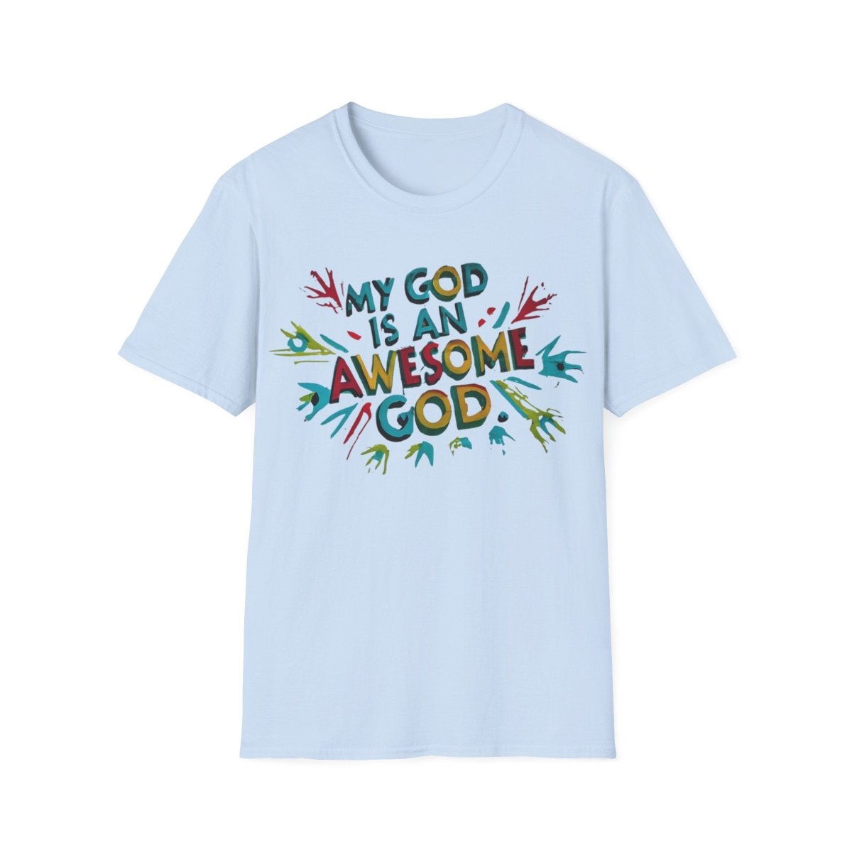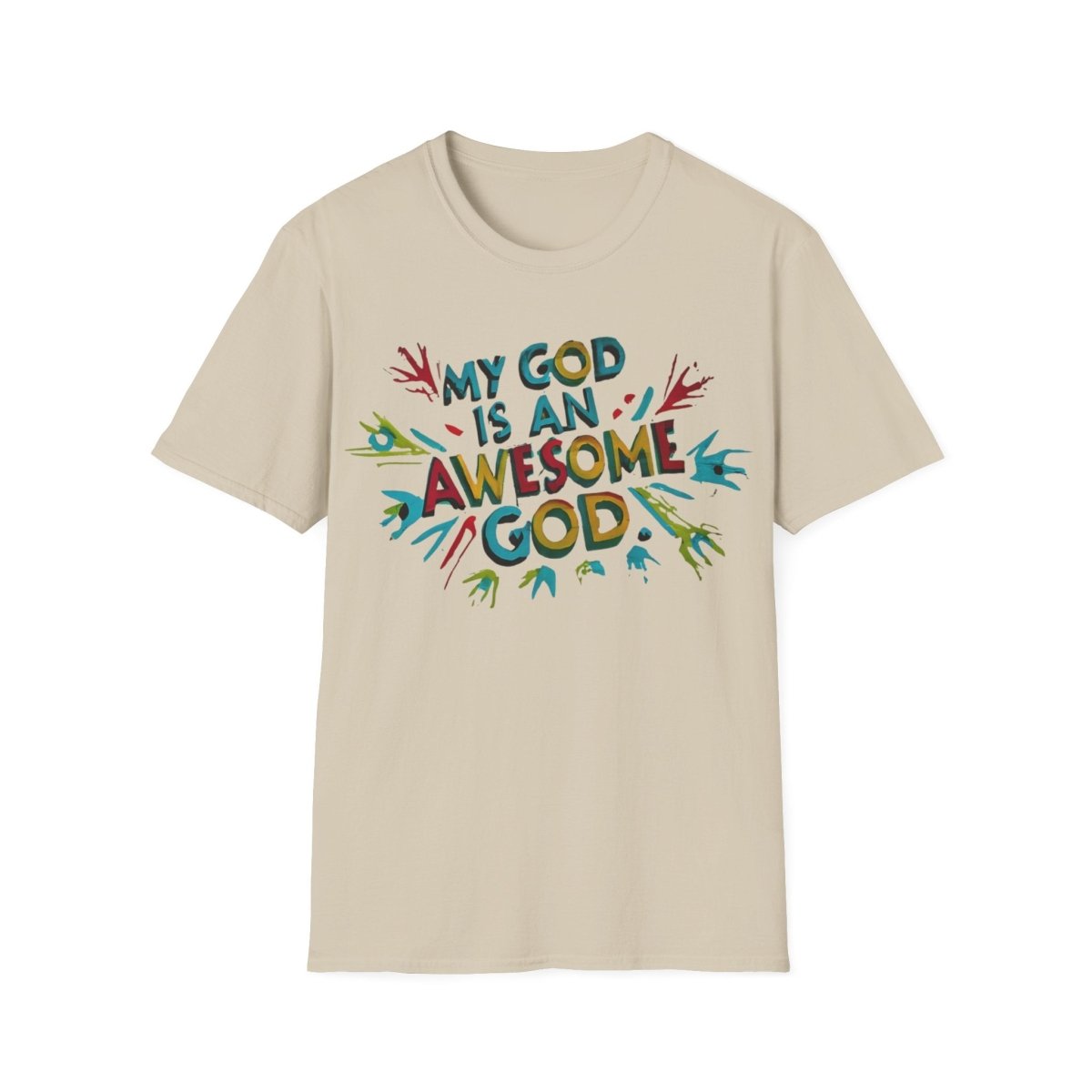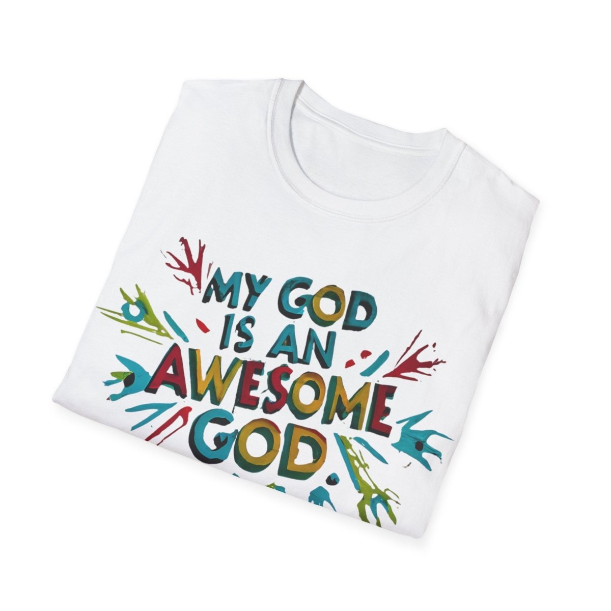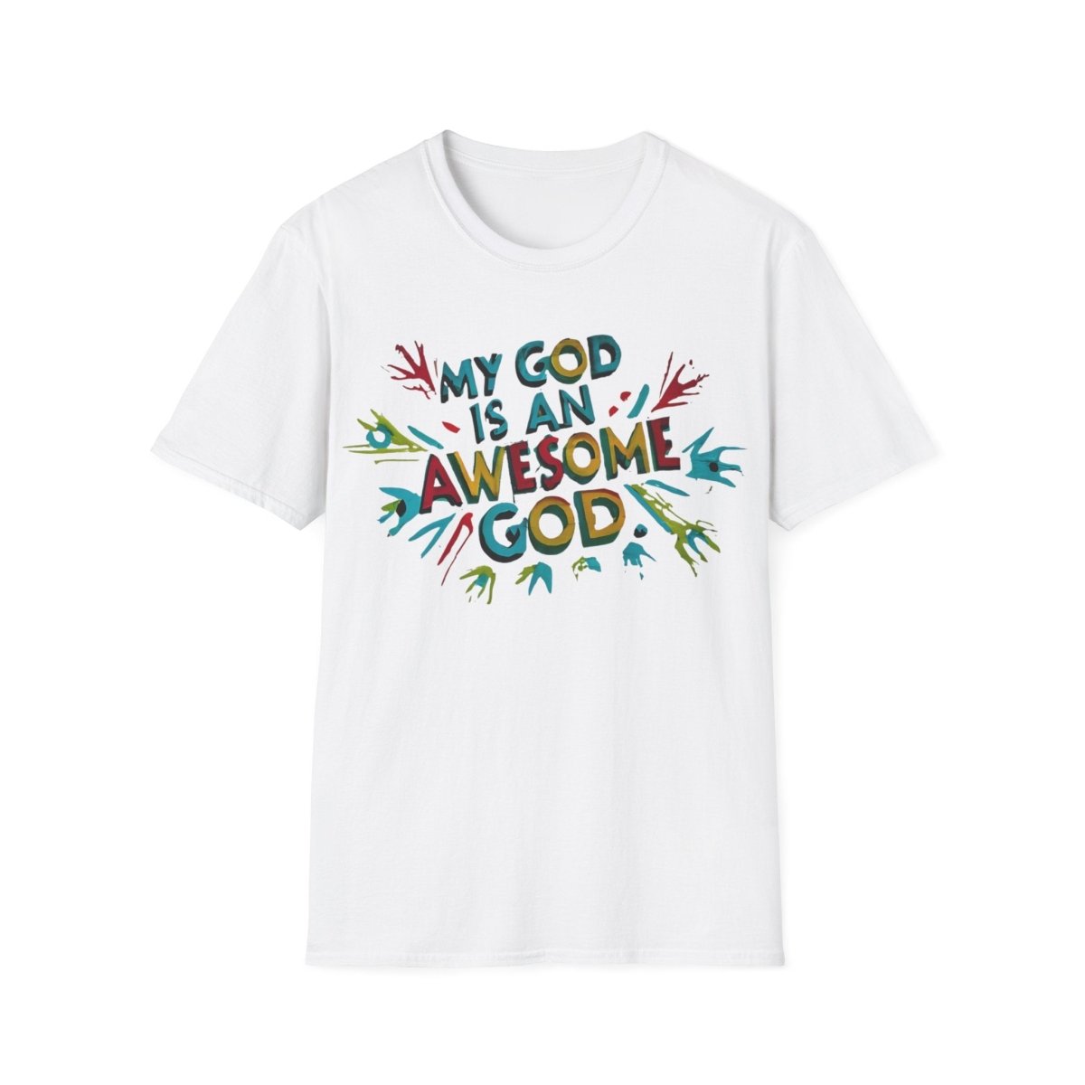 This Unisex Softstyle T-Shirt features a 'My God is an Awesome God' design, perfect for those who want to showcase their faith in a stylish way. Made from durable and smooth fabric, this t-shirt is comfortable to wear all year round. The classic fit and crew neckline make it versatile for any occasion, whether formal or casual. Ideal for adults looking for a religious-themed shirt.
