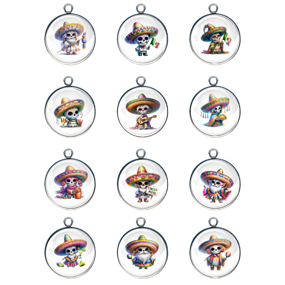 Cinco de Mayo Skeleton Gnome Glass Cabochon Charms