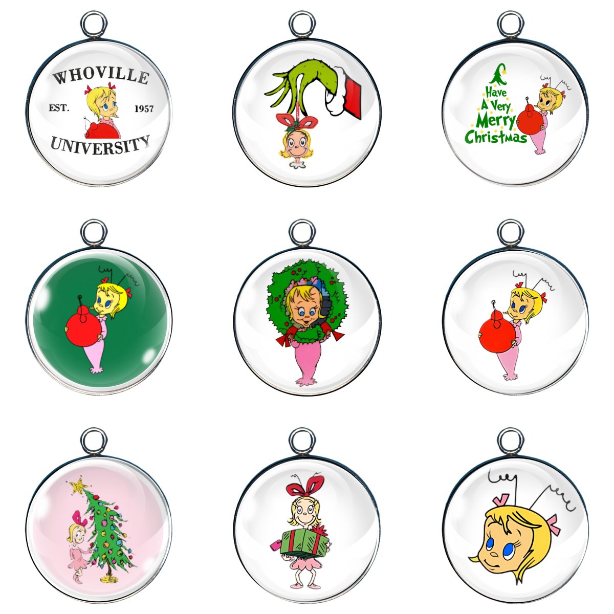 Add a touch of whimsy to any outfit with these Cindy Lou Who Glass Cabochon Charms! Featuring a vibrant design and durable glass construction, these charms are sure to catch the eye and add a fun, playful element to your look. Perfect for any fan of this beloved character.