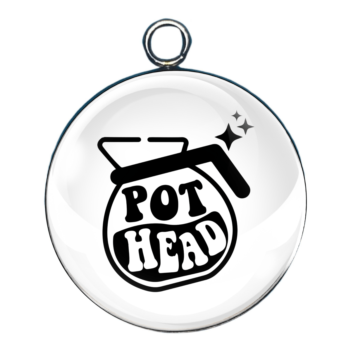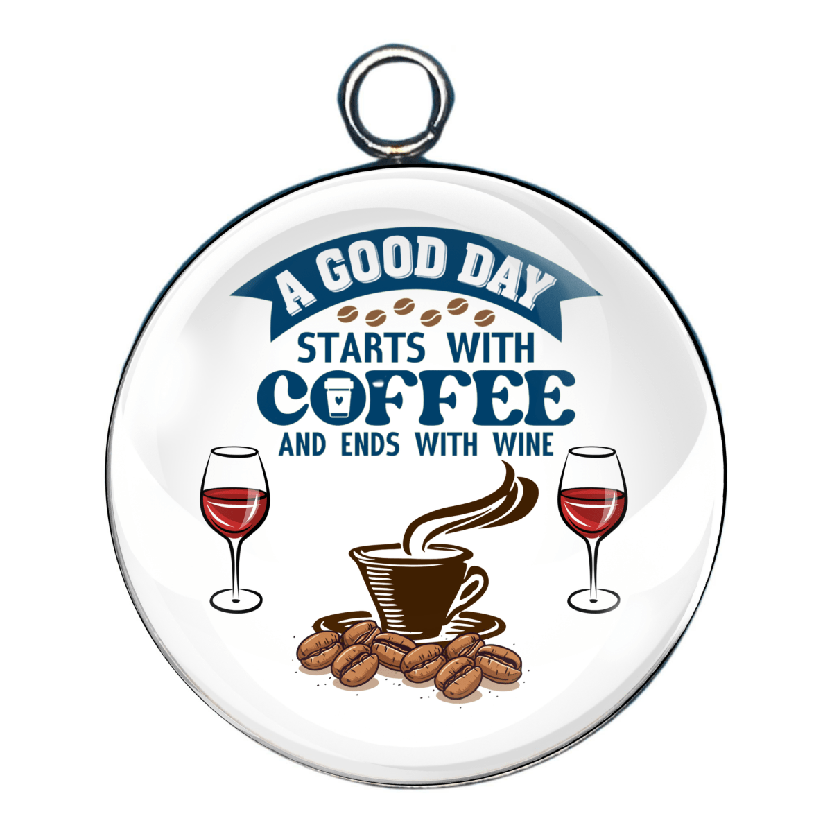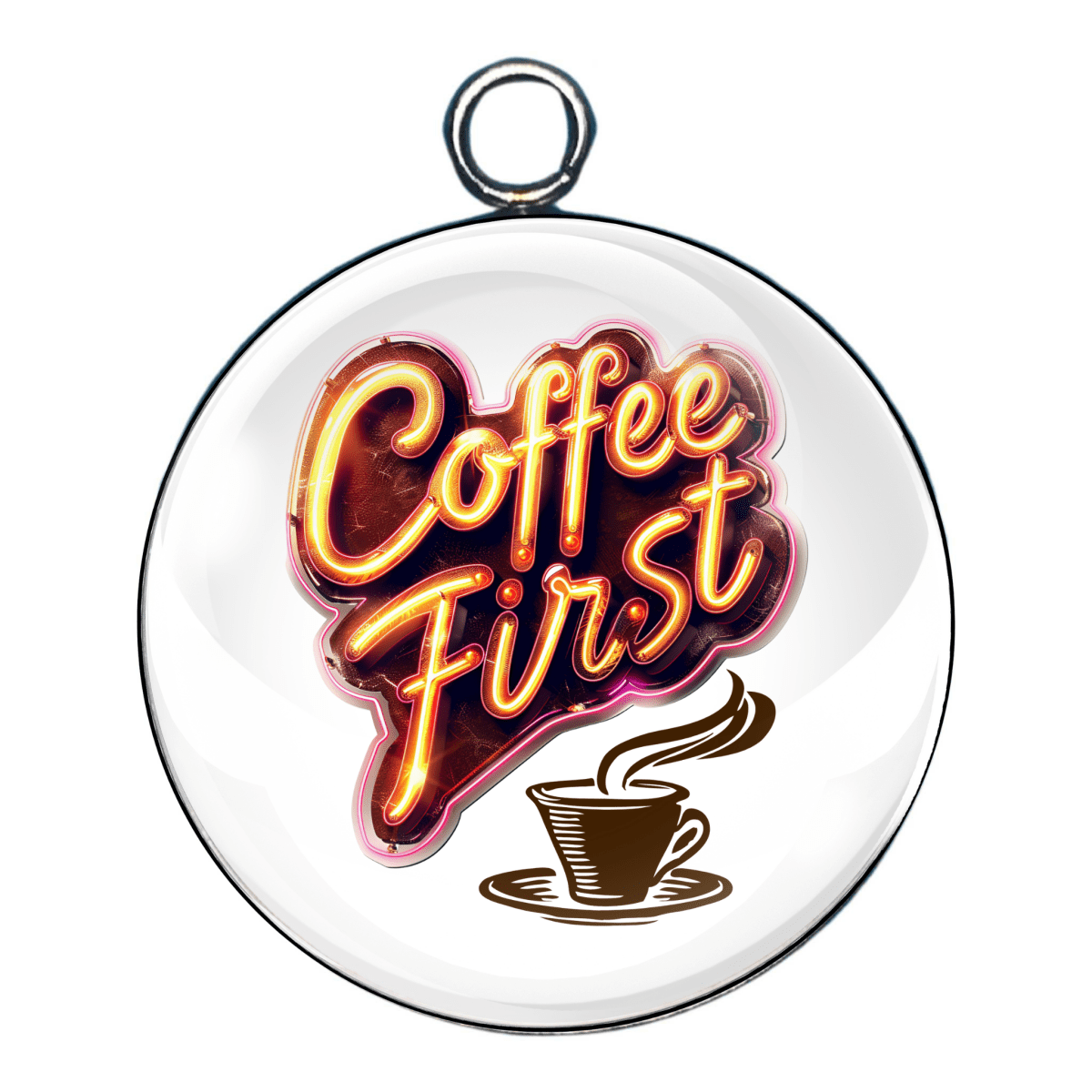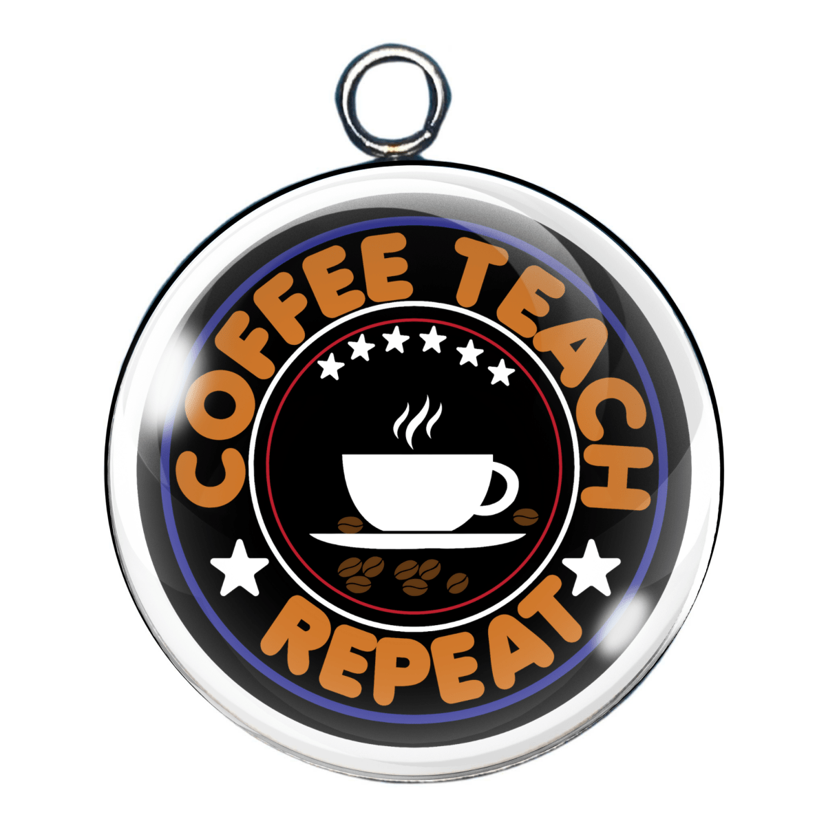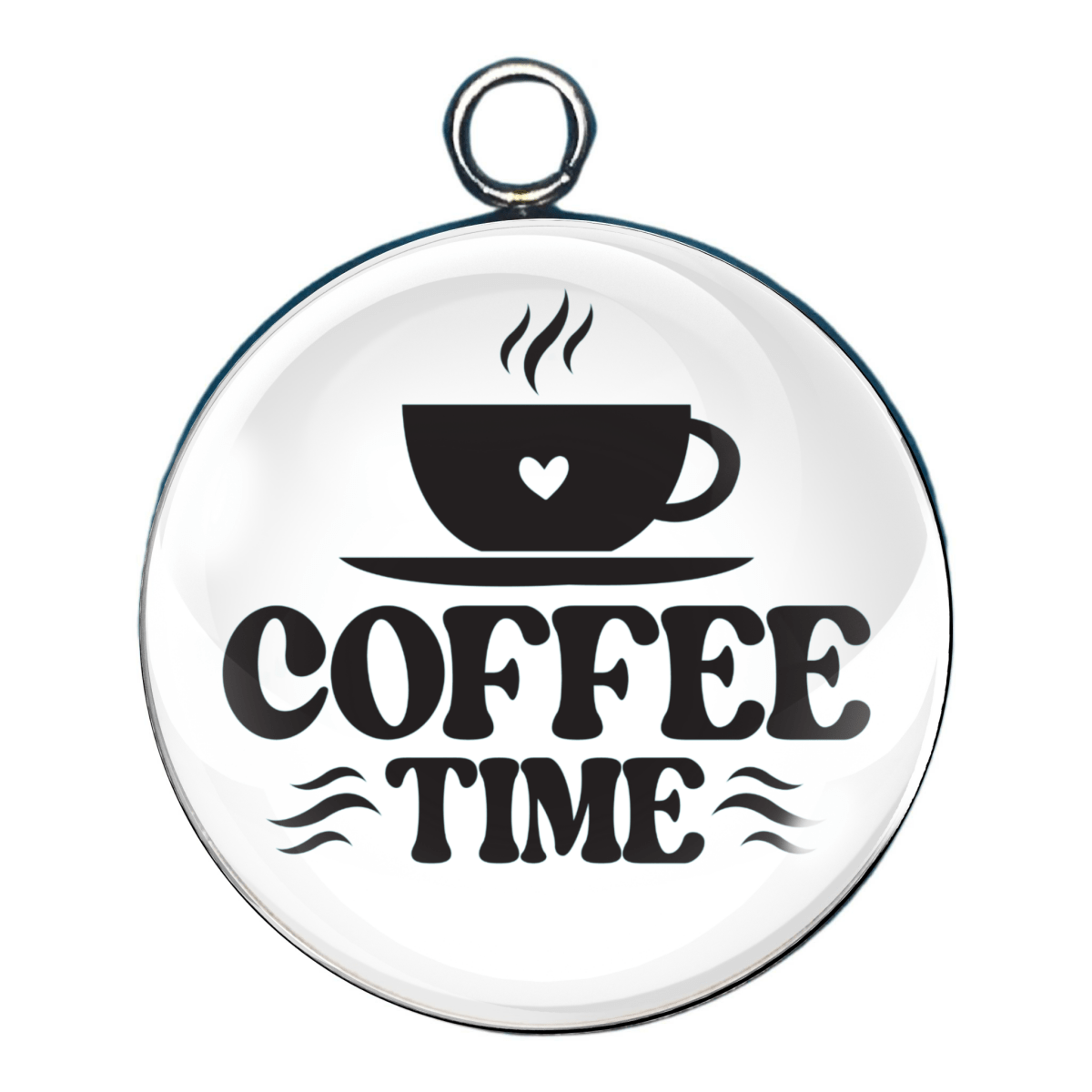 We make our Coffee Lover charms with glass cabochons and they are set in a stainless steel base. We make these Charms/pendants in three different sizes.
