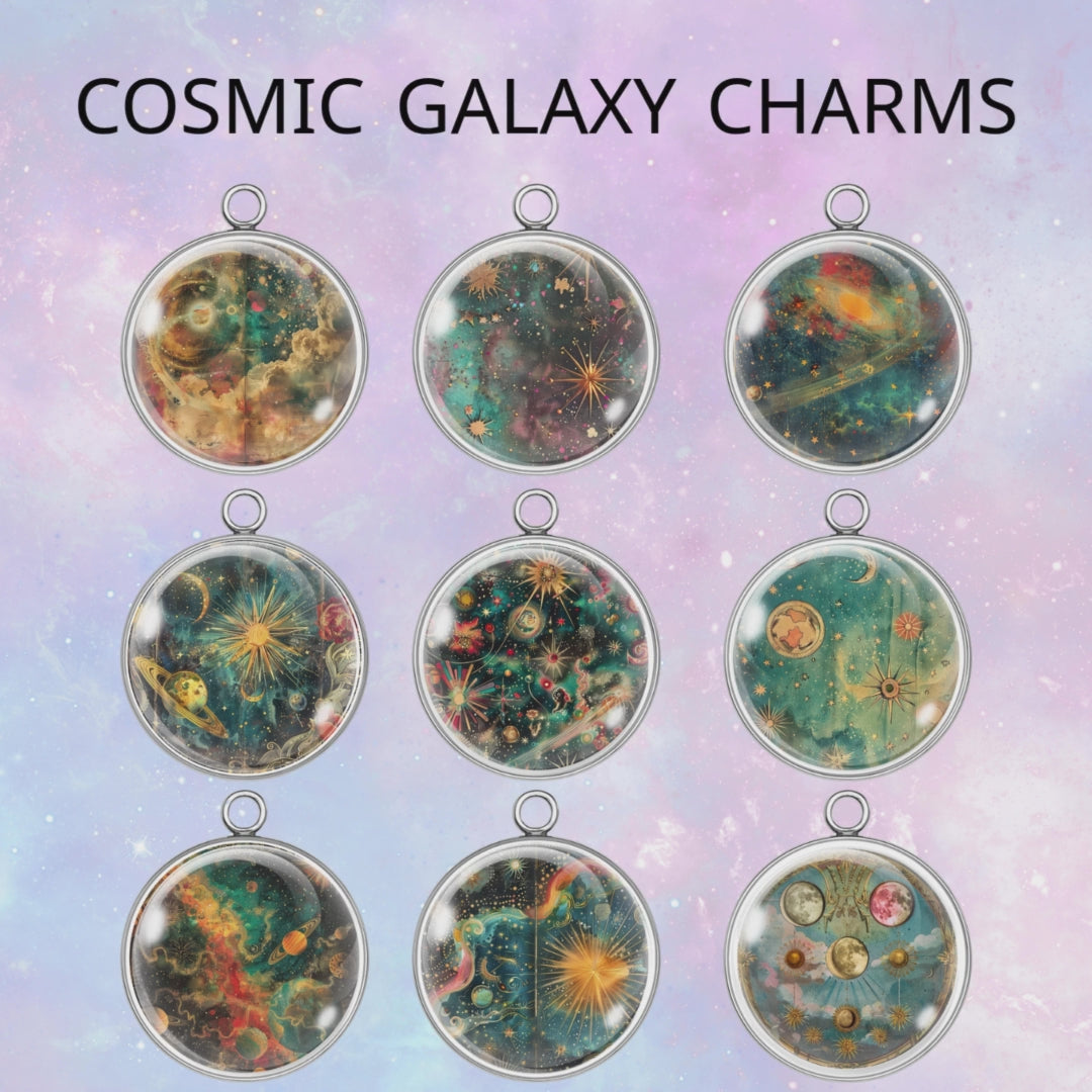 Cosmic Galaxy Glass Cabochon Charms – Stars, Planets, Nebulae & More