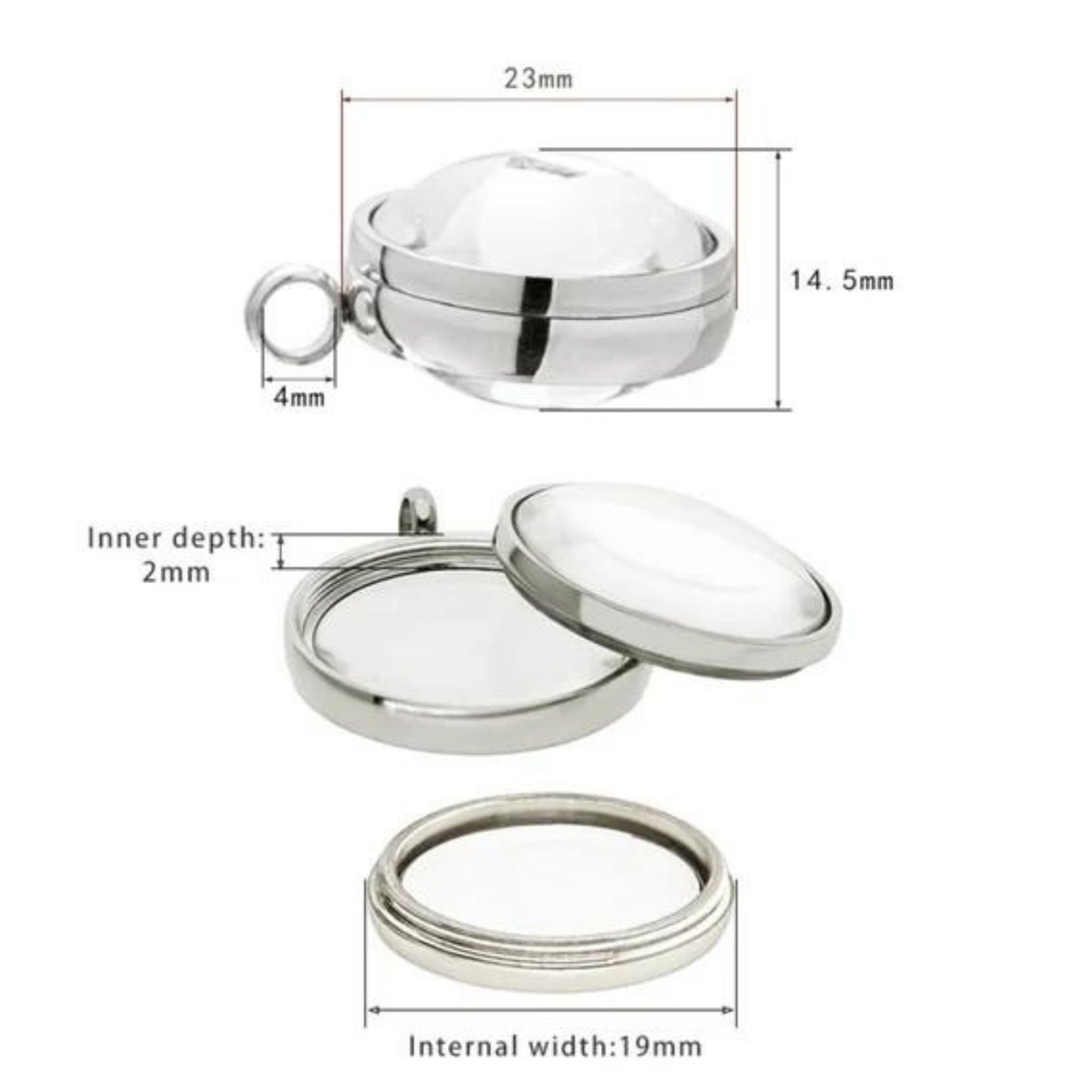 Curved Glass Locket, Living Memory Floating Locket, Snap Close Locket 17mm and 23mm