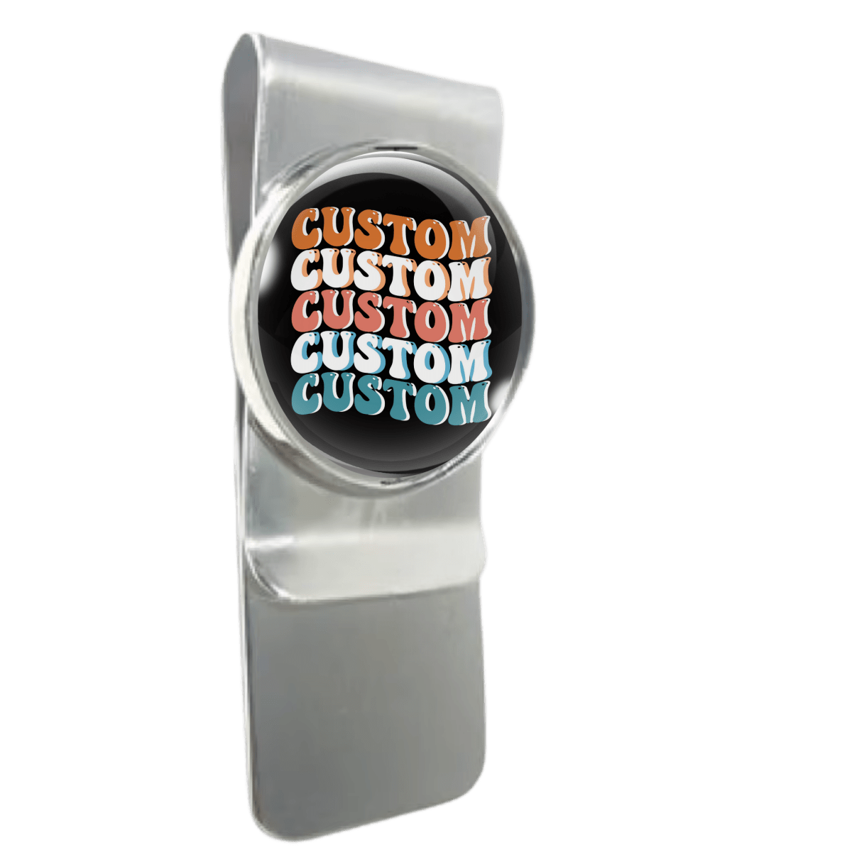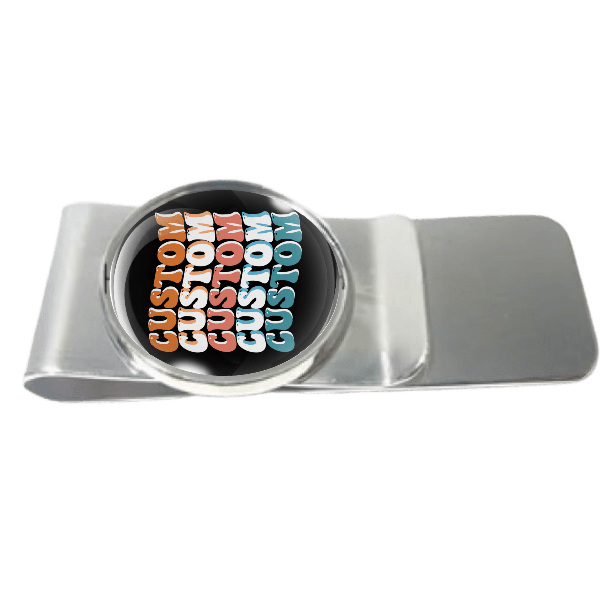 Give a timeless and practical gift with our Customizable Money Clip, handcrafted with a crystal-clear glass cabochonand durable stainless steel. Measuring approximately 2" L x 1" W, this sleek and stylish clip securely holds bills while showcasing a personalized photo or image of your choice.