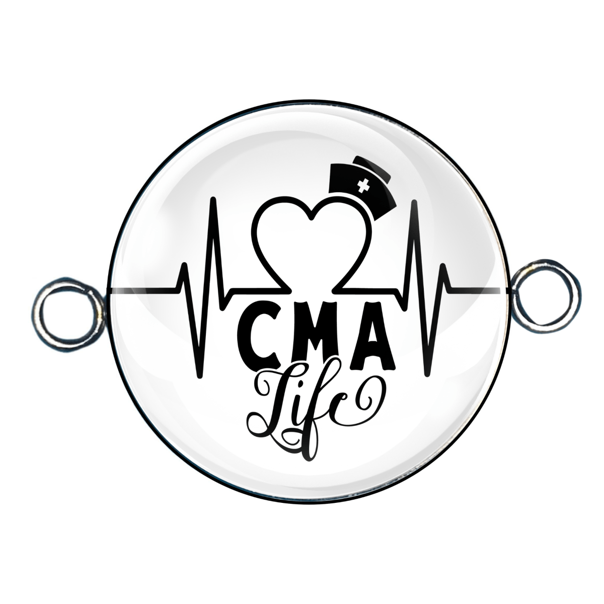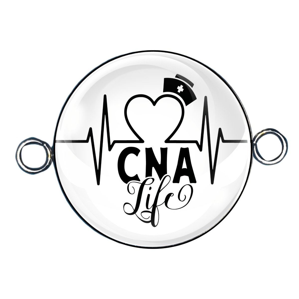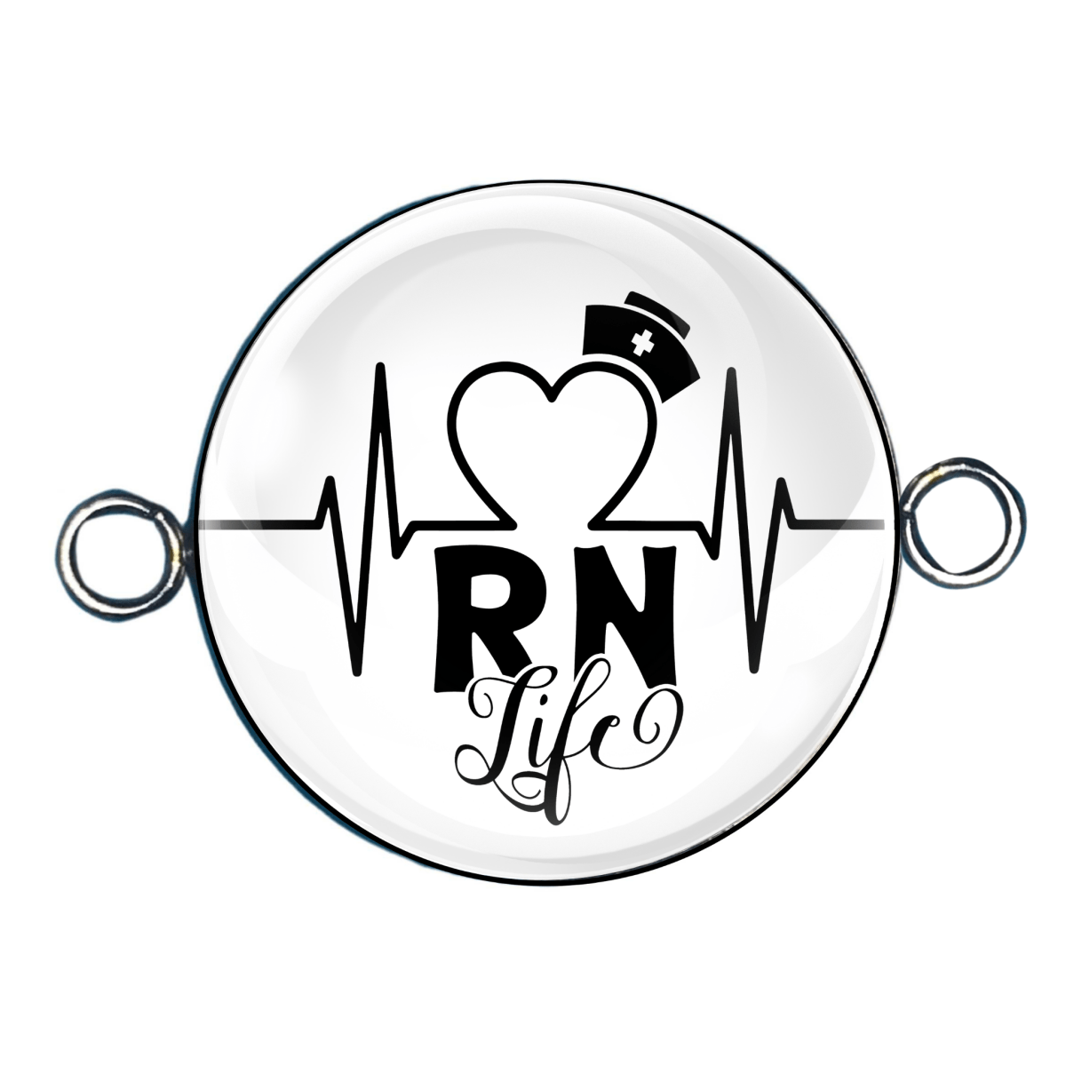 Exude your passion for nursing with these stunning Double Eyelet Nurse Charms! Handmade with crystal clear glass cabochons, these charms are crafted to never fade on a durable stainless steel base. Show off your pride as an Rn, LPN, CNA, or Labor Nurse with these charming additions to your collection. Perfect for any nurse's wardrobe!