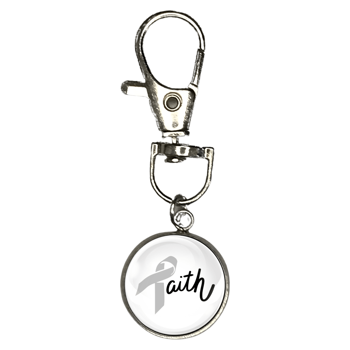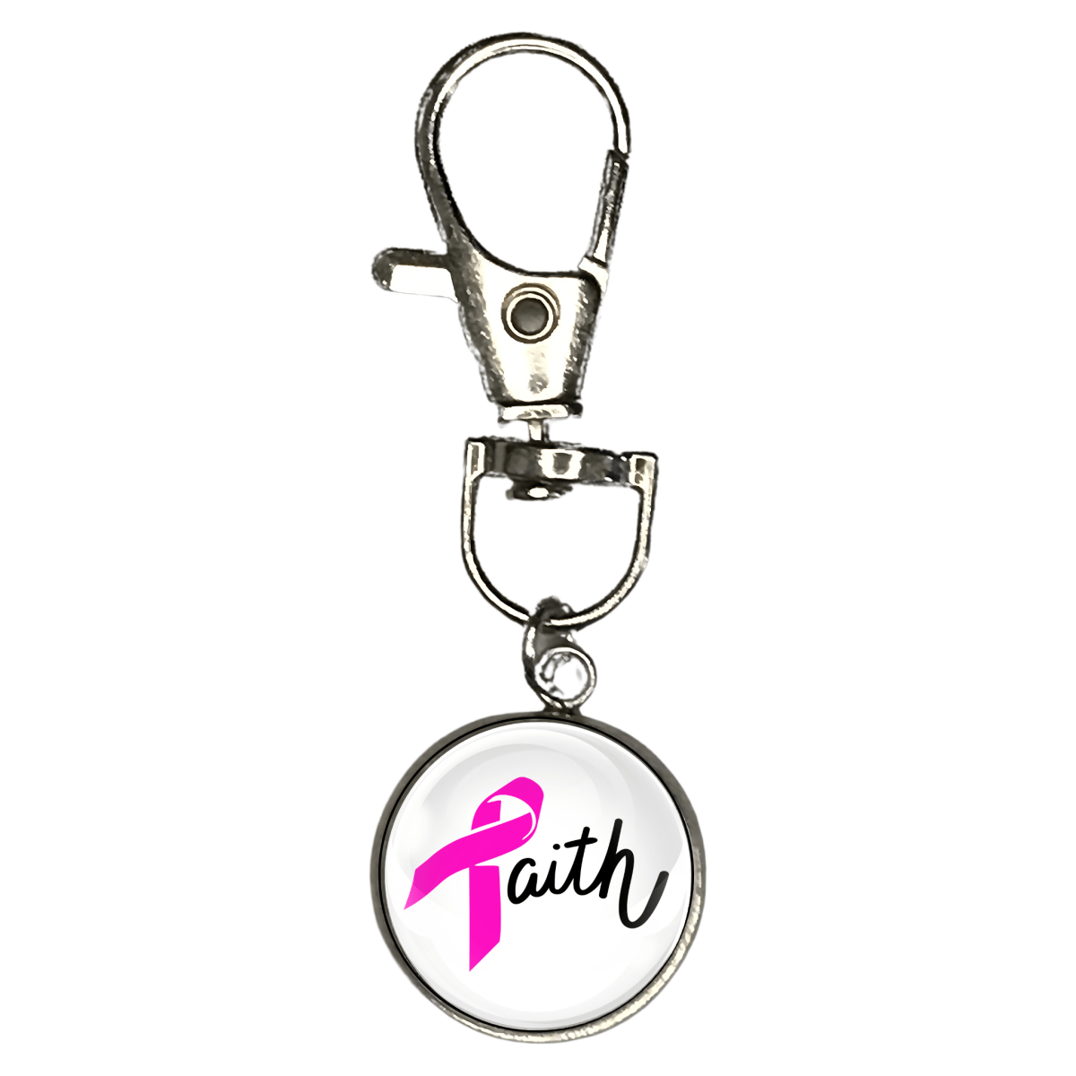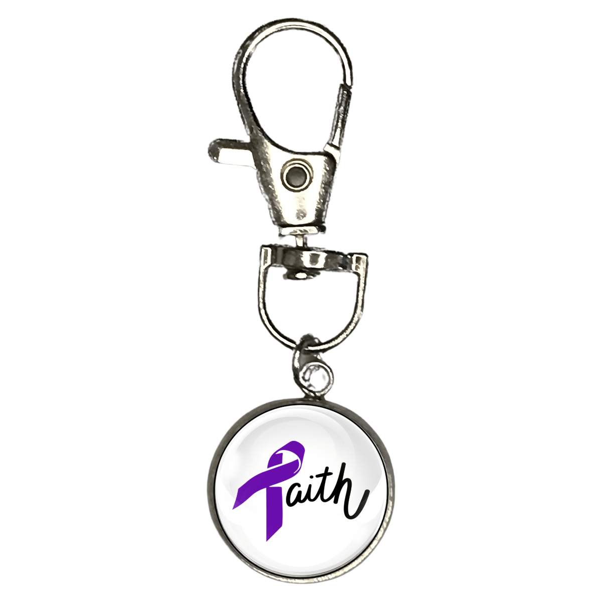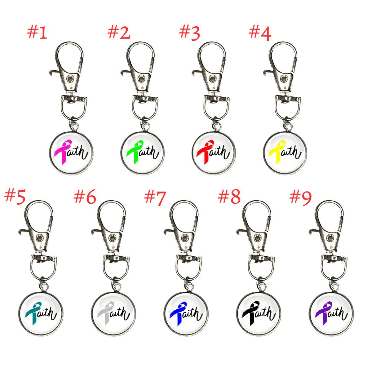 Elevate your style while supporting the cause with our Faith Cancer Awareness Zipper Pulls. Handmade in Oklahoma, these pulls feature a crystal clear glass cabochon and never fade stainless steel. Perfect for adding to coats, backpacks, purses, bags and more.