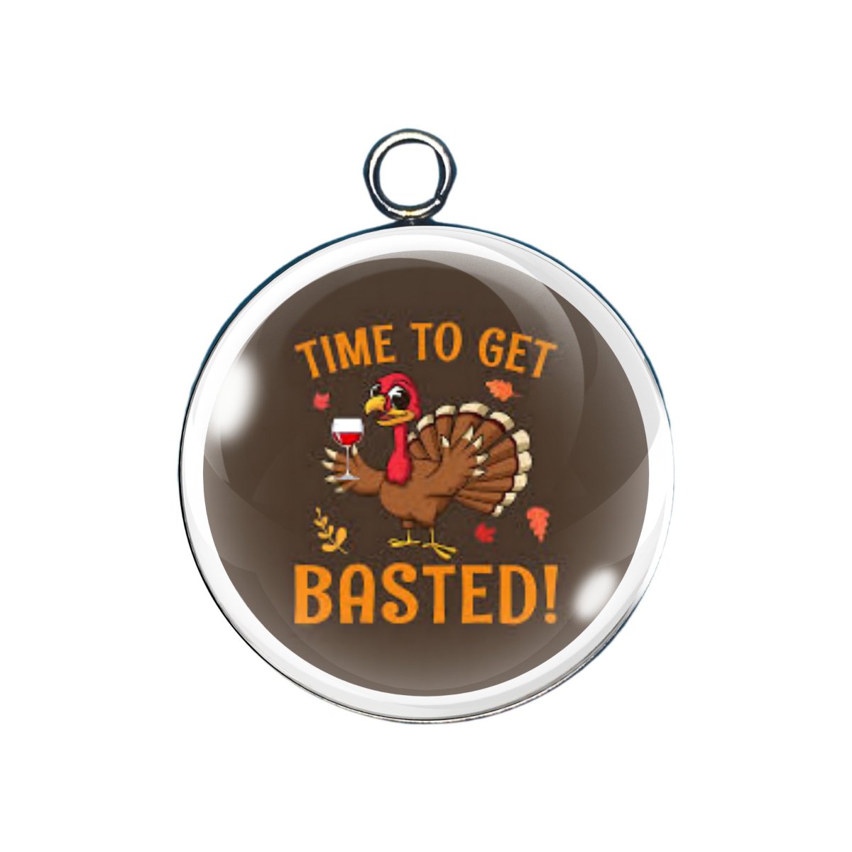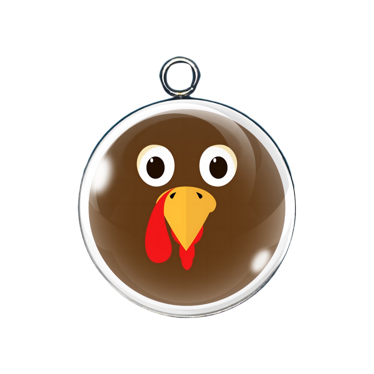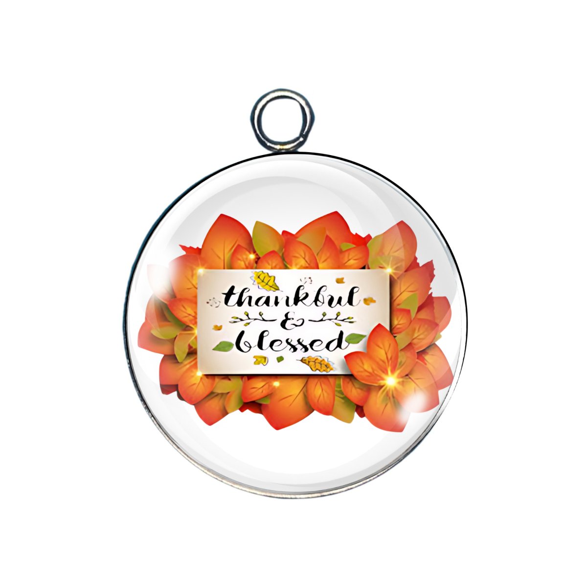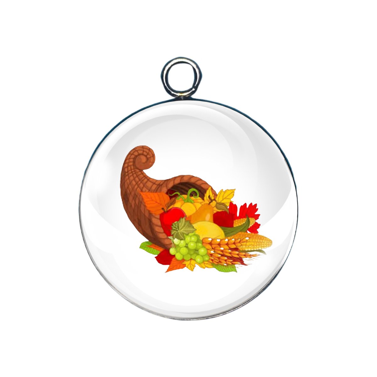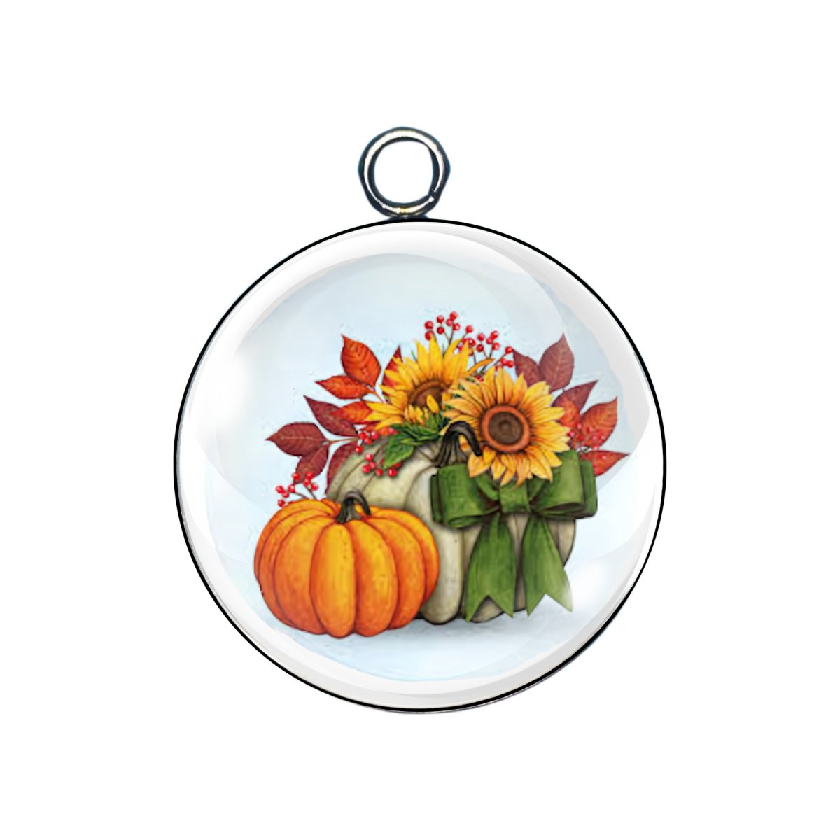 We make our Fall / Thanksgiving charms with glass cabochons and they are set in a stainless steel base. We make these Charms/pendants in three different sizes.