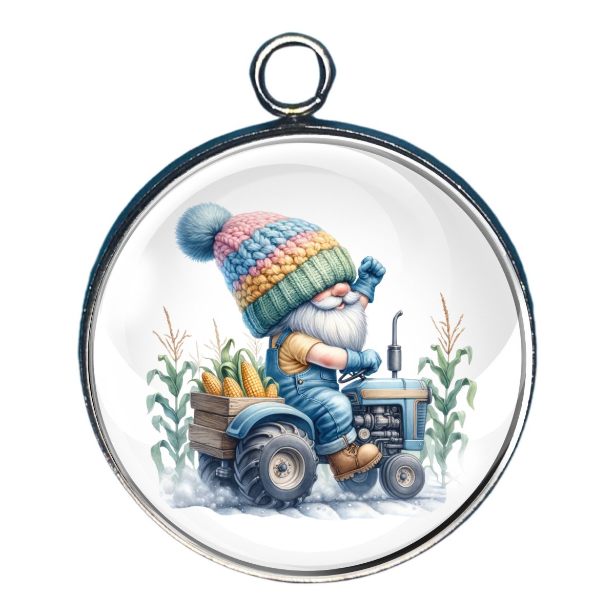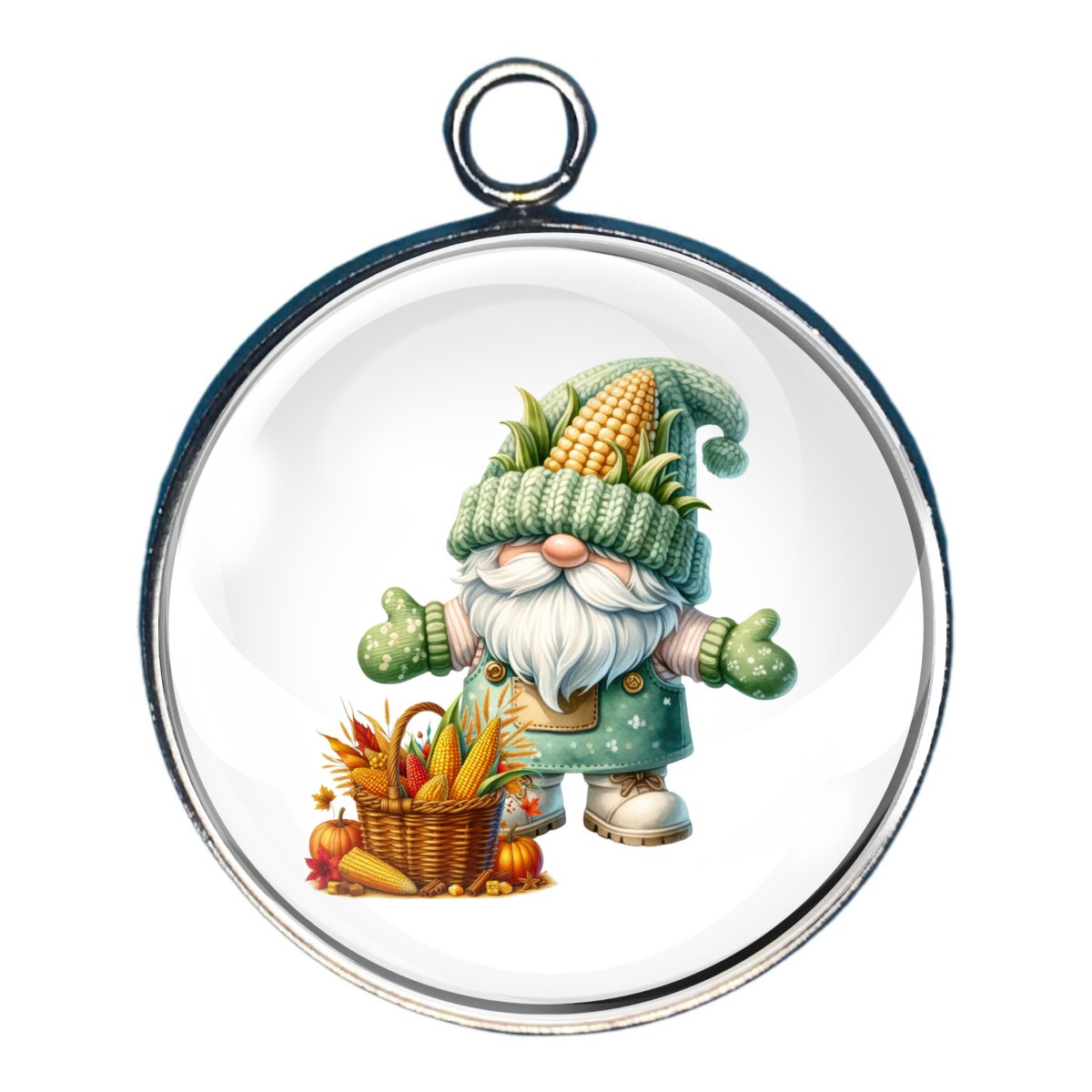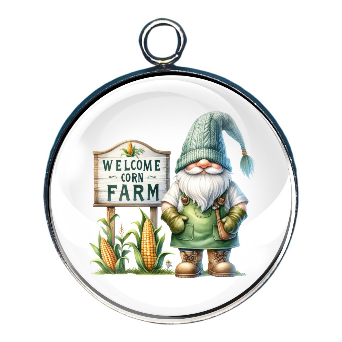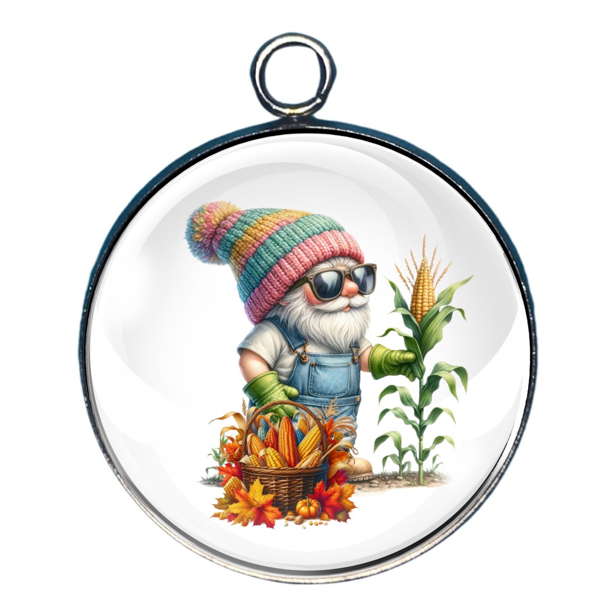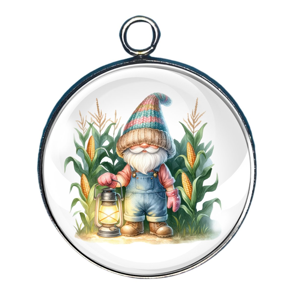 Farmer Gnomes: Corn Harvest Helpers Glass Cabochon Charms