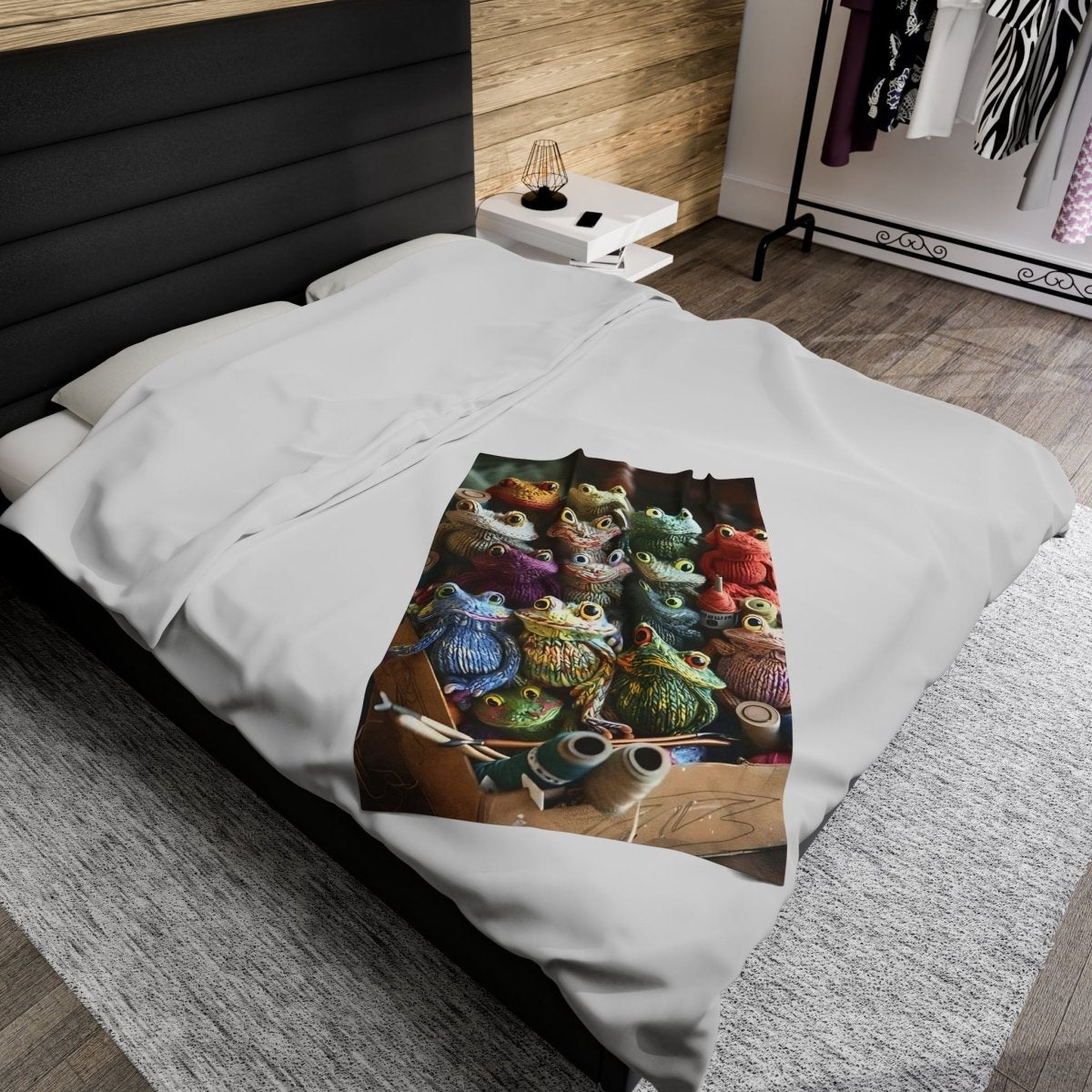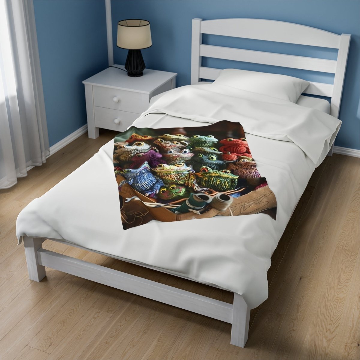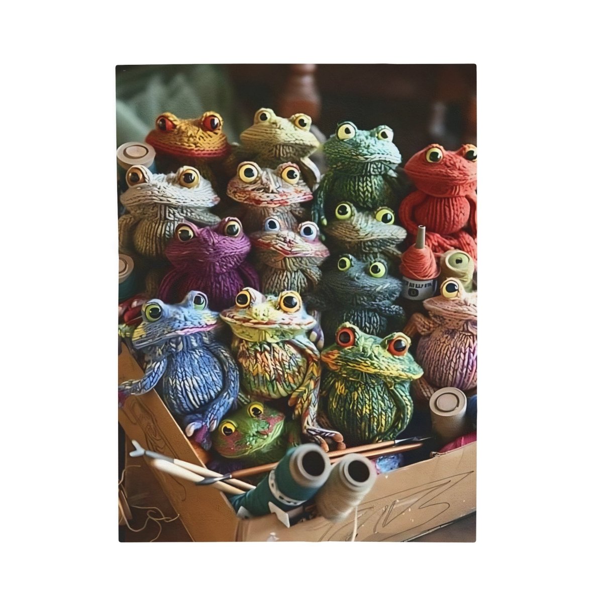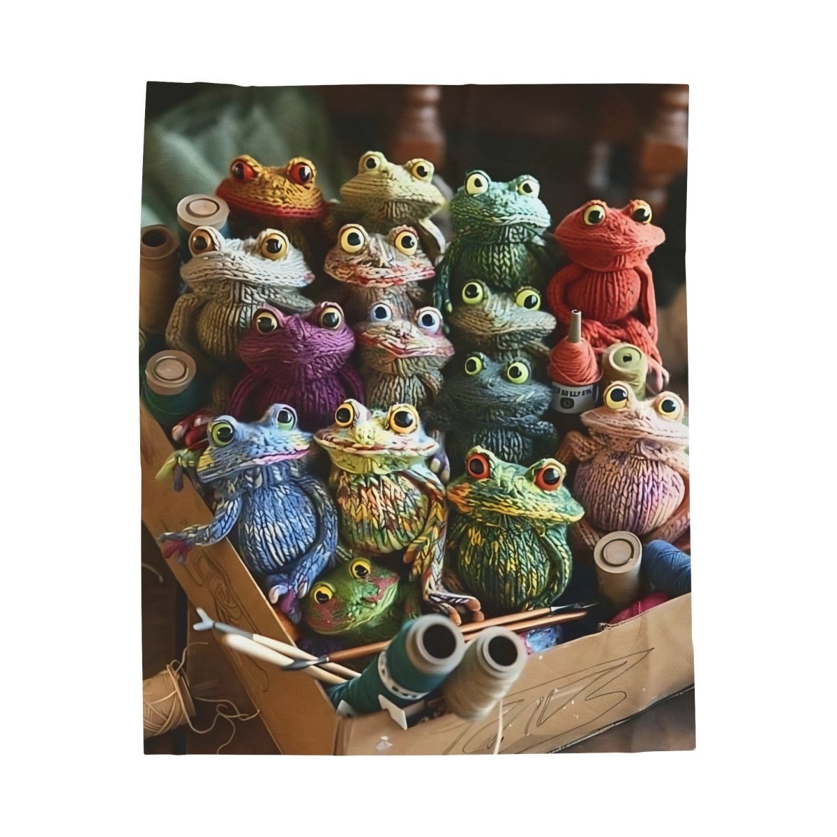 This velveteen plush blanket featuring crochet frogs is perfect for cozying up on chilly nights or adding a whimsical touch to your home decor. It's ideal for frog enthusiasts, nature lovers, or anyone looking to add a playful touch to their living space. Great for gifting on birthdays, Easter, or just because!
