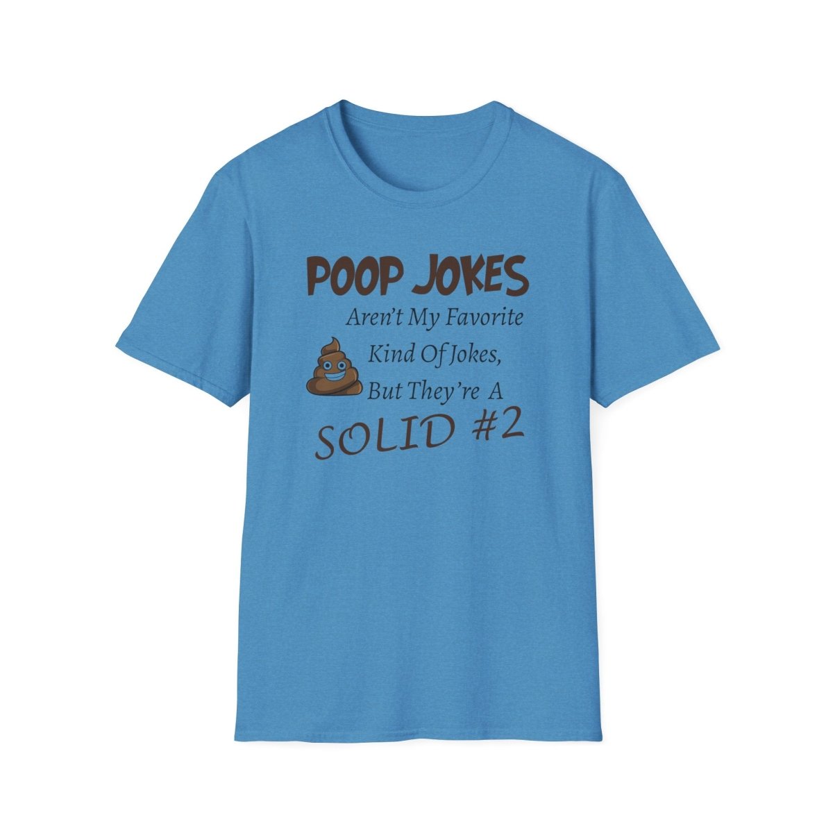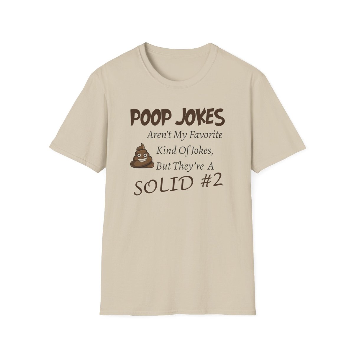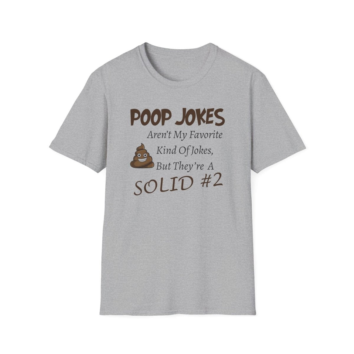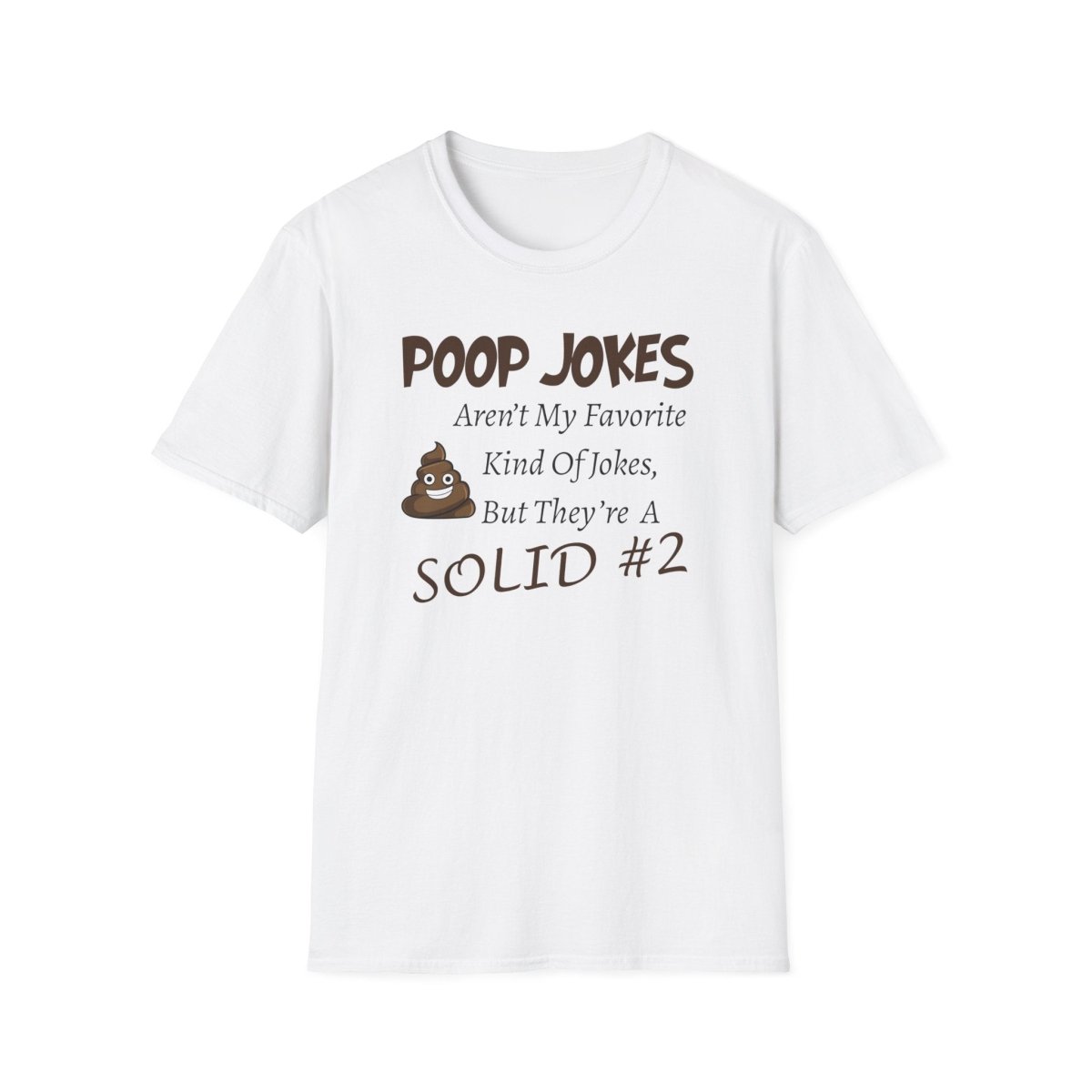 This unisex softstyle T-Shirt features a quirky design that says 'Poop Jokes aren't my favorite kind of jokes, But they're a close #2'. It is made from 100% ring-spun cotton, ensuring durability and smoothness perfect for printing. The classic fit and crew neckline make it versatile for any occasion.