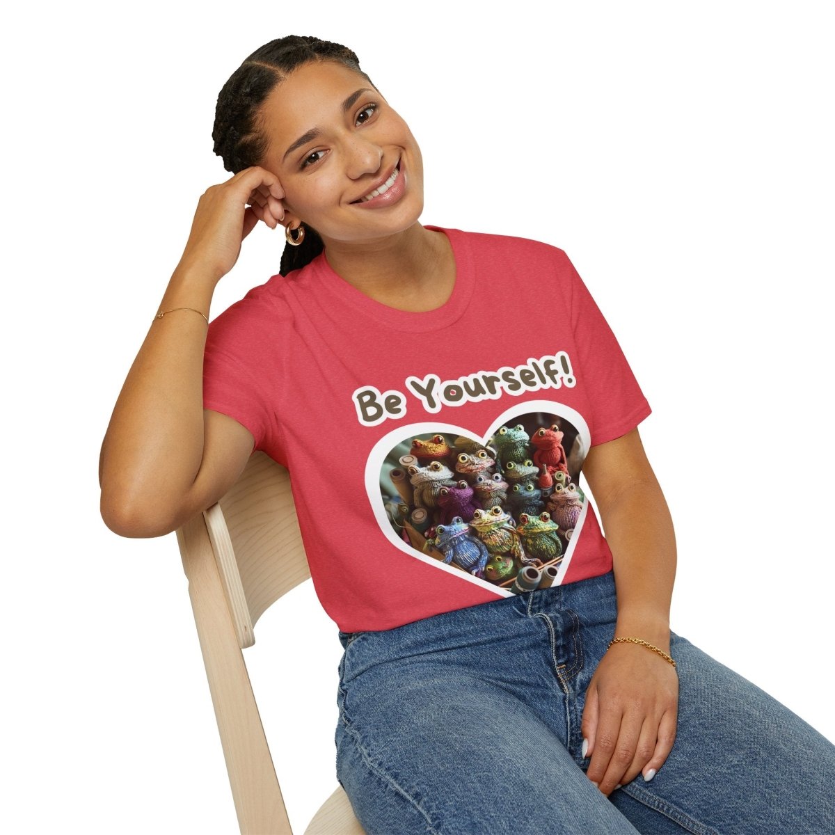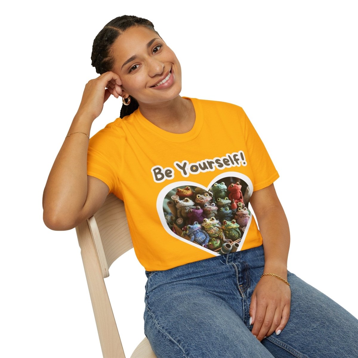 A funny quote T-Shirt that encourages you to Be Yourself, perfect for those looking to add a bit of humor and positivity to their wardrobe. This unisex softstyle T-Shirt is made from 100% ring-spun cotton, providing a lightweight and comfortable feel. The classic fit and crew neckline make it versatile for any occasion, whether formal or casual. It is ideal for adults and would make a great gift for birthdays, holidays, or just to spread some joy.
