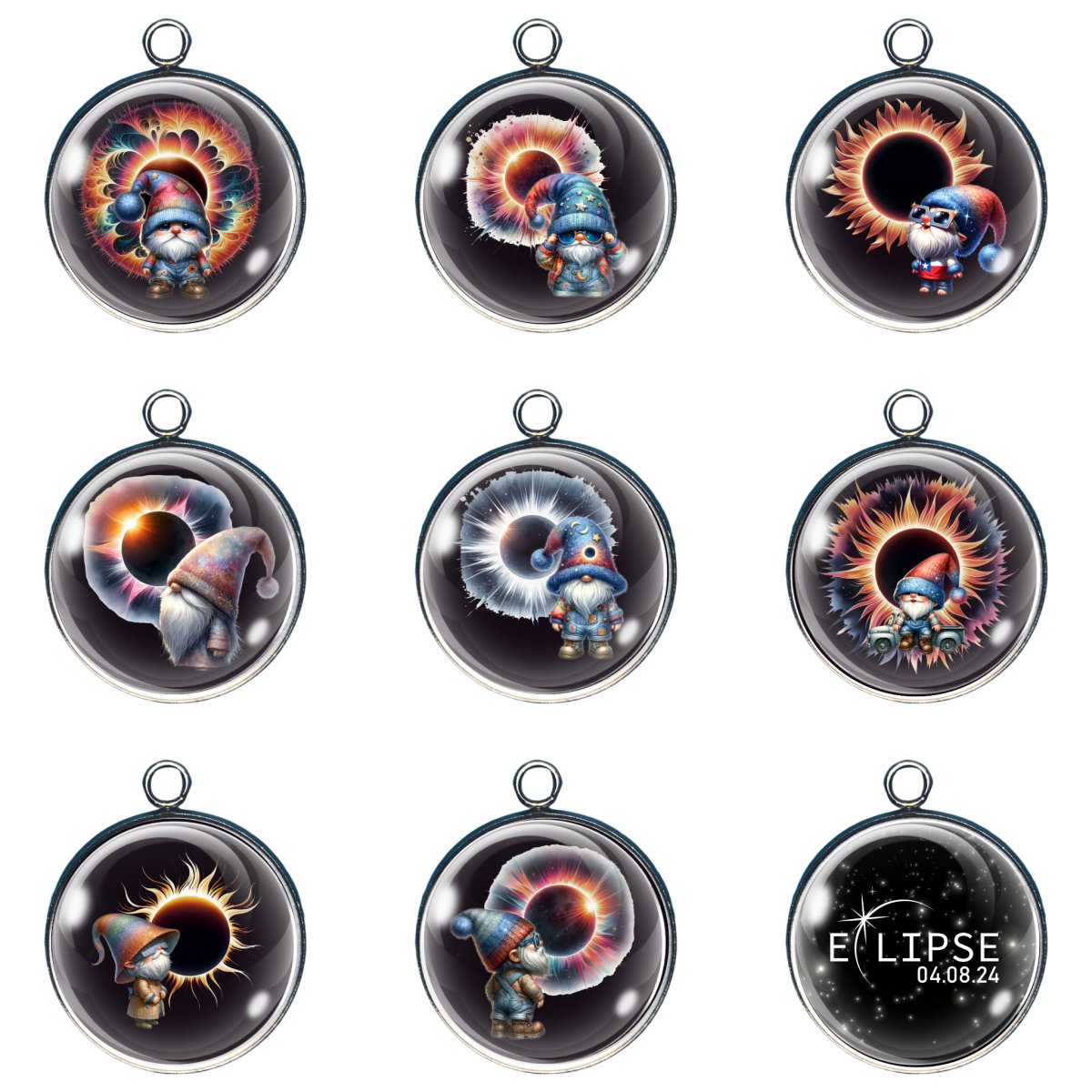Gnome Eclipse Glass Cabochon Charms, Jewelry Making Charms
