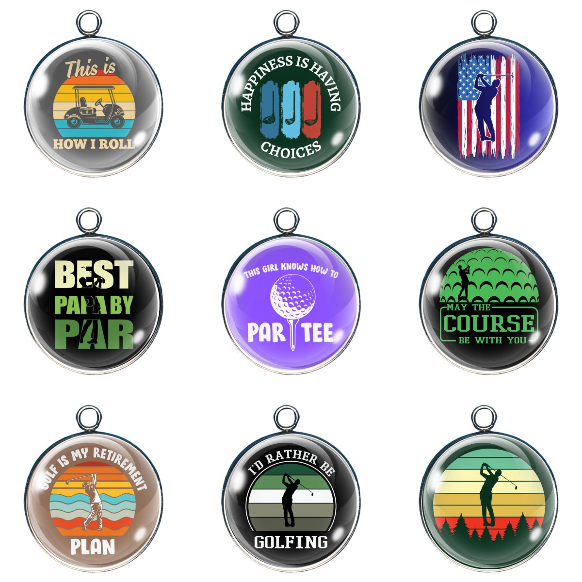 Elevate your golf accessories with our stunning glass cabochon charms. These unique charms add a touch of elegance to any golf bag or keychain. With a durable design and vibrant colors, they are sure to make a statement on the course. Perfect for any golf enthusiast!