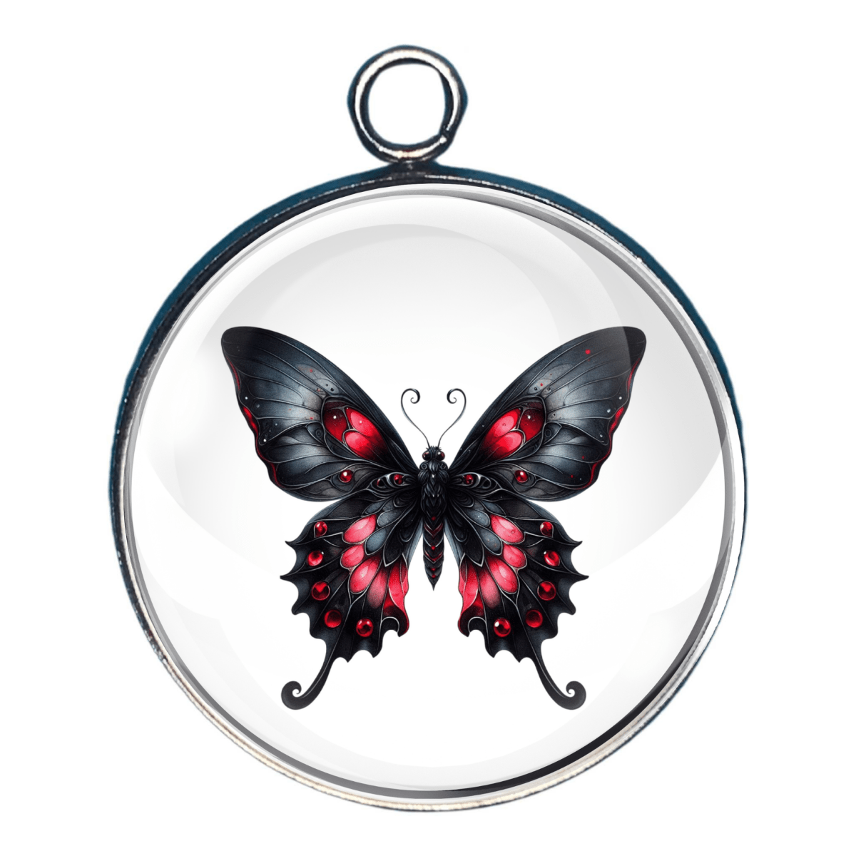 These are glass cabochon charms set into stainless steel, Silver-tone, or gold-tone base.