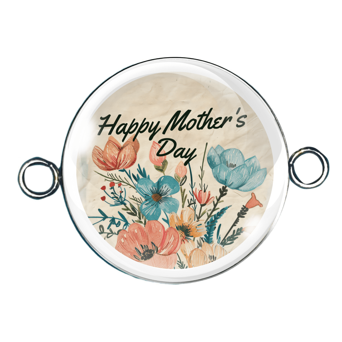 Celebrate Mother's Day with our handmade double eyelet charms! Made with crystal clear glass cabochons and a never-fade stainless steel base, these charms are perfect for creating unique jewelry pieces or adding a touch of charm to any craft project. Show your appreciation for mom with these special, one-of-a-kind charms!