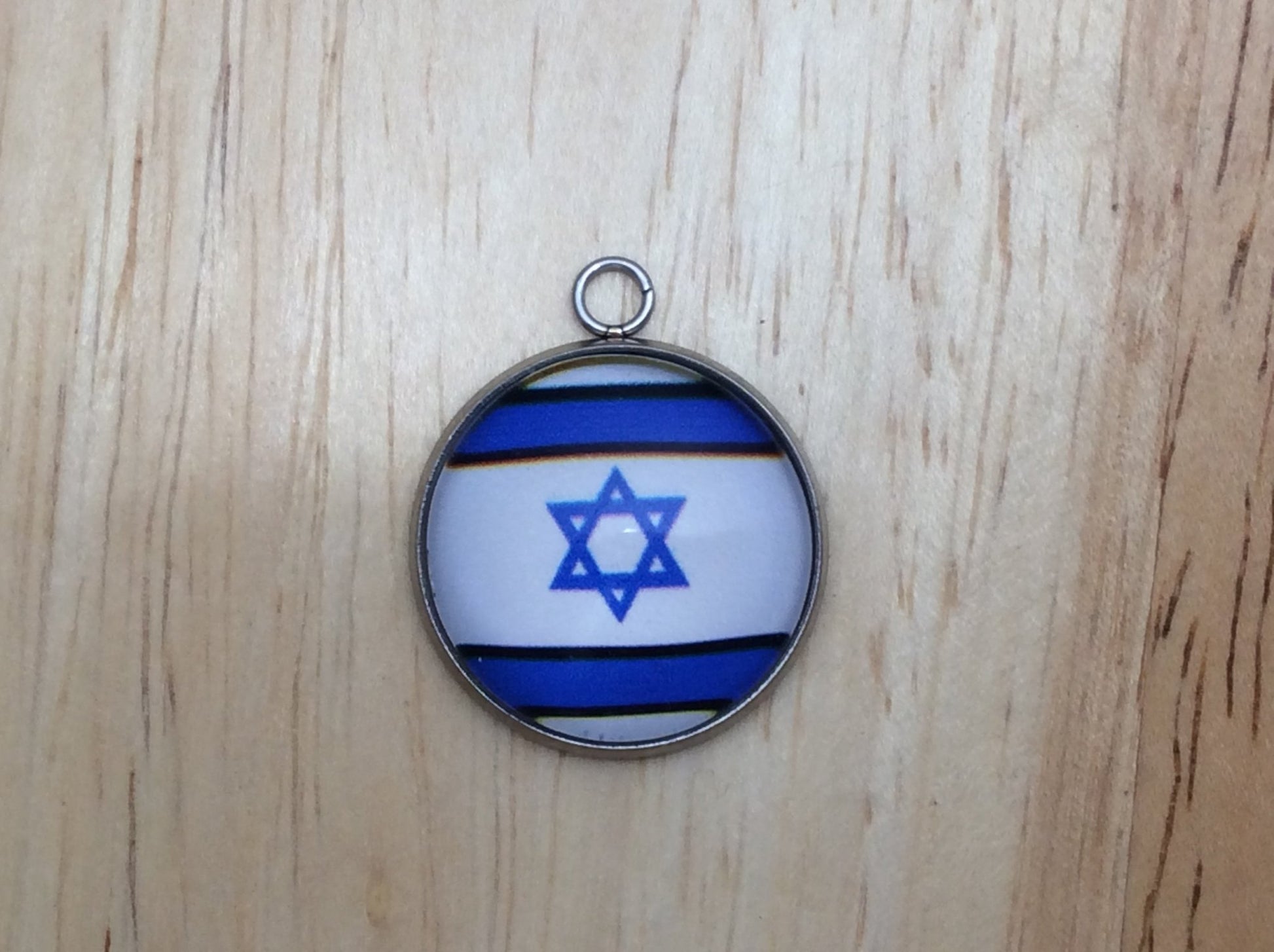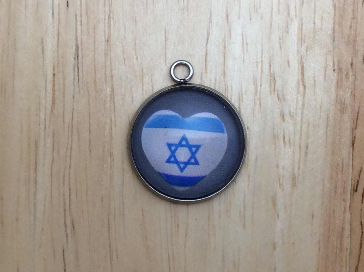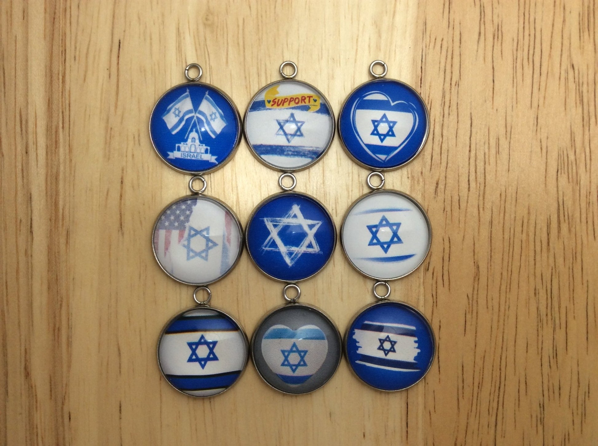 At I Like Worms, We make our Israeli charms with glass cabochons and they are set in a stainless steel base. We make these Charms and pendants in three different sizes.