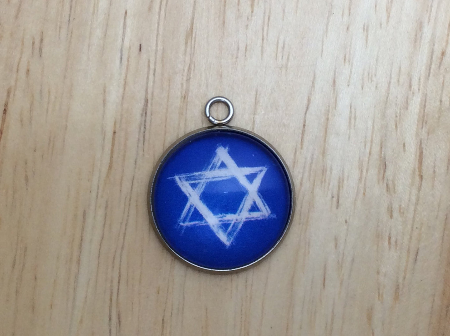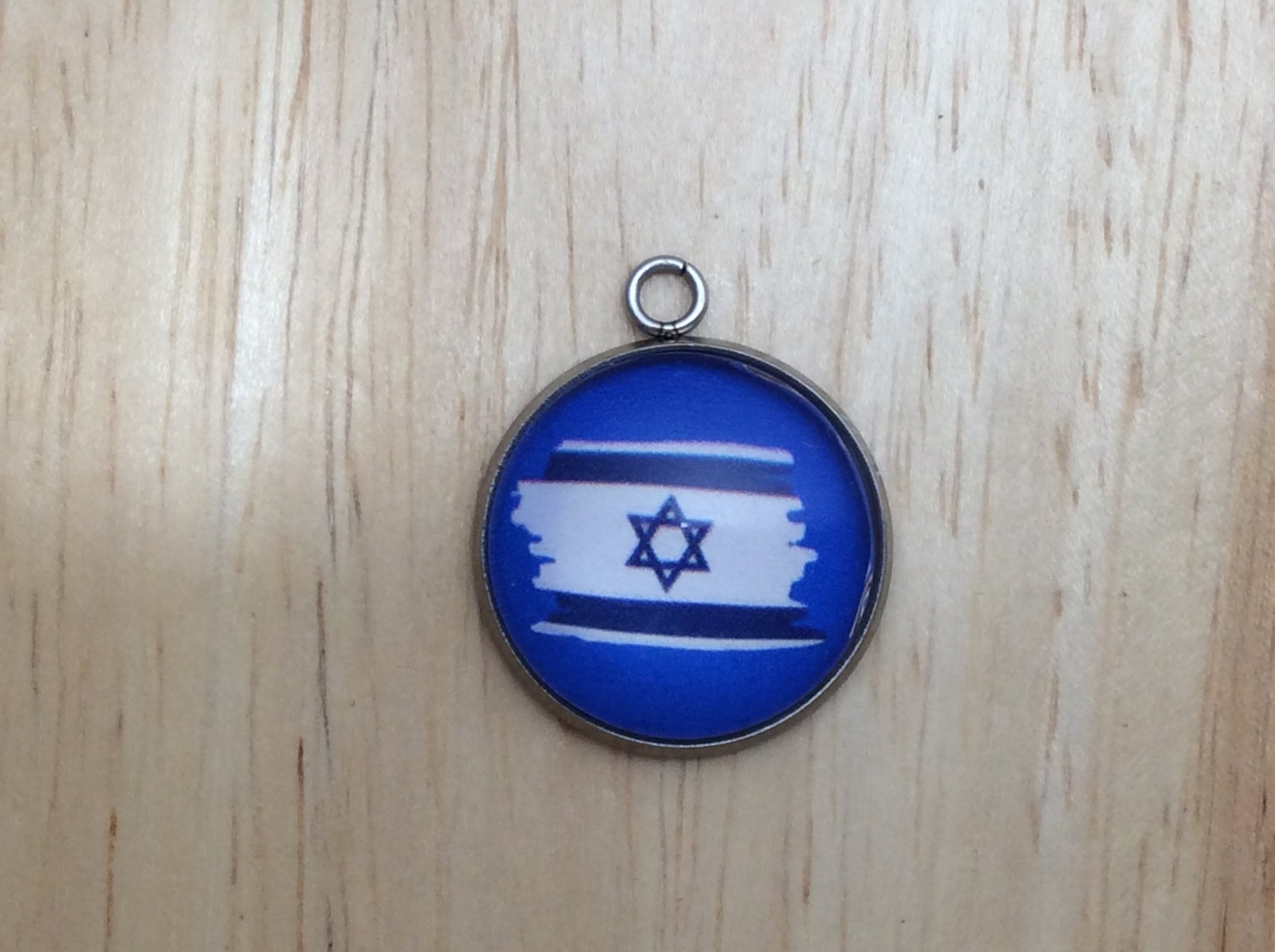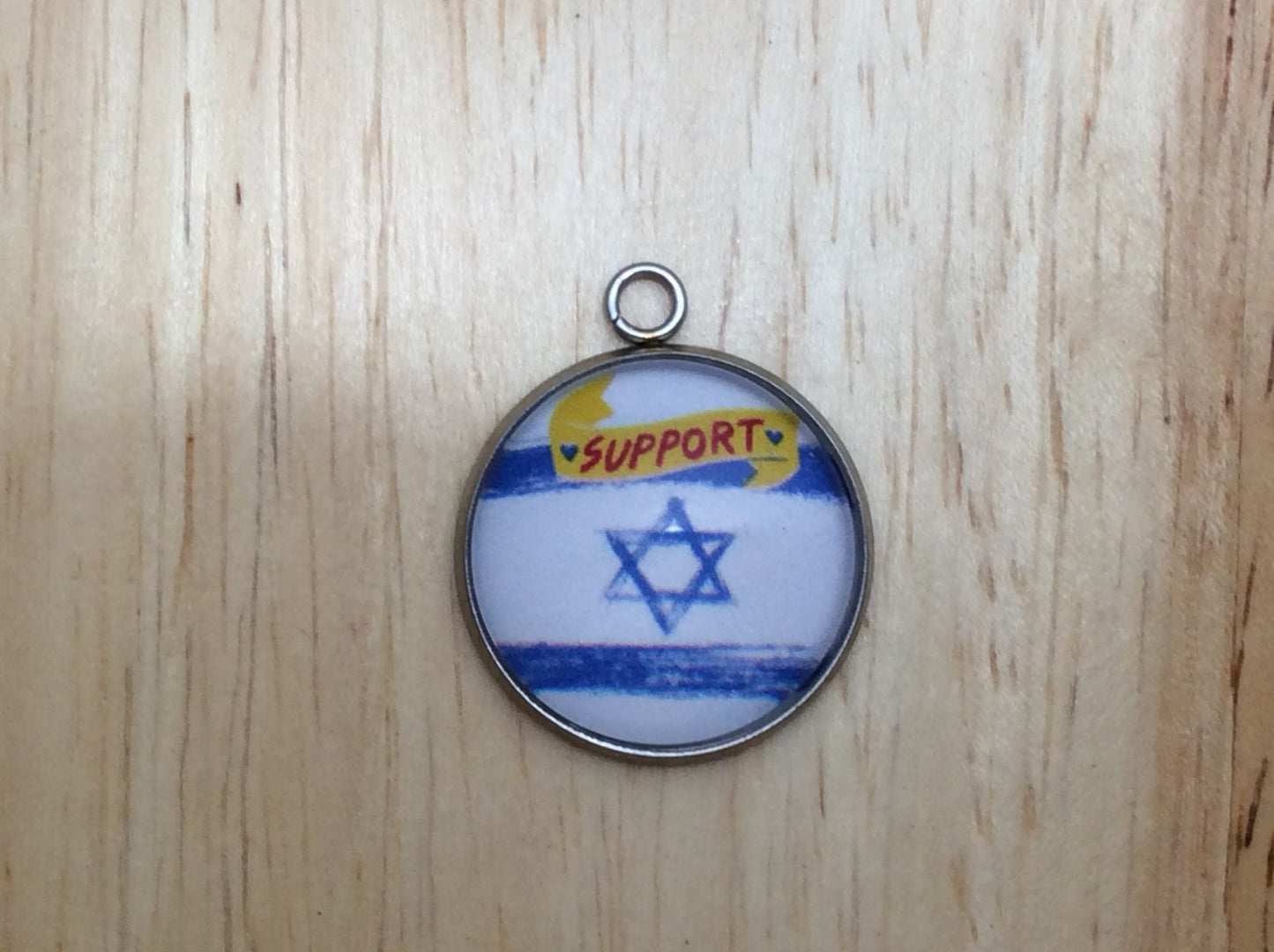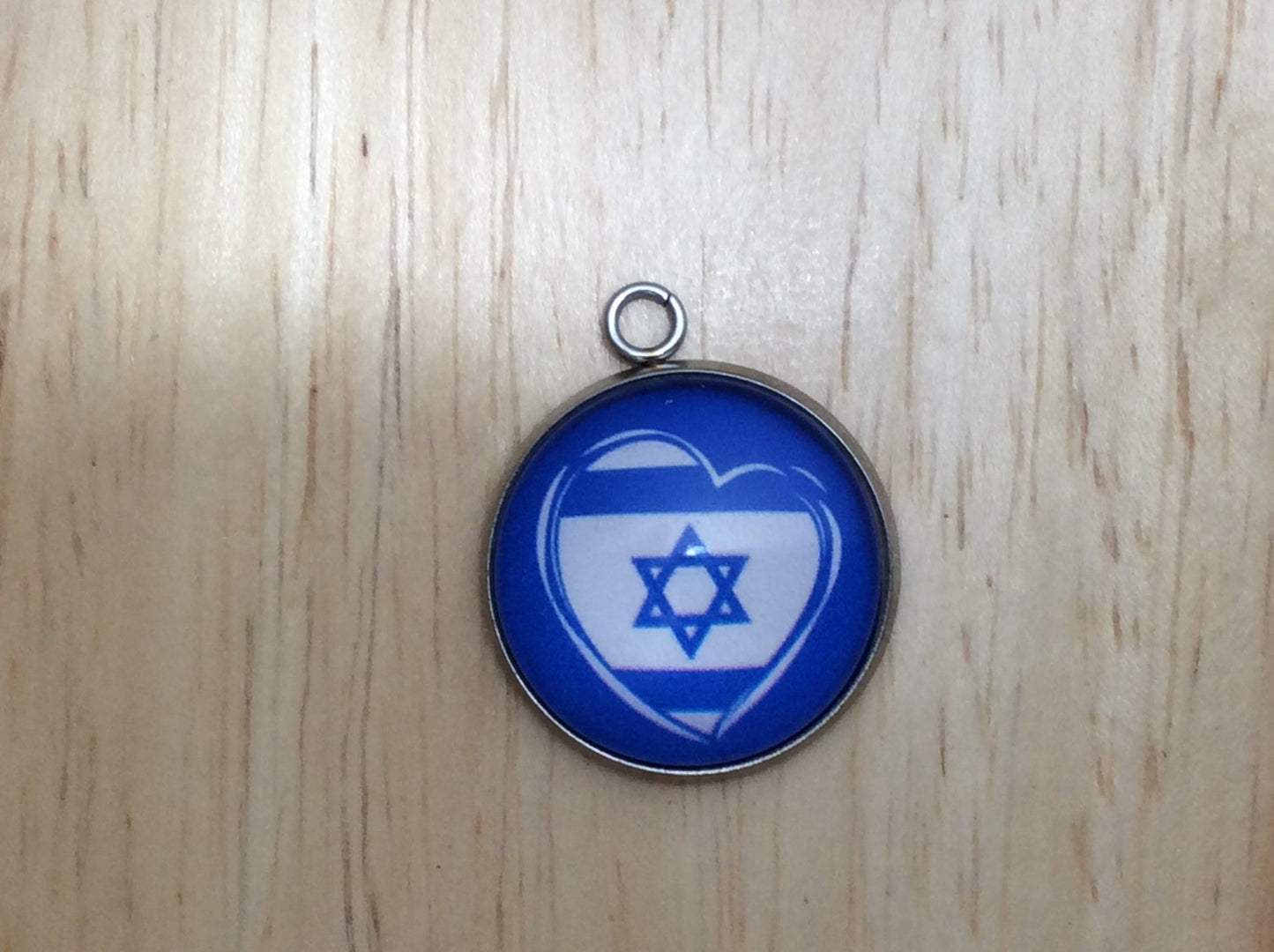 At I Like Worms, We make our Israeli charms with glass cabochons and they are set in a stainless steel base. We make these Charms and pendants in three different sizes.