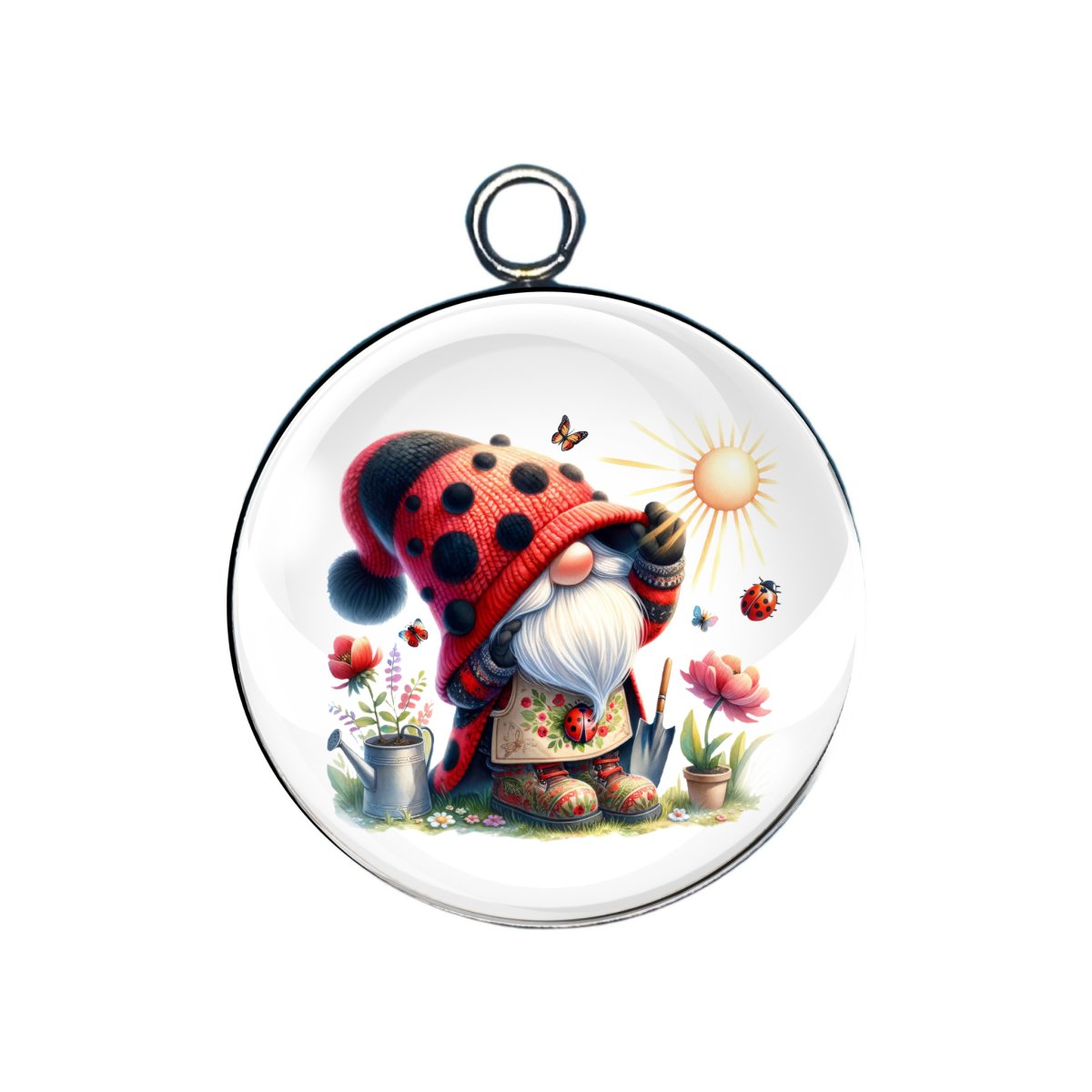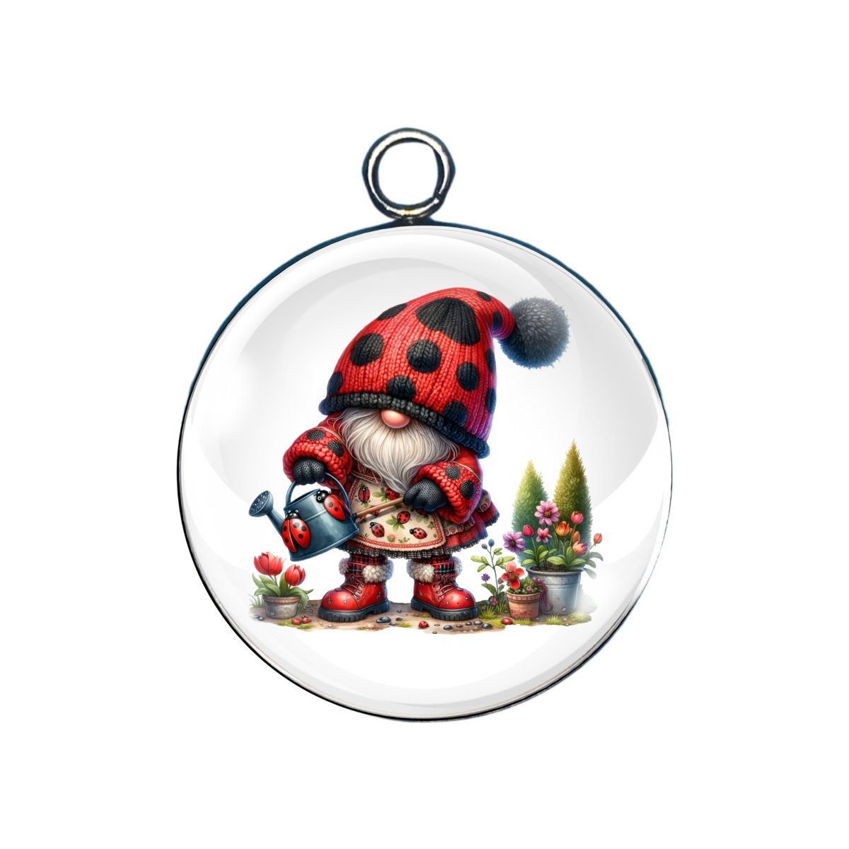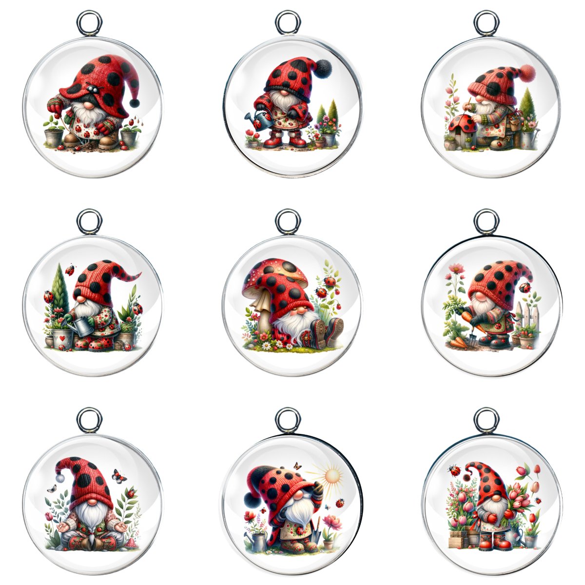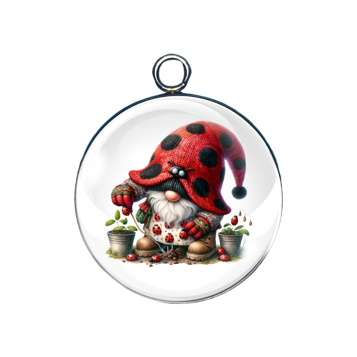 At I Like Worms, We make our Ladybug Gnome charms with glass cabochons and they are set in a stainless steel base. We make these Charms and pendants in three different sizes.