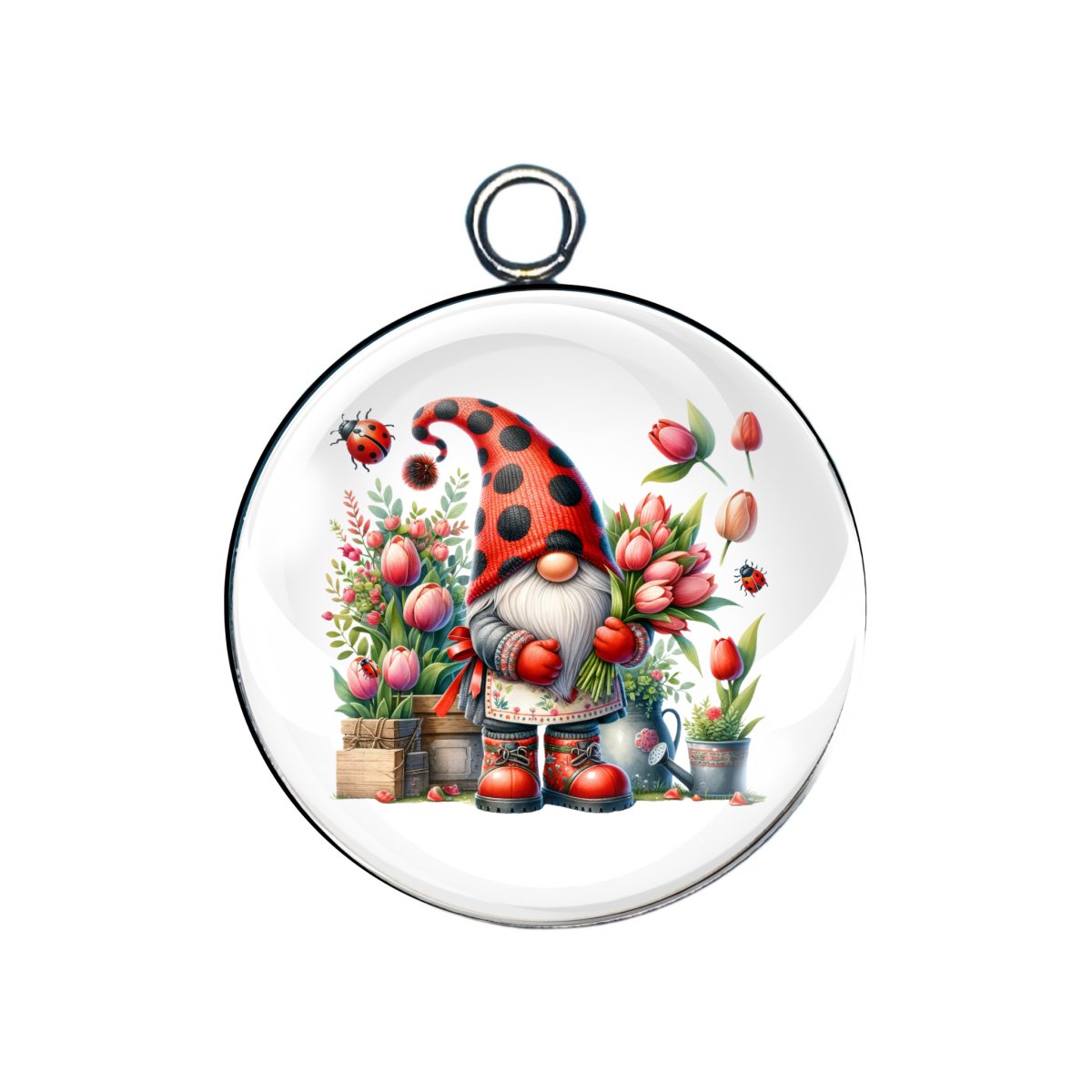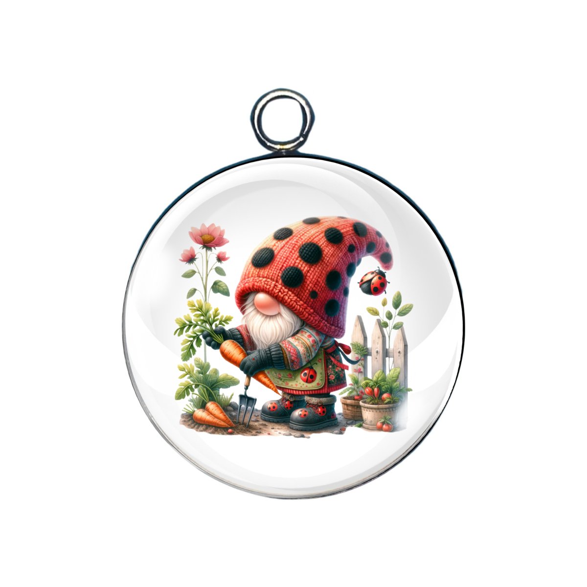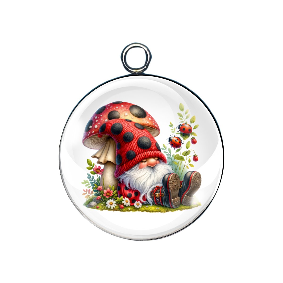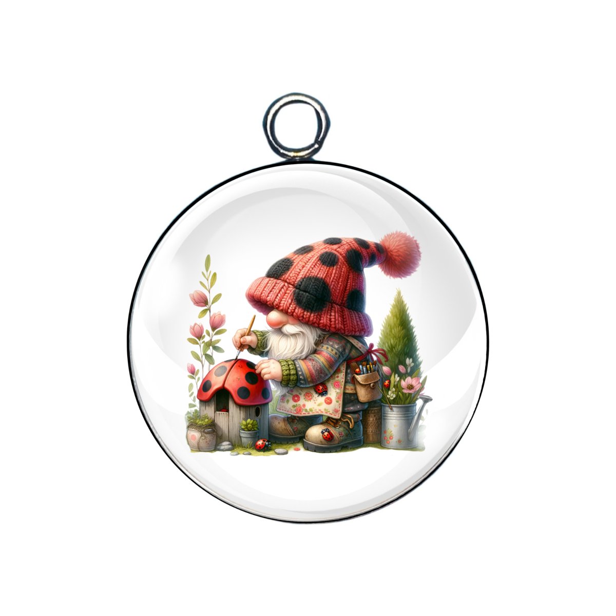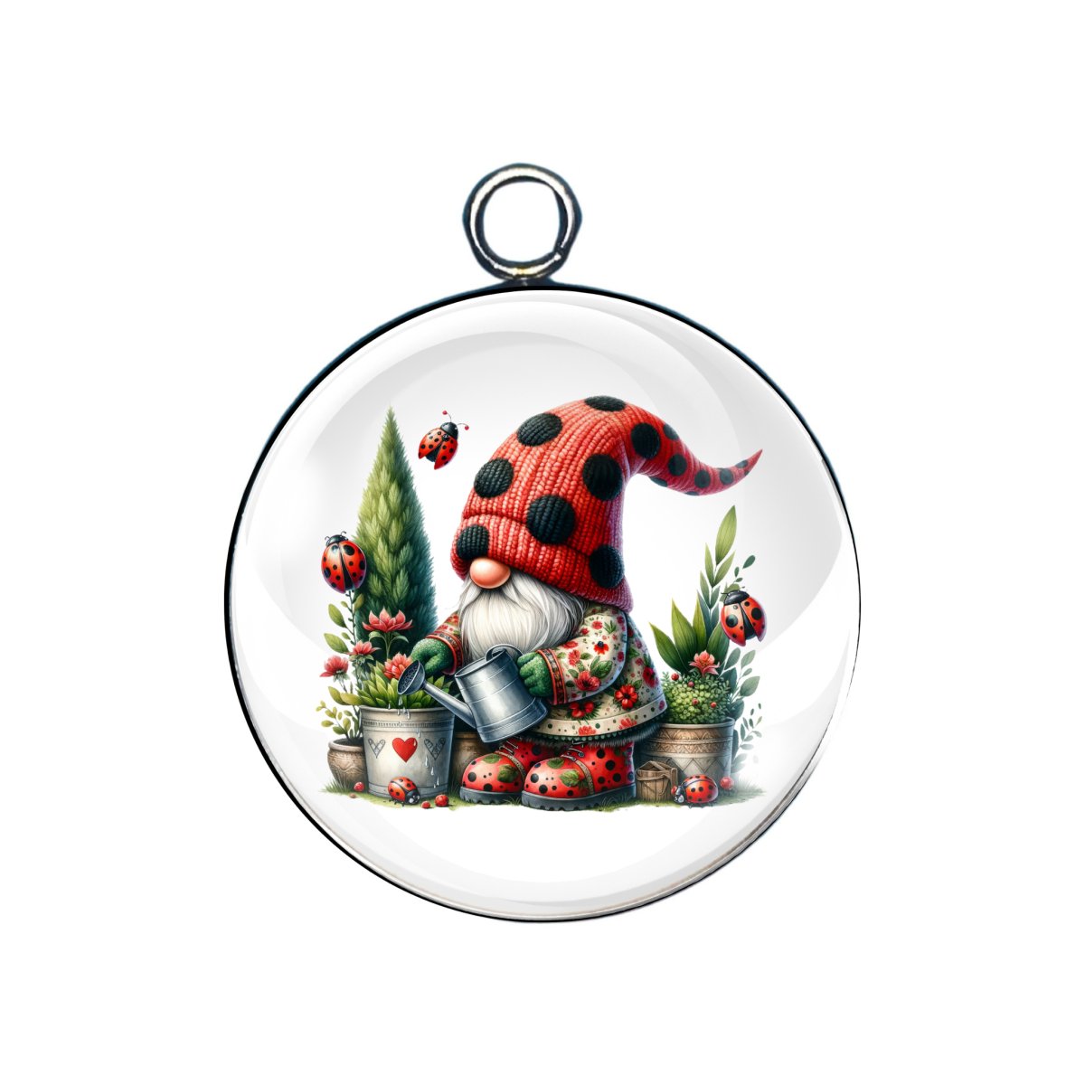 At I Like Worms, We make our Ladybug Gnome charms with glass cabochons and they are set in a stainless steel base. We make these Charms and pendants in three different sizes.