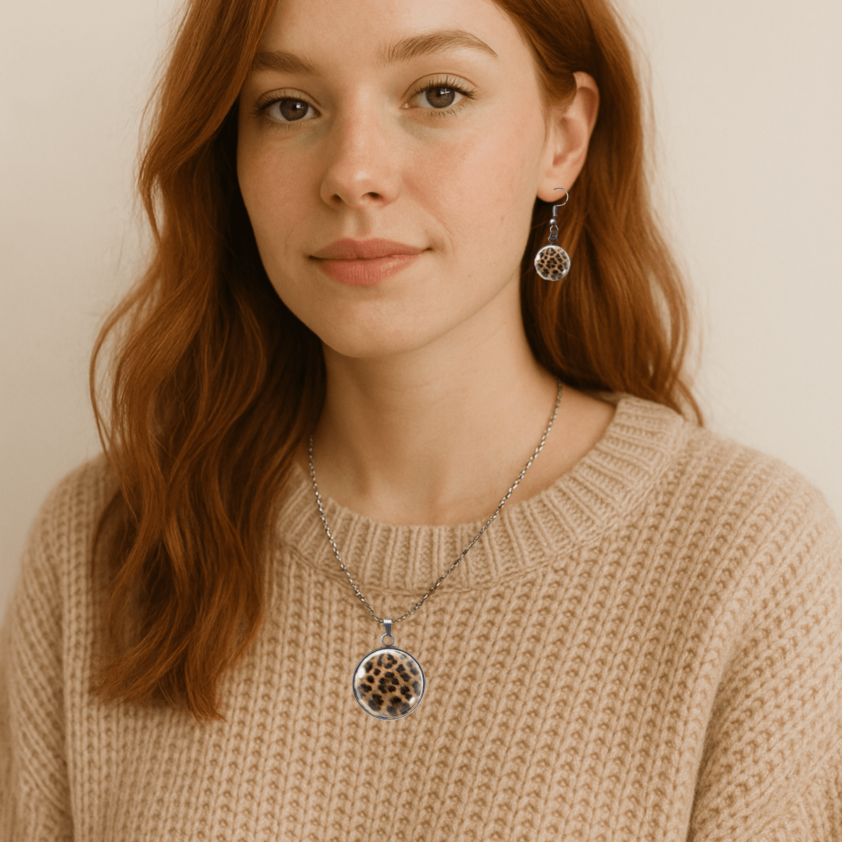 Unleash your wild side with this stunning Leopard Print Jewelry Set, perfect for any fashion-forward jewelry lover! Handmade with crystal-clear glass cabochons and never-fade stainless steel, this set is both durable and eye-catching.