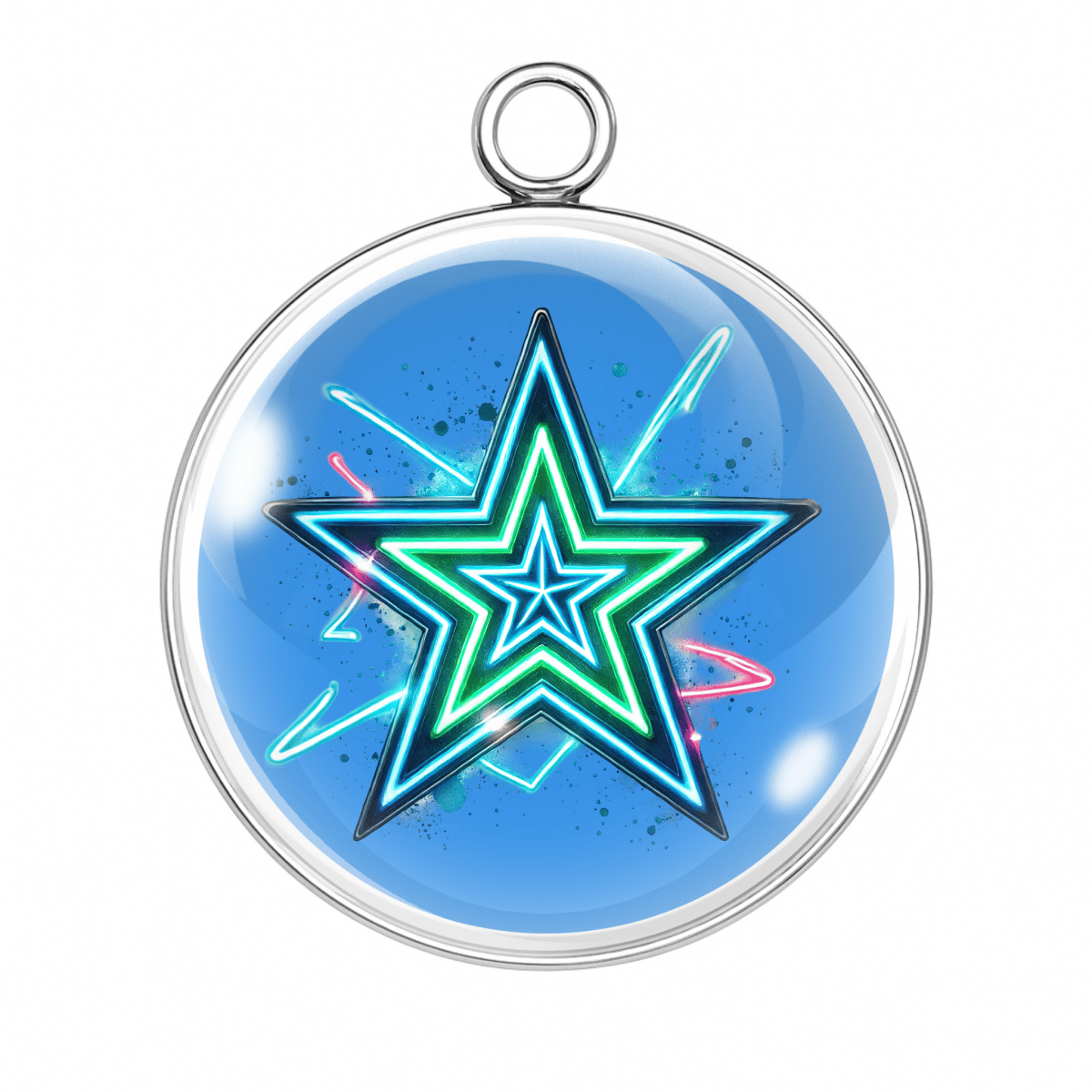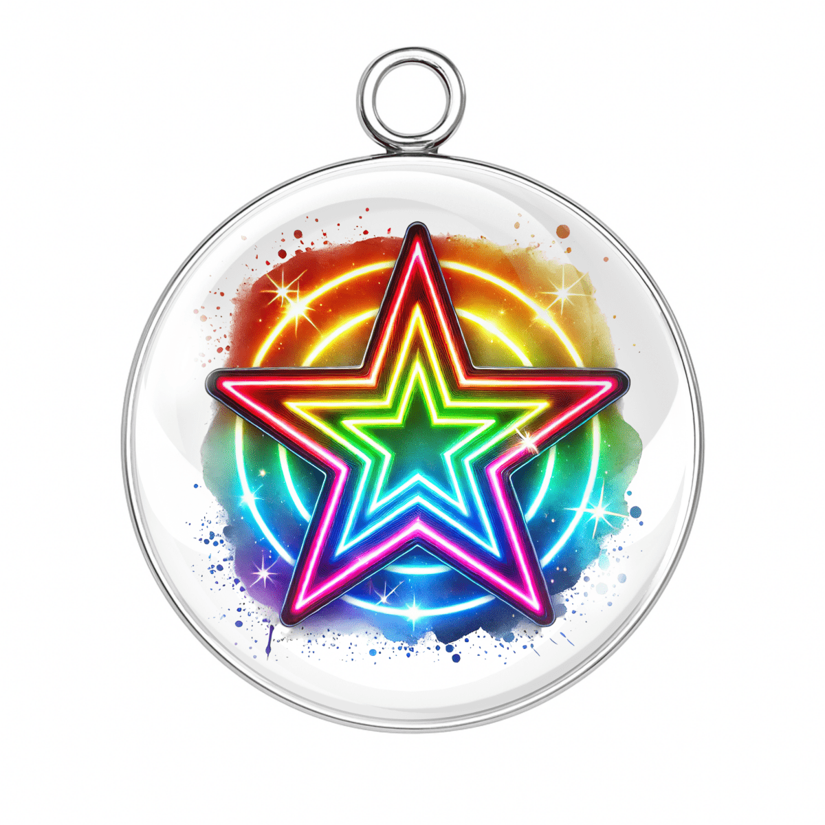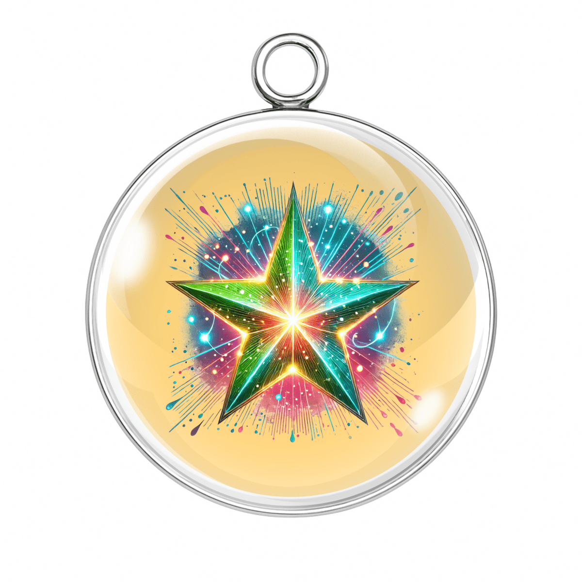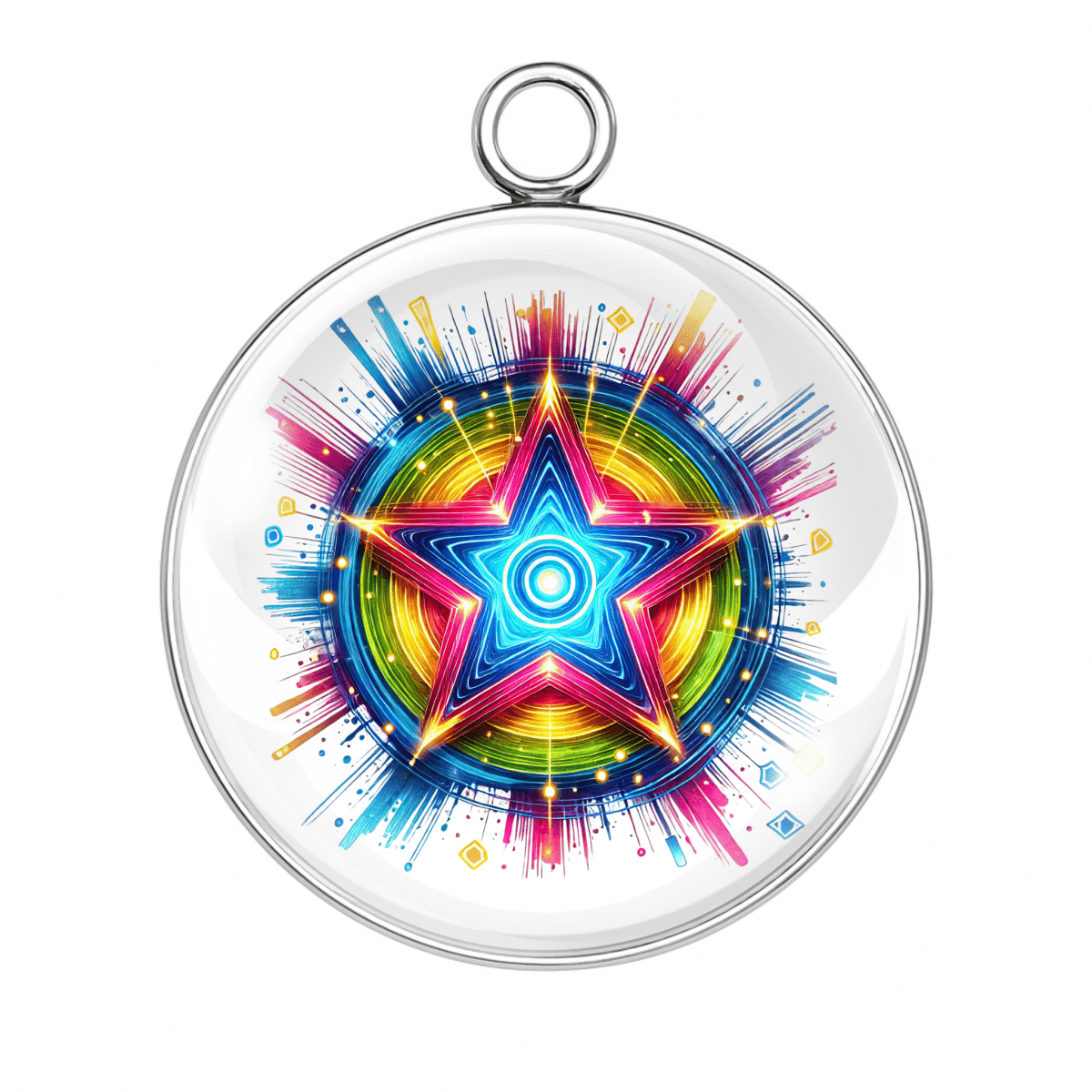 Our handmade glass cabochon charms feature bright, trippy, and totally unforgettable star designs that burst with color and character.