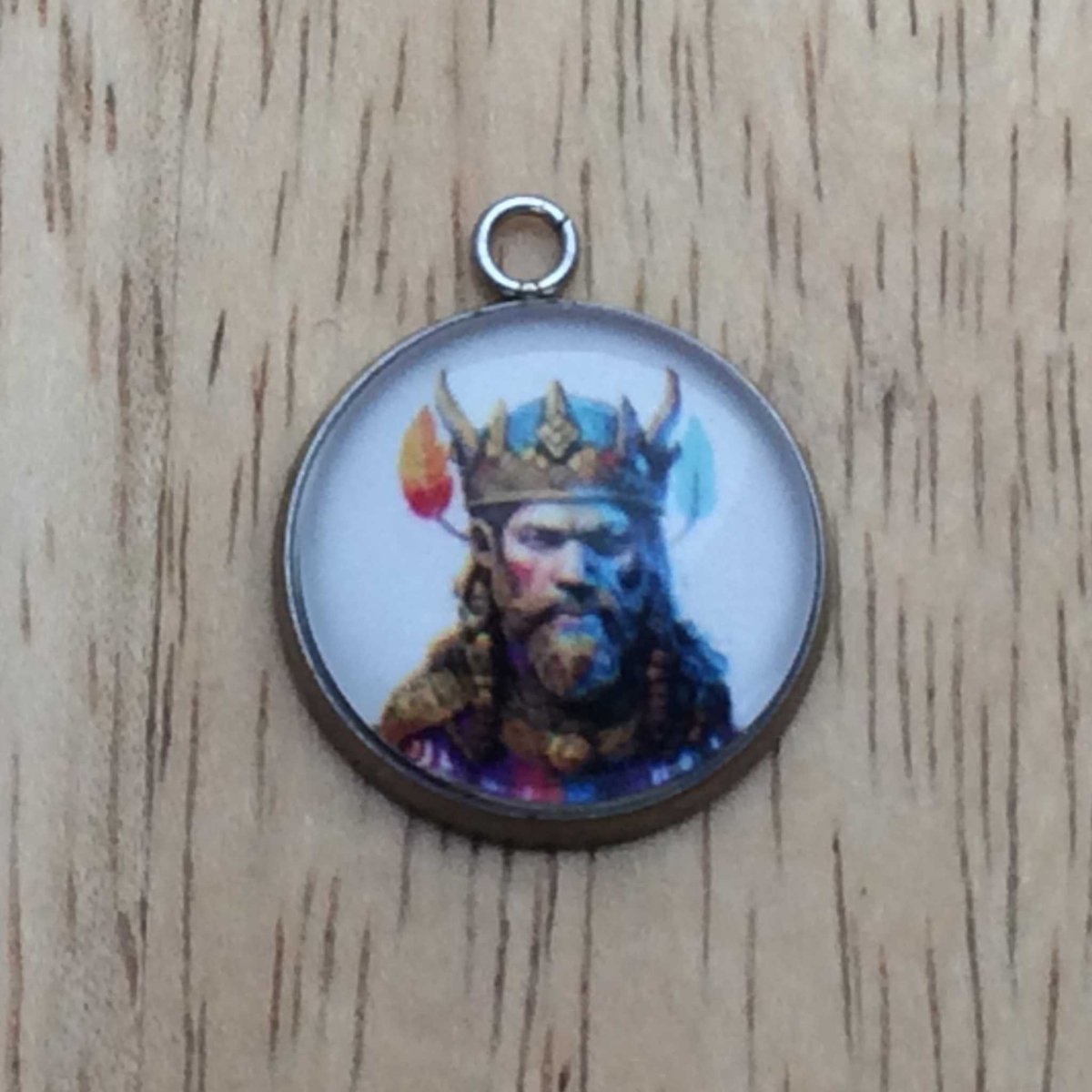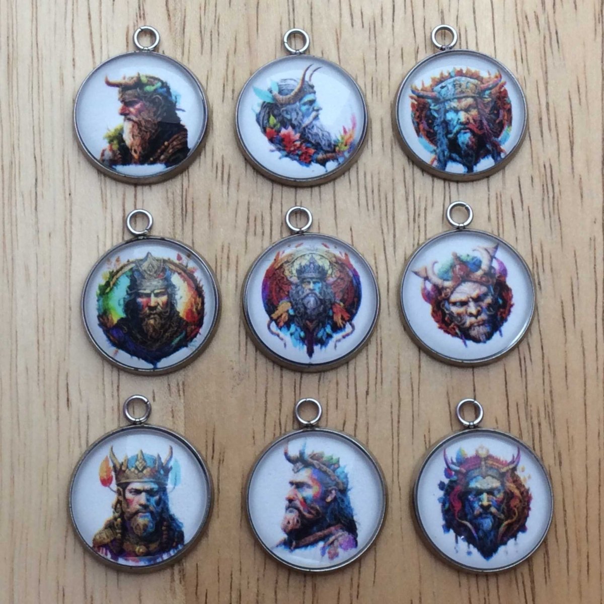 Discover the power of wisdom with Odin, the god of wisdom, in these handmade glass cabochon charms. Each charm features a crystal clear glass cabochon and a strong stainless steel base, making it both durable and visually stunning. Embrace the wisdom and strength of Odin with these exquisite charms.