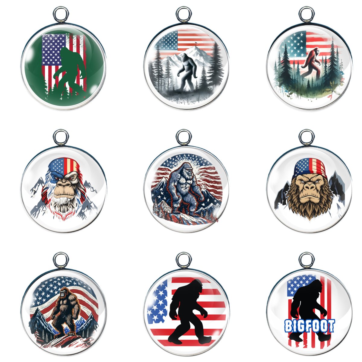 Show off your love for your country and the elusive Bigfoot with our Patriotic Bigfoot Glass Cabochon Charms! Each charm features a vibrant, patriotic design encapsulated in glass for a unique and eye-catching look. Perfect for adding a touch of whimsy to your jewelry collection.