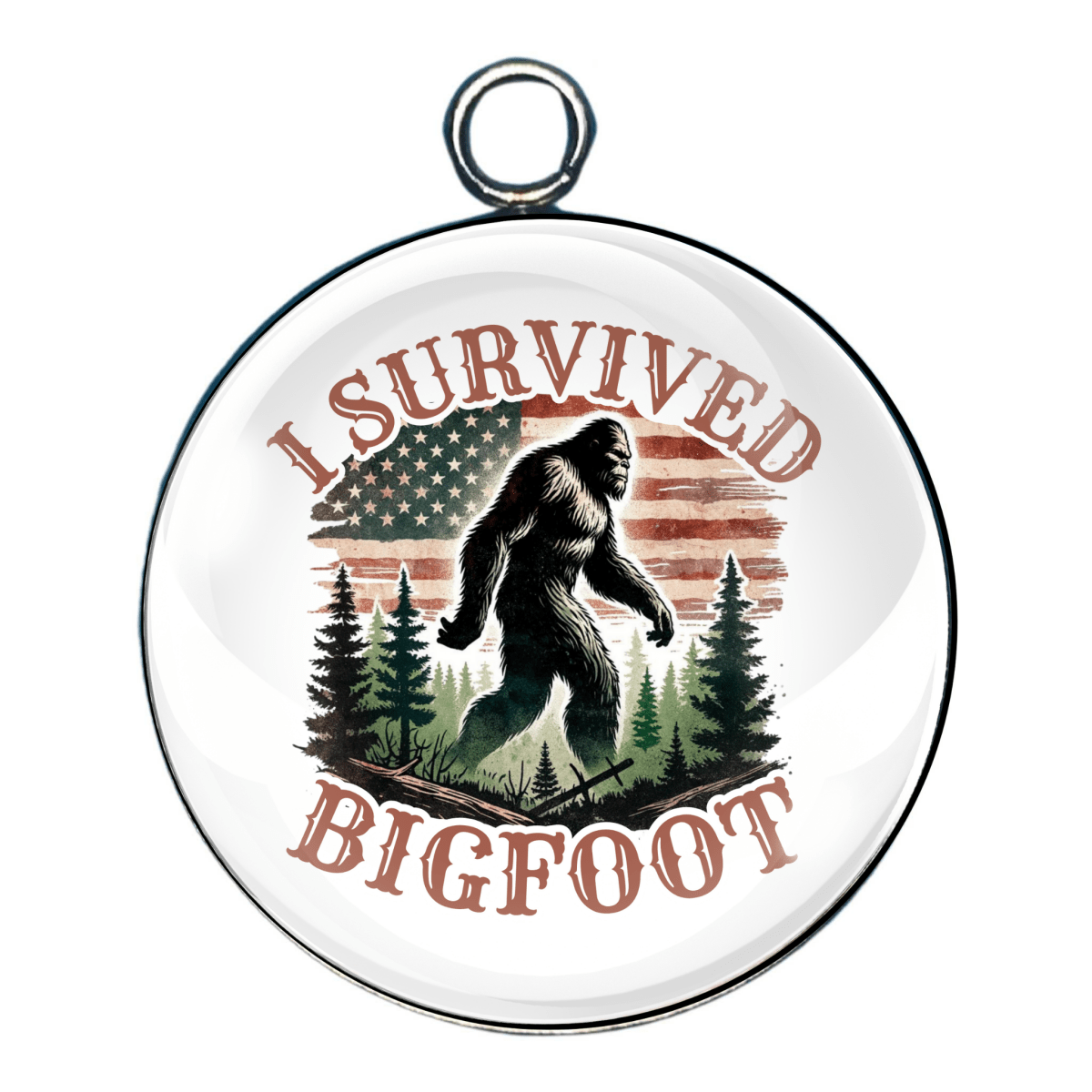 Add a bold and mythical touch to your next DIY project with our handcrafted Patriotic Bigfoot charms! Featuring a design of Bigfoot striding through the woods with an American flag backdrop, these eye-catching charms are made with crystal-clear photo glass cabochons and set in a durable, never-fade stainless steel base.