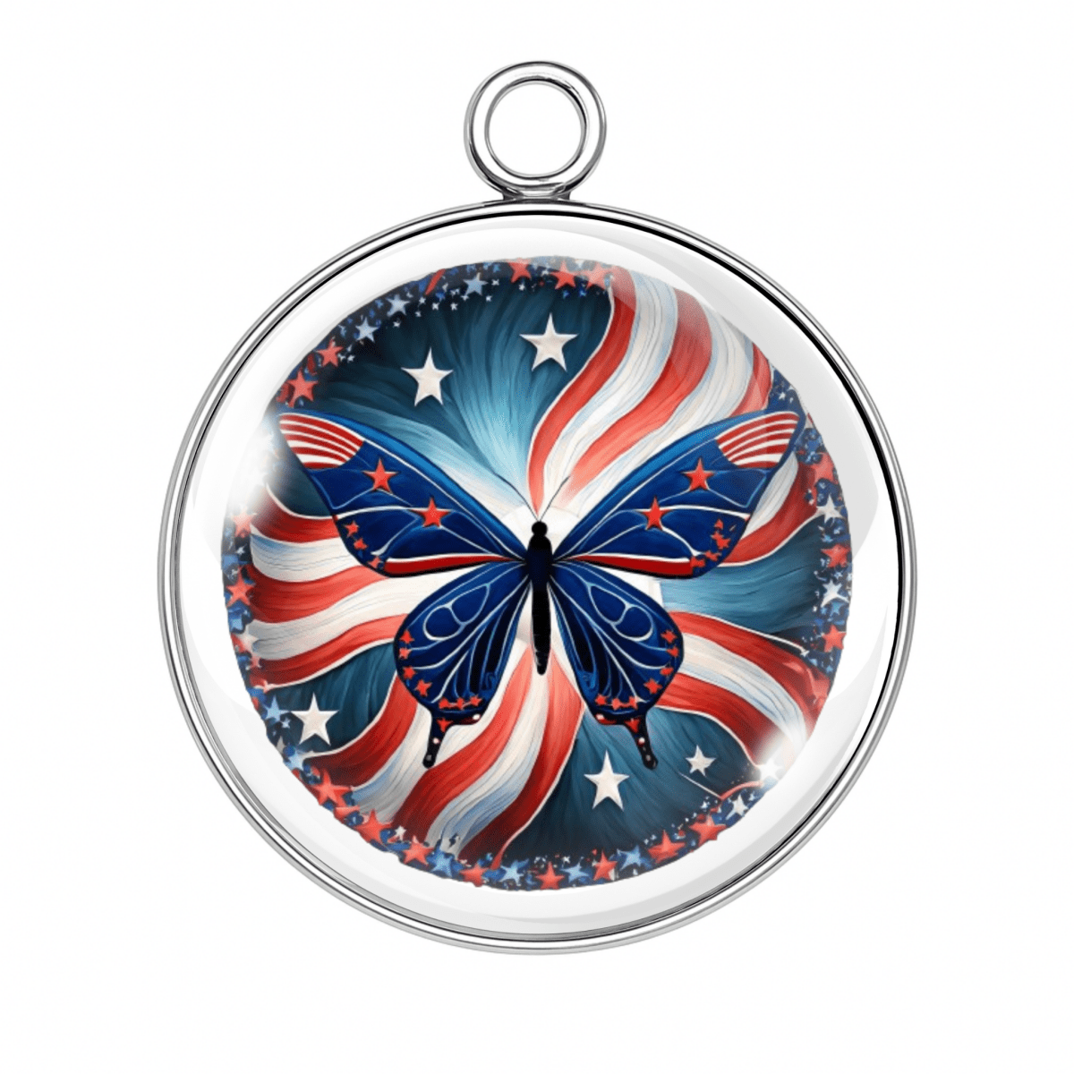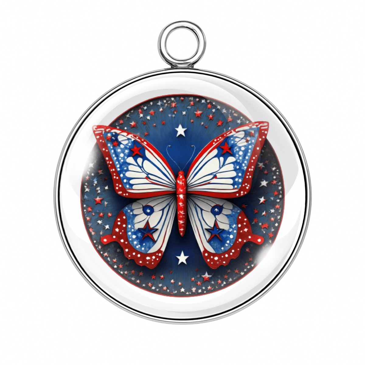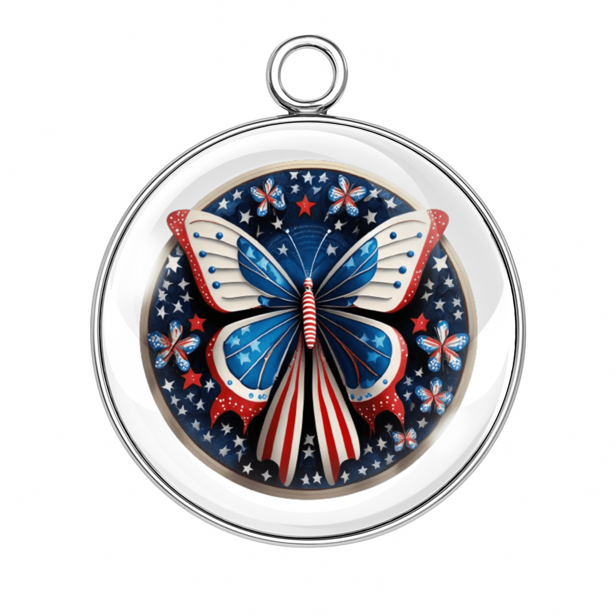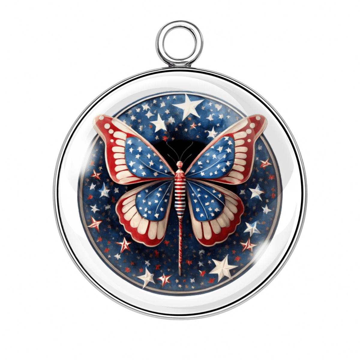 Let your crafts take flight with our Patriotic Butterfly Charms — each one fluttering with red, white, and blue beauty! Set beneath a crystal-clear glass dome and wrapped in stainless steel, these star-spangled butterfly designs are ready to celebrate the 4th of July, Memorial Day, Veterans Day, or just your love of America and glitter.