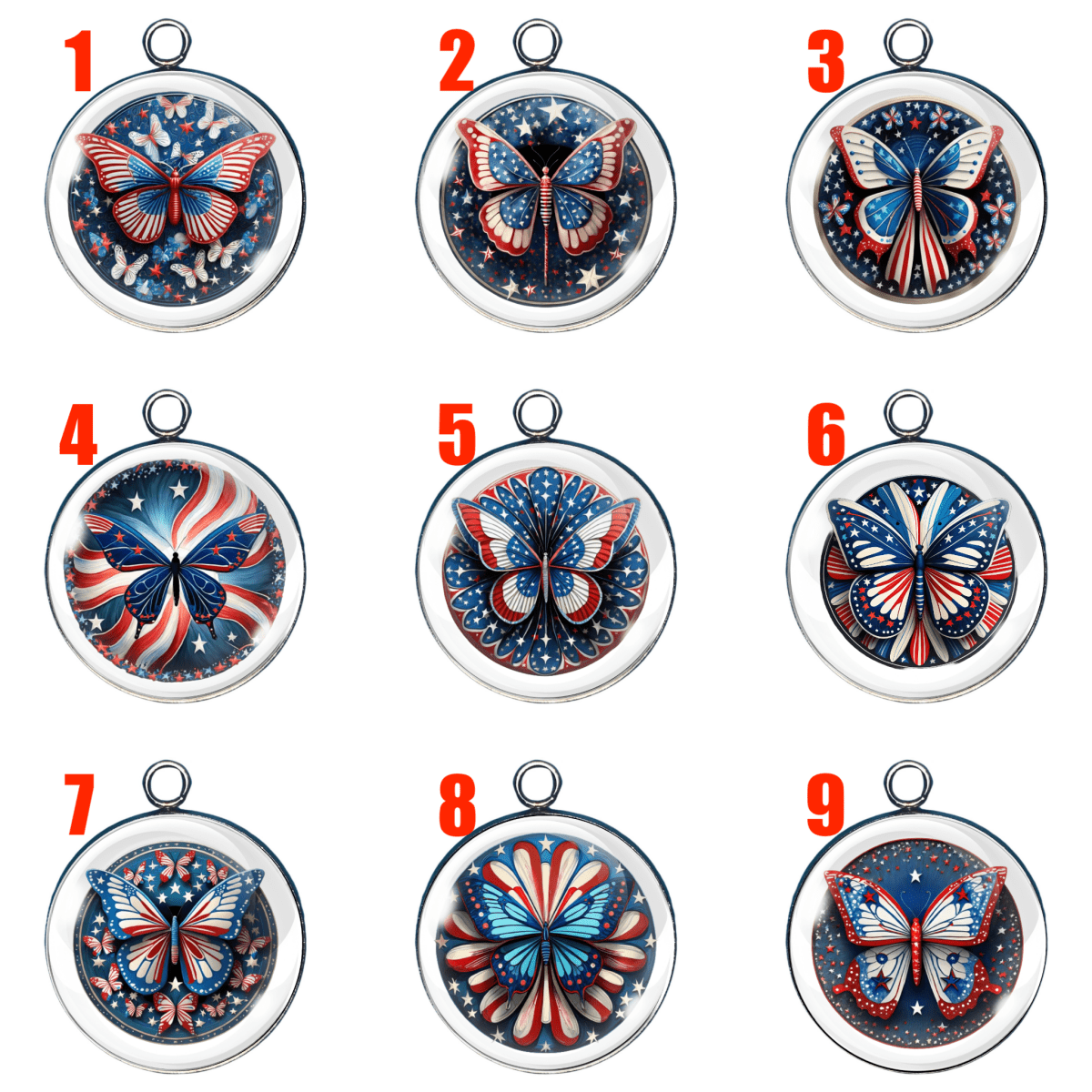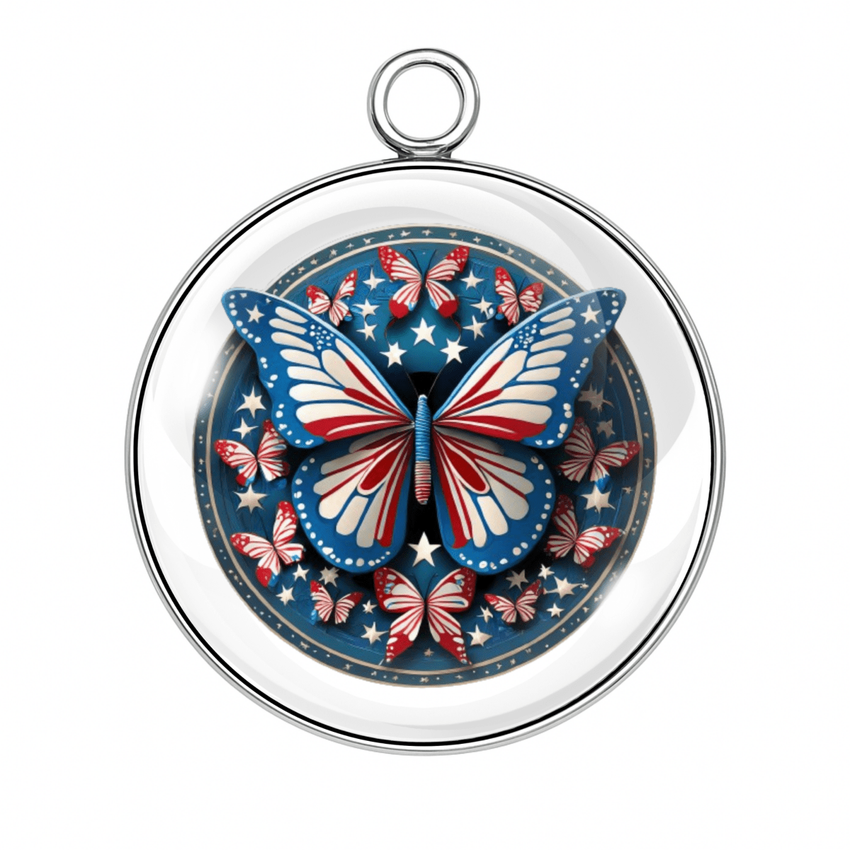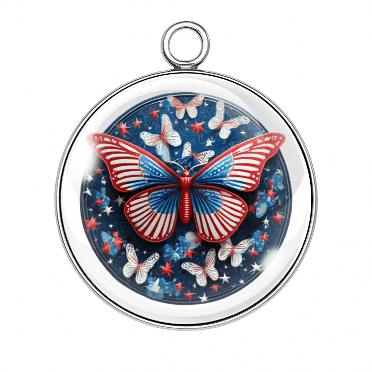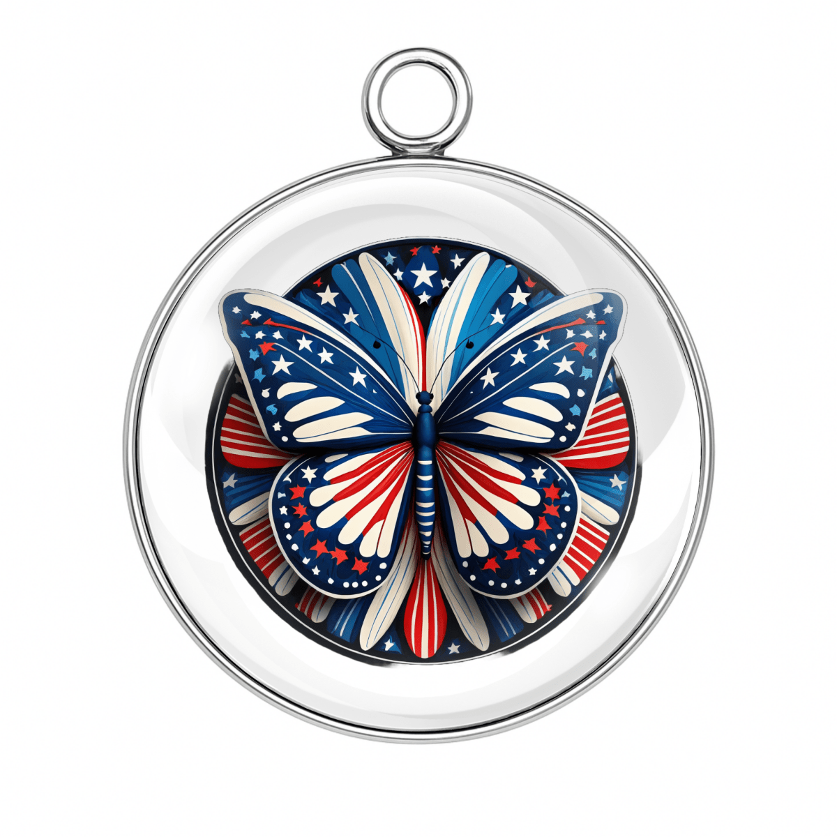 Let your crafts take flight with our Patriotic Butterfly Charms — each one fluttering with red, white, and blue beauty! Set beneath a crystal-clear glass dome and wrapped in stainless steel, these star-spangled butterfly designs are ready to celebrate the 4th of July, Memorial Day, Veterans Day, or just your love of America and glitter.