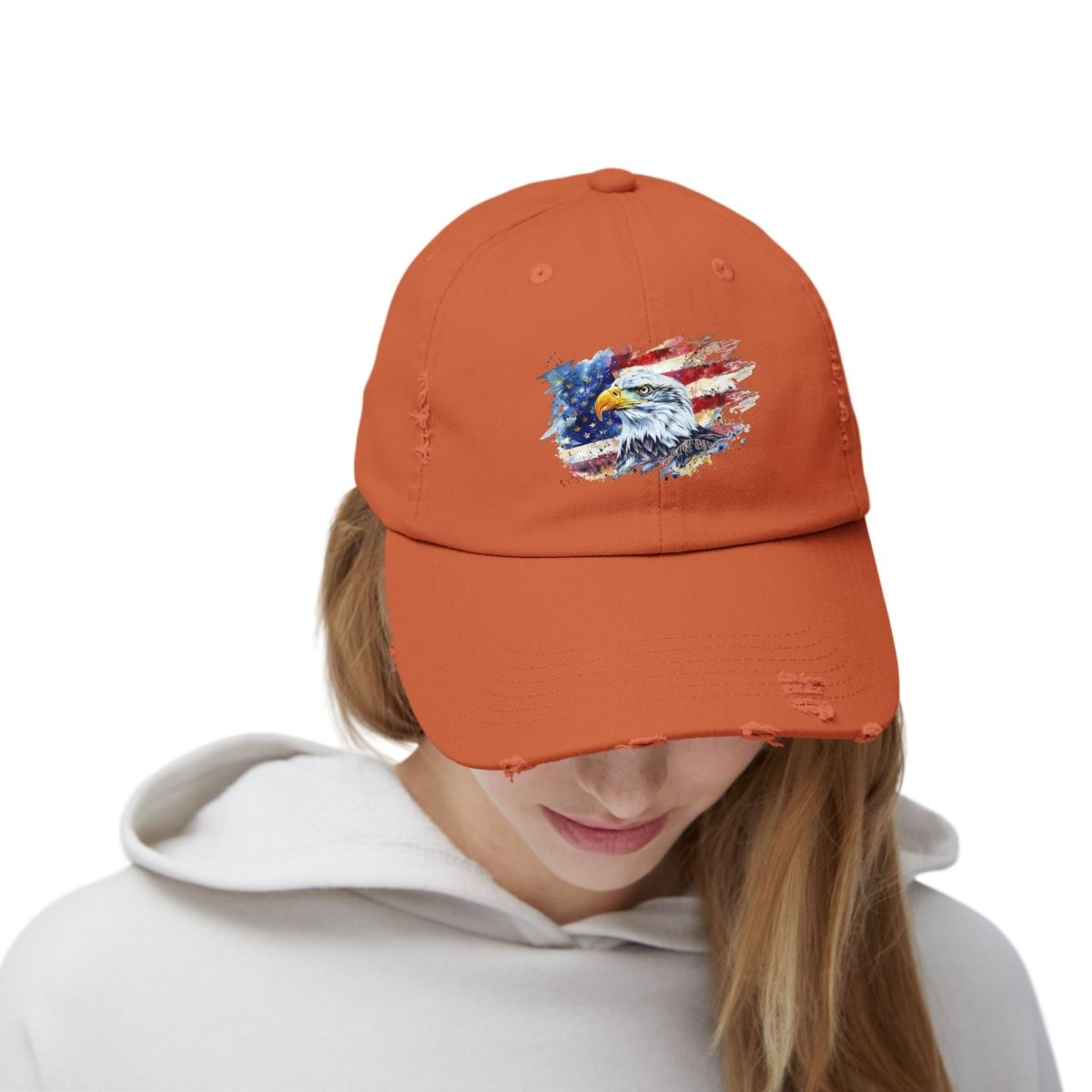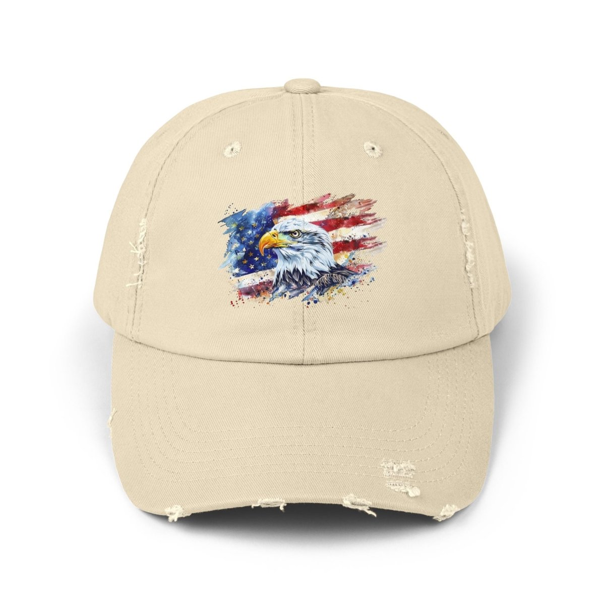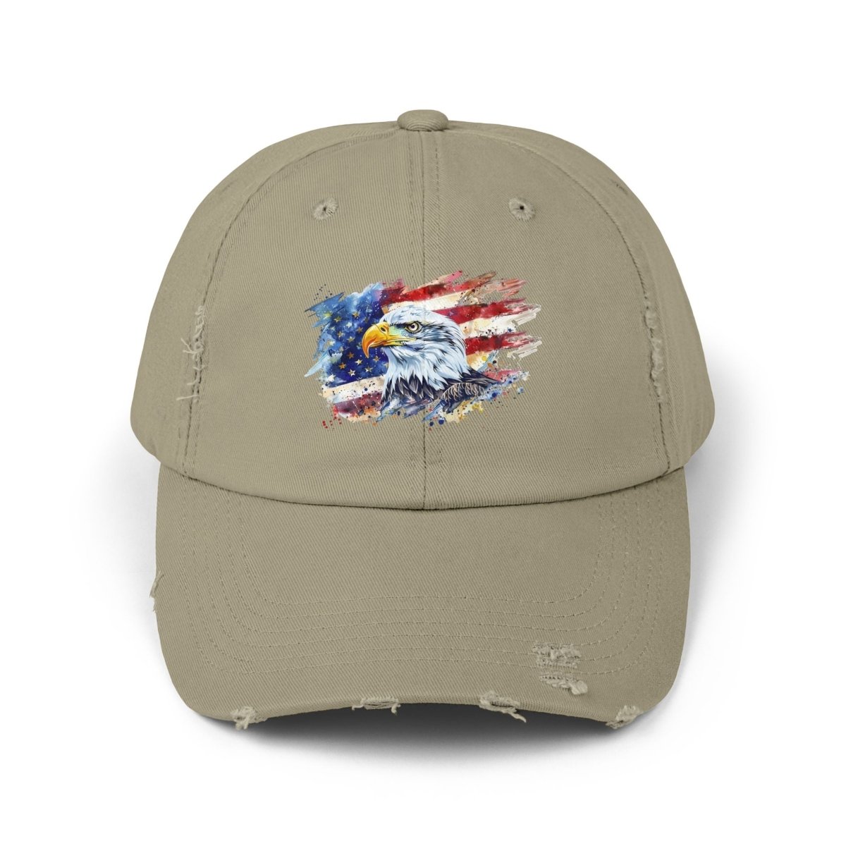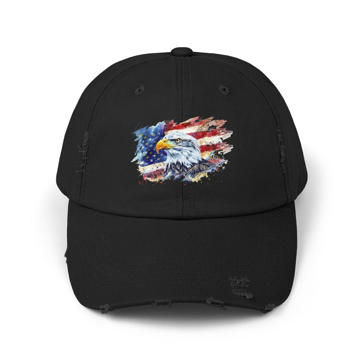 Patriotic Unisex Distressed Cap, American Flag Hat, Eagle Design, Vintage