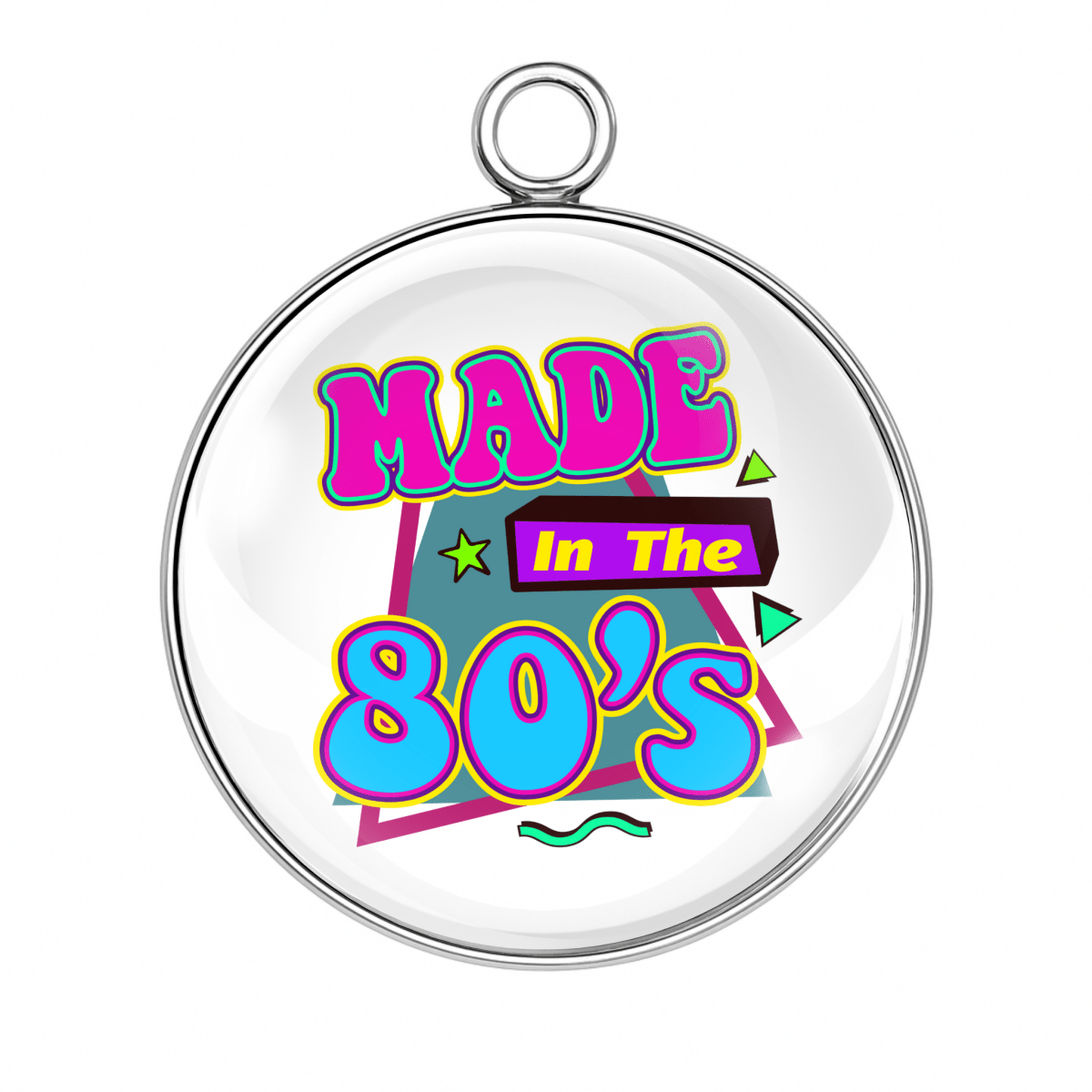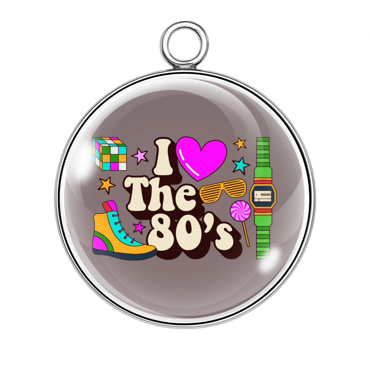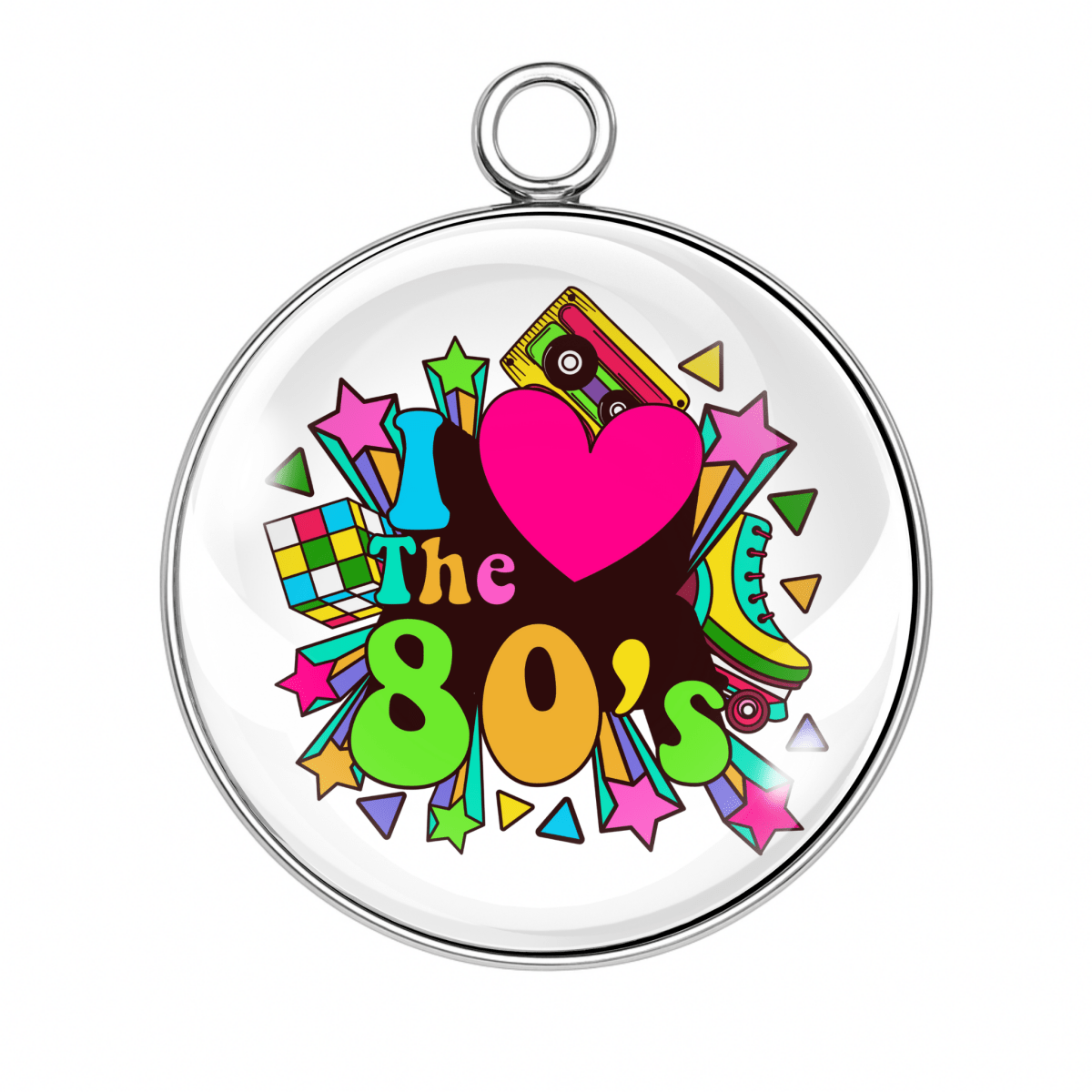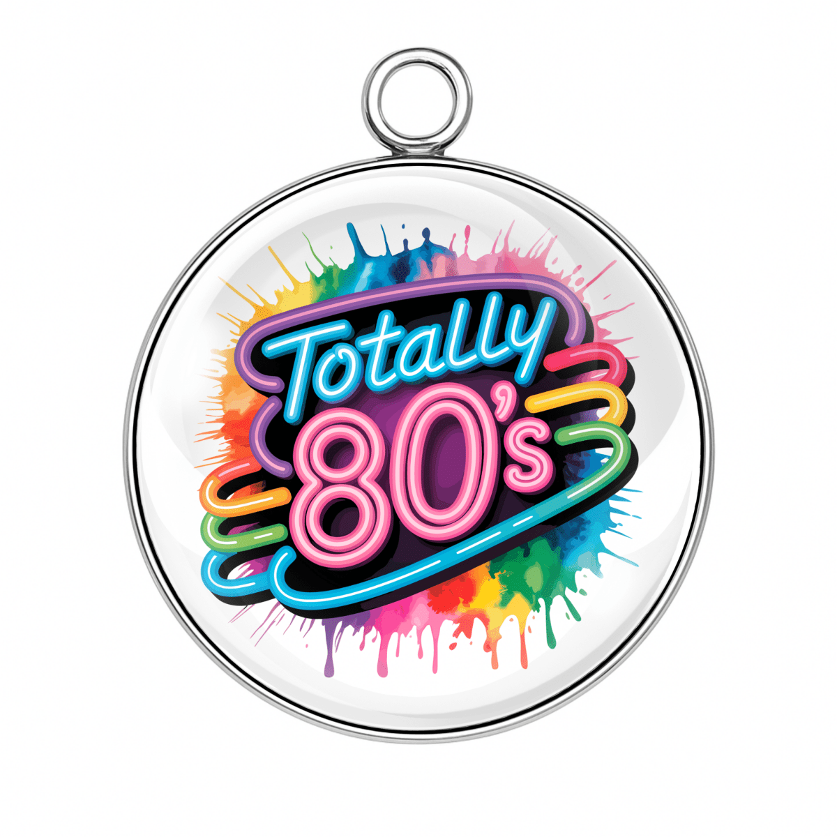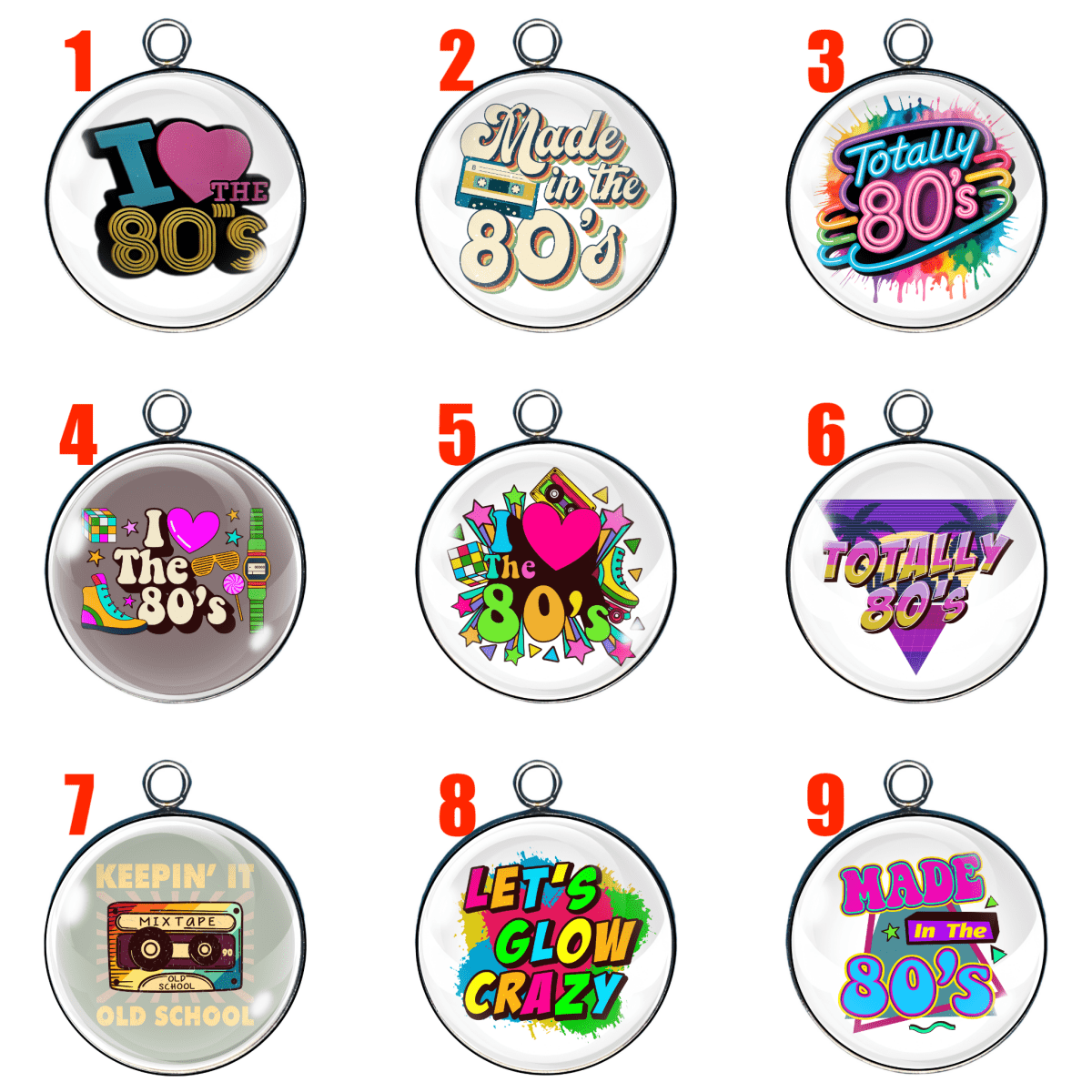 ✨ Celebrate the totally rad 1980s with these vibrant retro-themed glass charms! Each charm features bold, colorful '80s designs sealed under a crystal-clear glass cabochon and set in a never-fade stainless steel base—available in your choice of silver or gold finish.