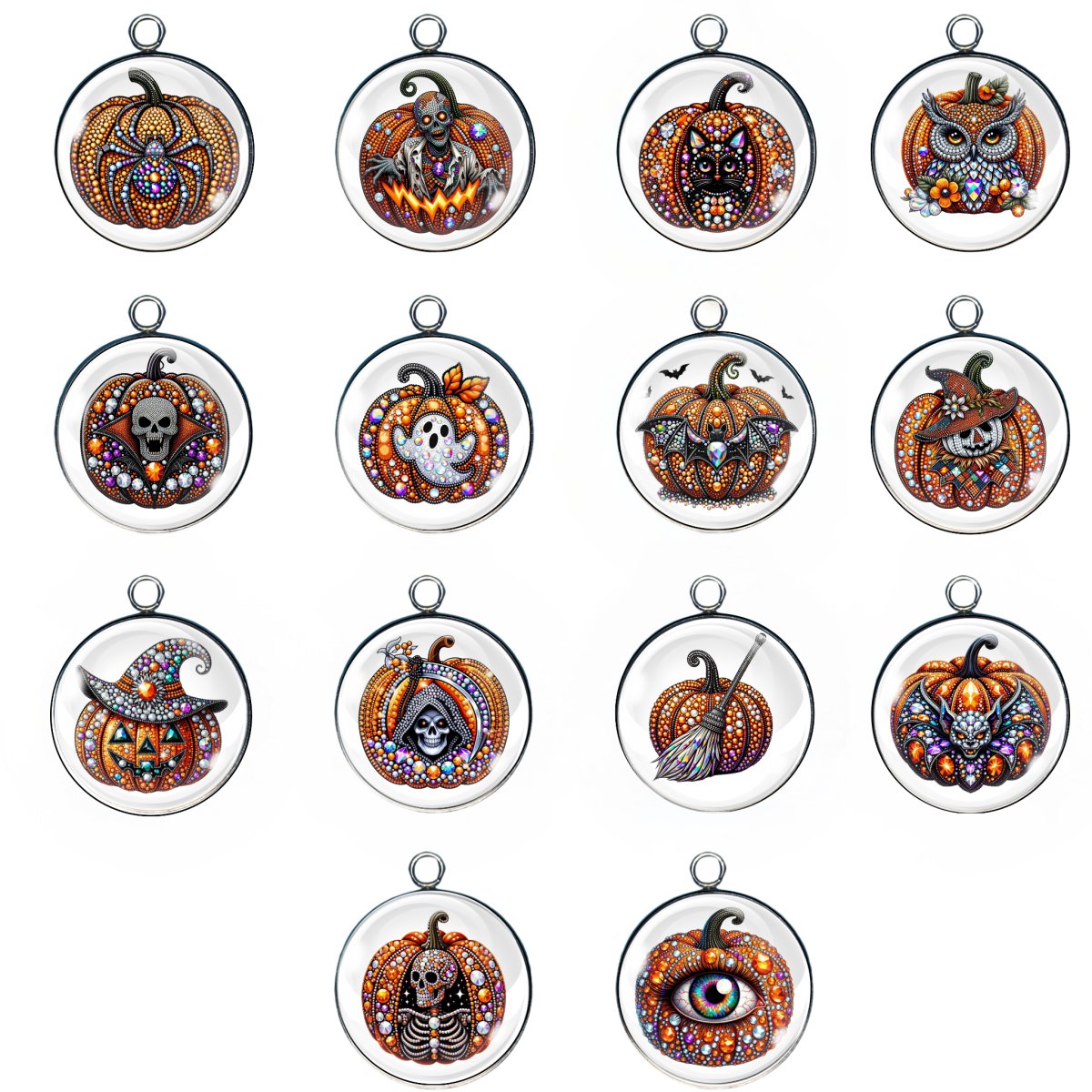 Add a touch of whimsy and sparkle to your jewelry creations with our Rhinestone Pumpkin Glass Cabochon Charms. These charming charms feature images of delicate glass pumpkins adorned with shimmering rhinestones, perfect for creating unique and eye-catching pieces. Elevate your designs with these elegant and playful charms today!