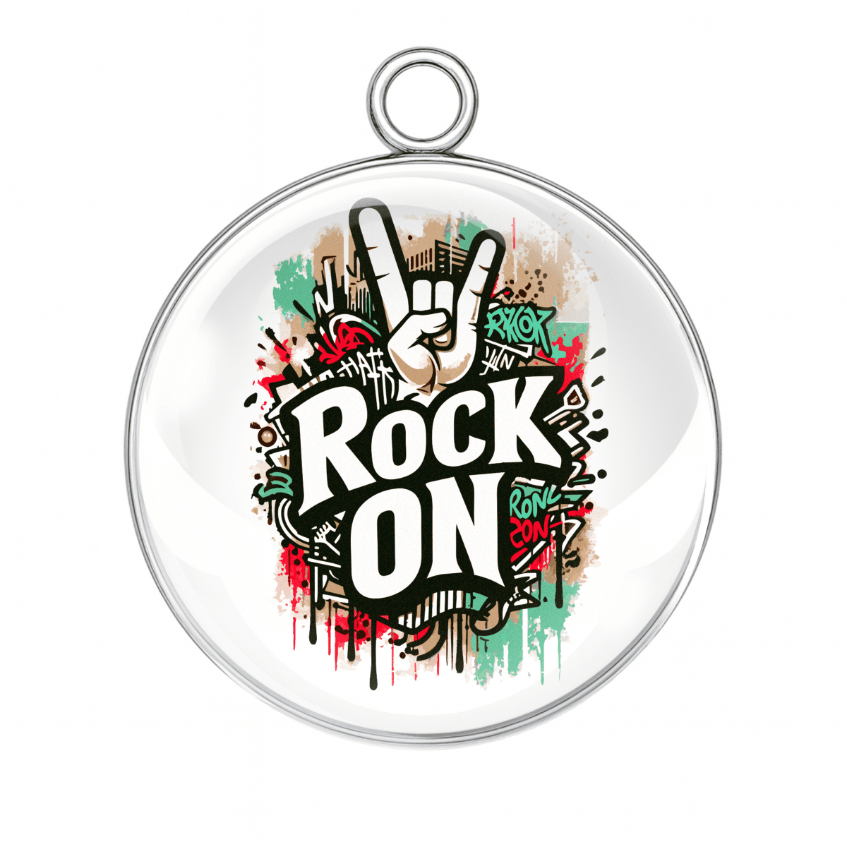 Turn up the volume on your next project with these bold Rock On glass cabochon charms. Each charm is handmade to order using a high-quality stainless steel base and a crystal-clear glass cabochon that gives the design a smooth, glossy finish. Available in polished silver or gold tones, these charms are offered in three versatile sizes: 14mm (½") for earrings, 18mm (¾") for bracelets, and 25mm (1") for necklaces and statement pieces.